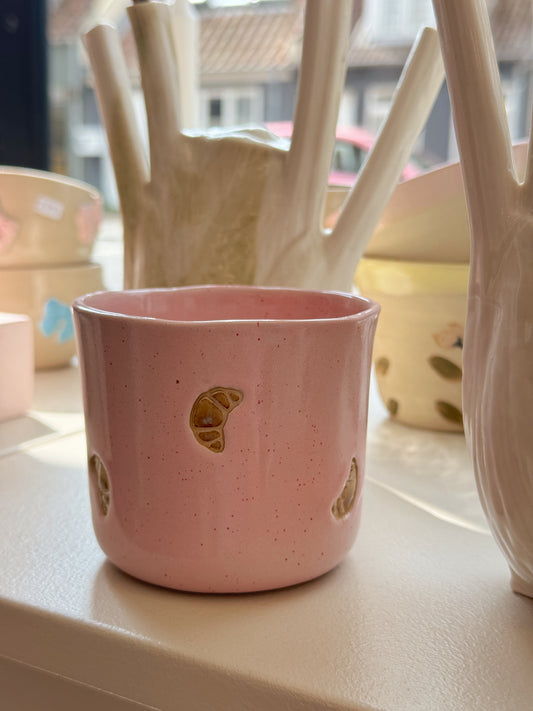 "Jeg ser mit lille univers som en boble af slowmade uperfekt håndværk midt i en kultur af masseproduktioner. Jeg arbejder i stentøj, som brændes ved høje temperaturer. Dette gør at keramikken er modstandsdygtig og tåler både opvaskemaskine, mikrobølgeovn og kan stå ude i vind og vejr. Keramik er en omstændig proces. Hver enkelt stykke keramik er håndlavet ned til mindste detalje. Hver ting er i hænderne minimum 10 gange, inden det står færdigt."