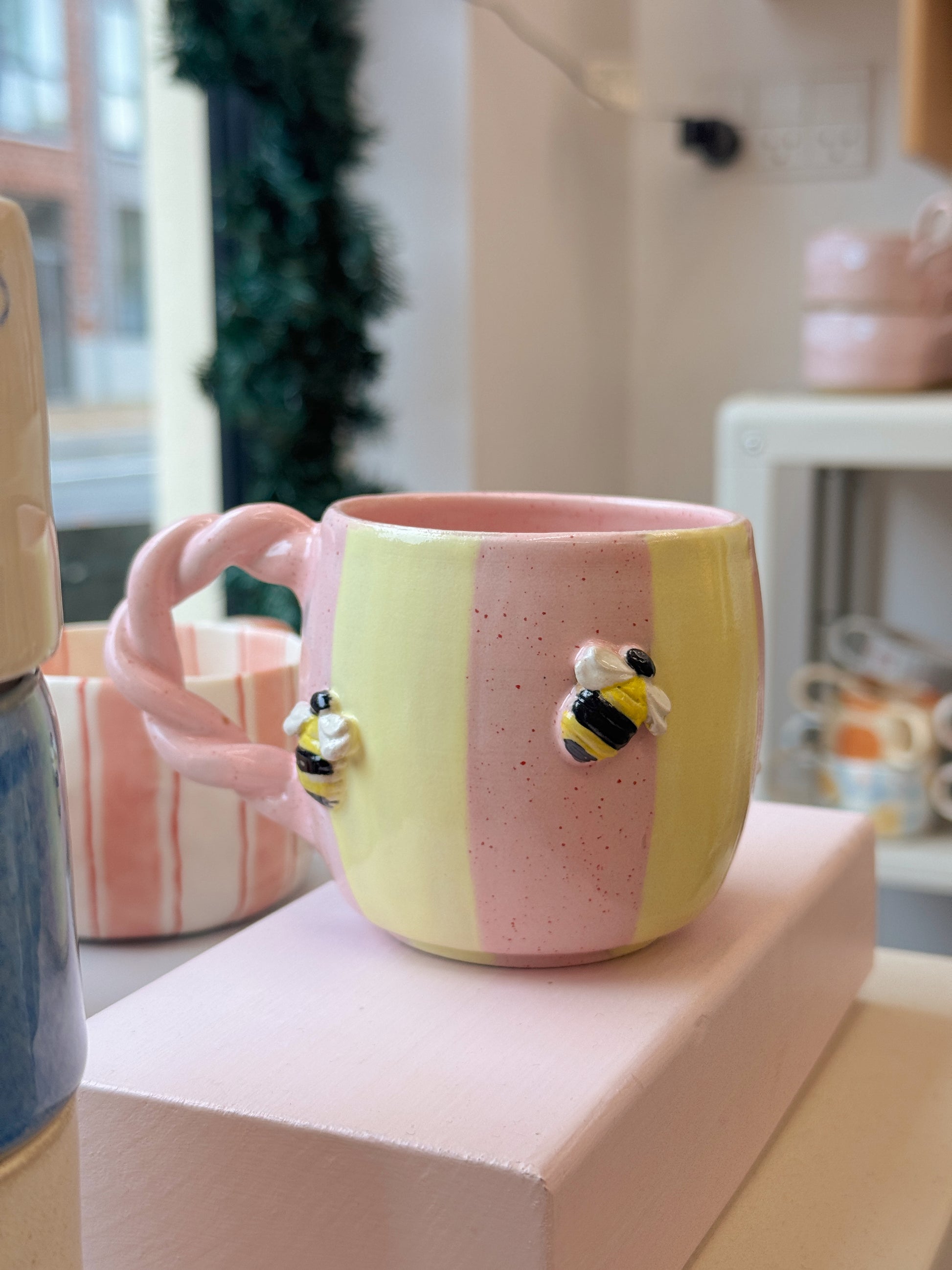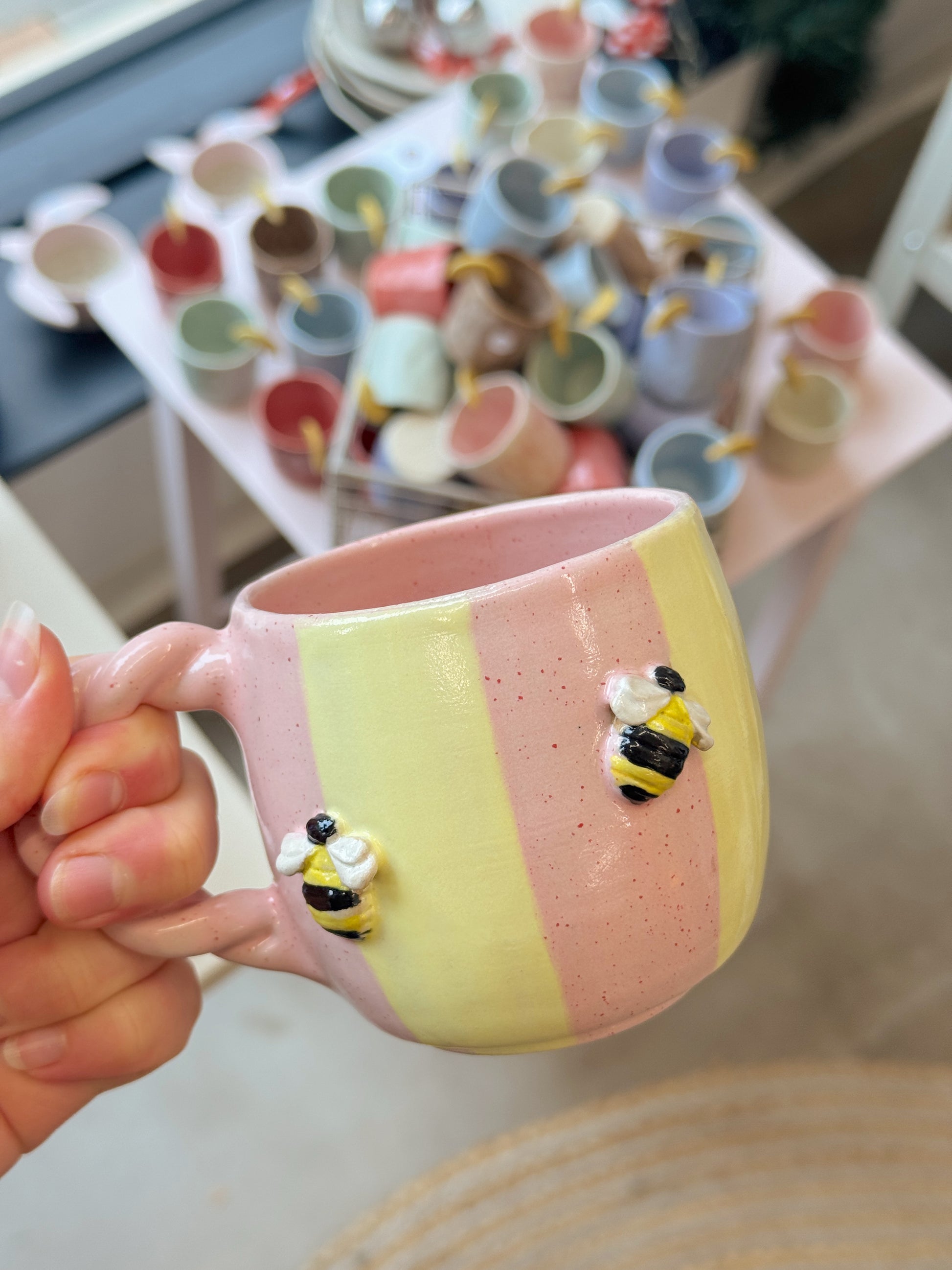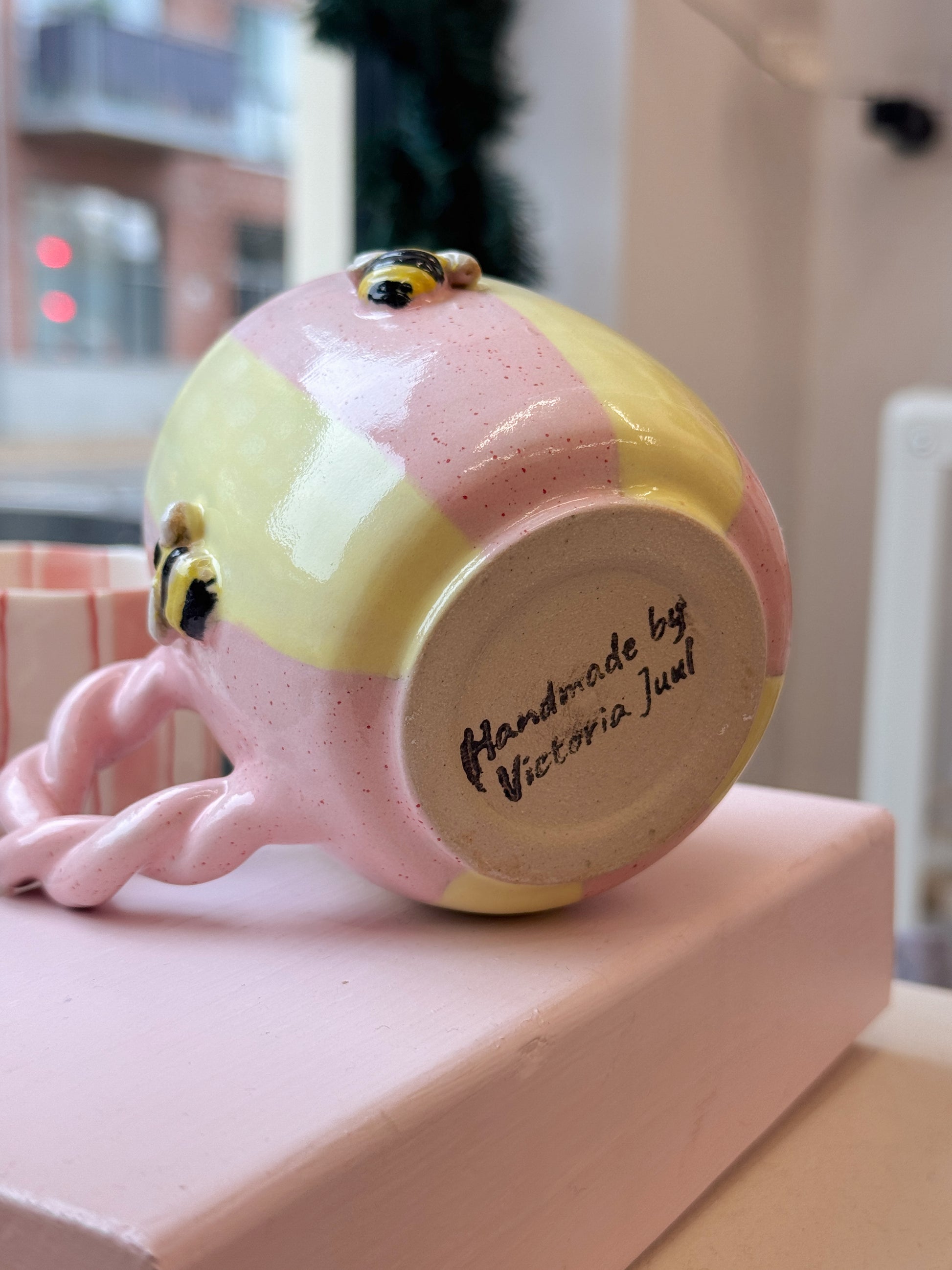 Bikop fra Victoria Juul, som står bag Handmade By Victoria Juul, hånddrejer eller former og håndmaler alle sine keramikværker. Hver en kop, skål eller vase bliver derfor helt sin egen og unik.
