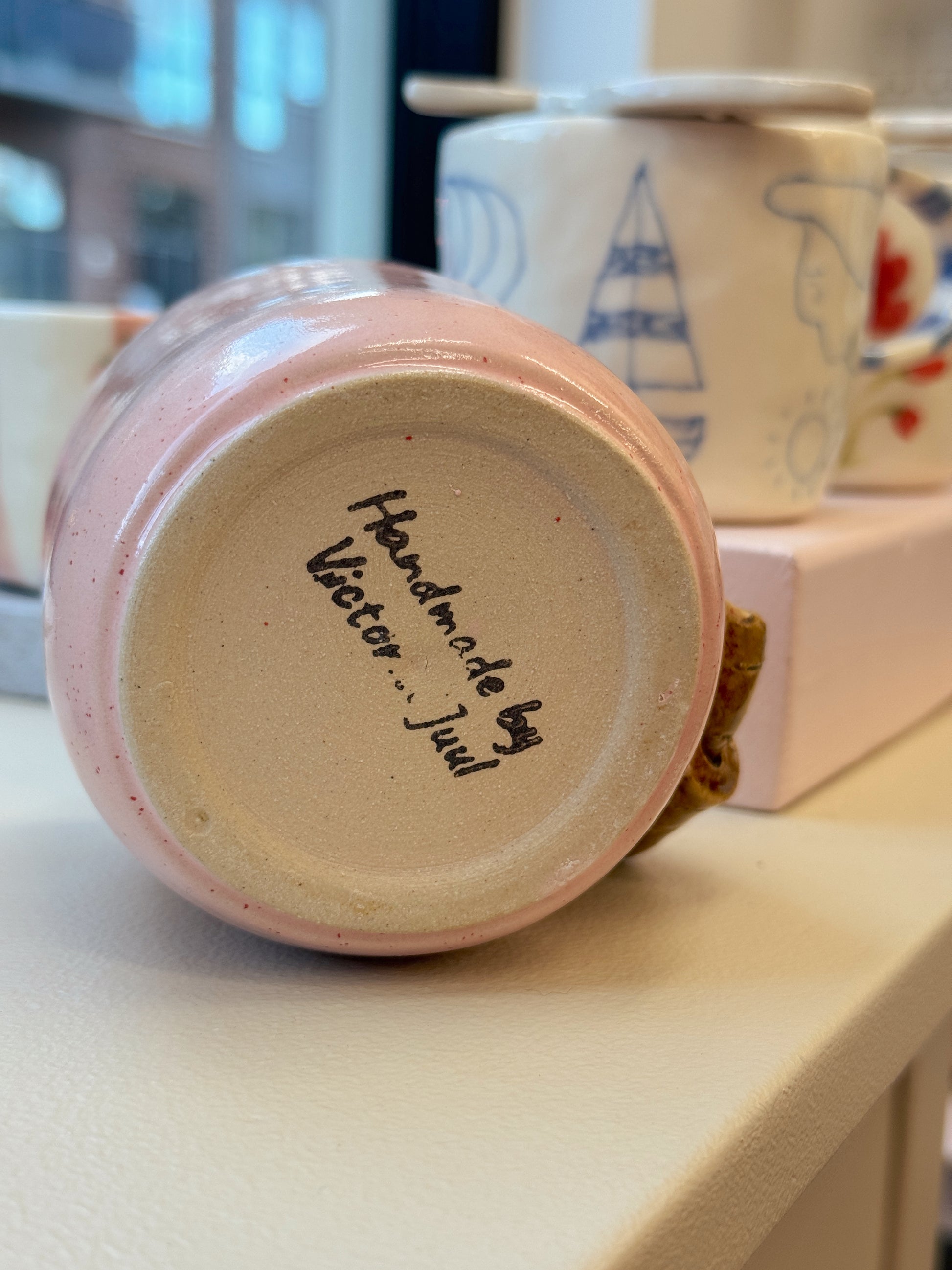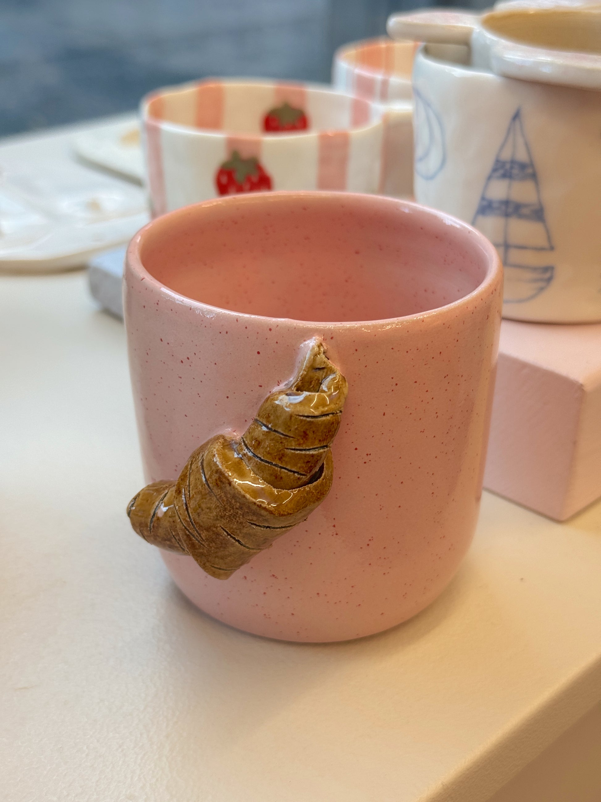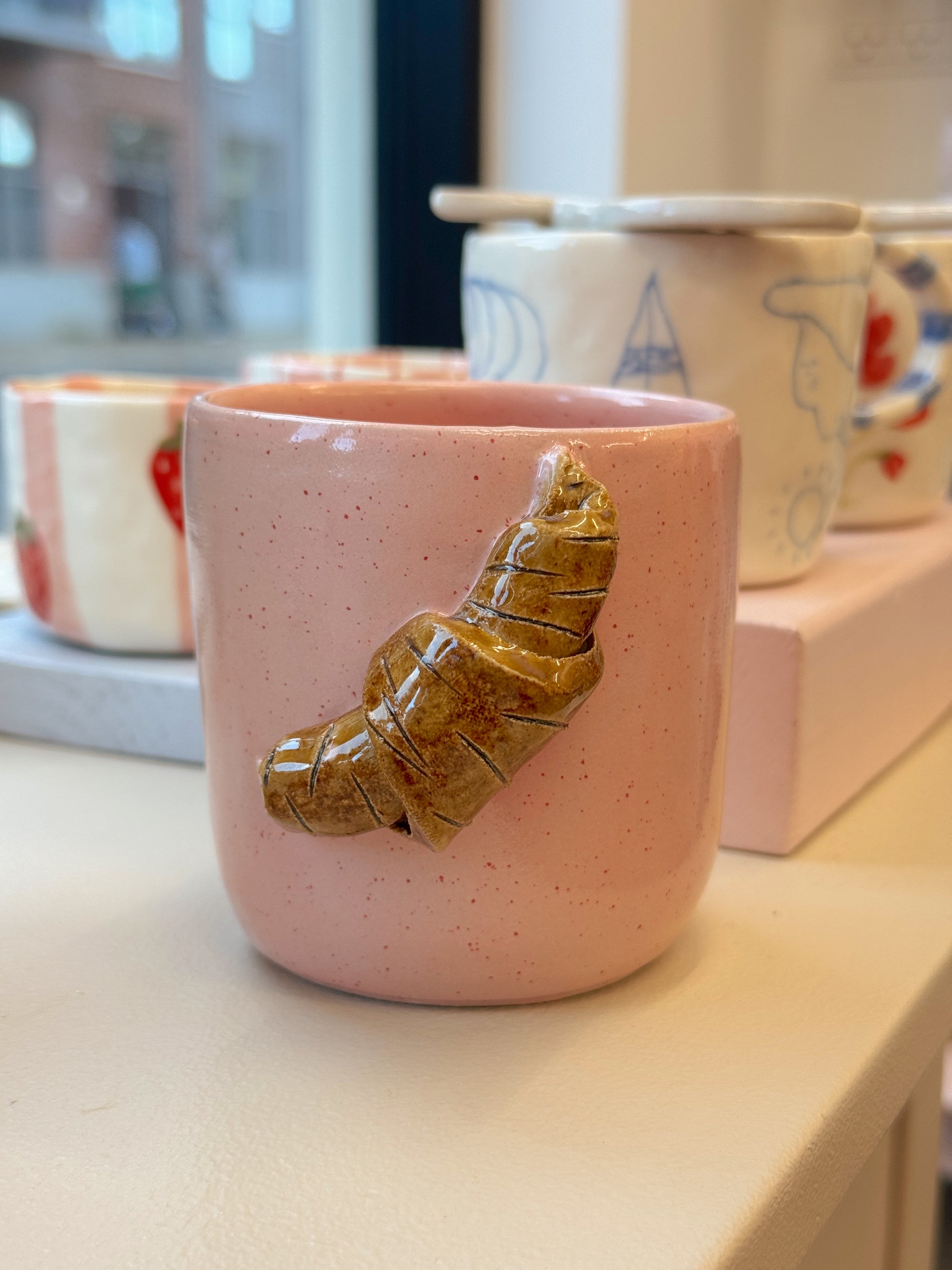Croissant fra Victoria Juul, som står bag Handmade By Victoria Juul, hånddrejer eller former og håndmaler alle sine keramikværker. Hver en kop, skål eller vase bliver derfor helt sin egen og unik.