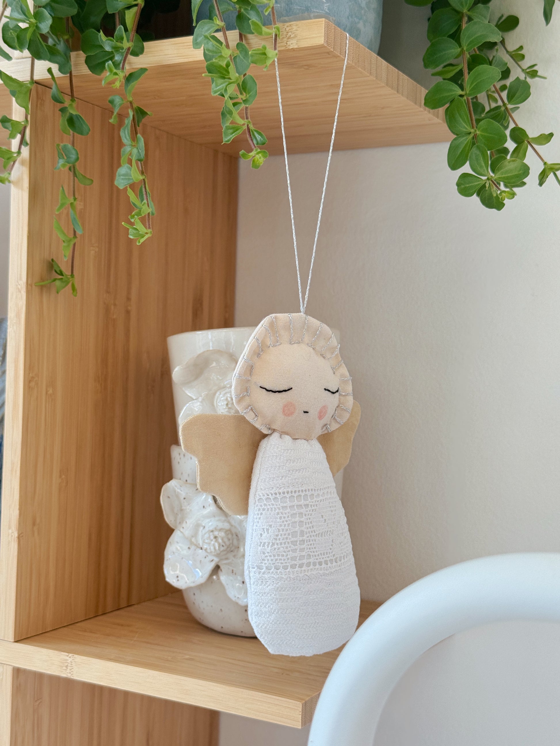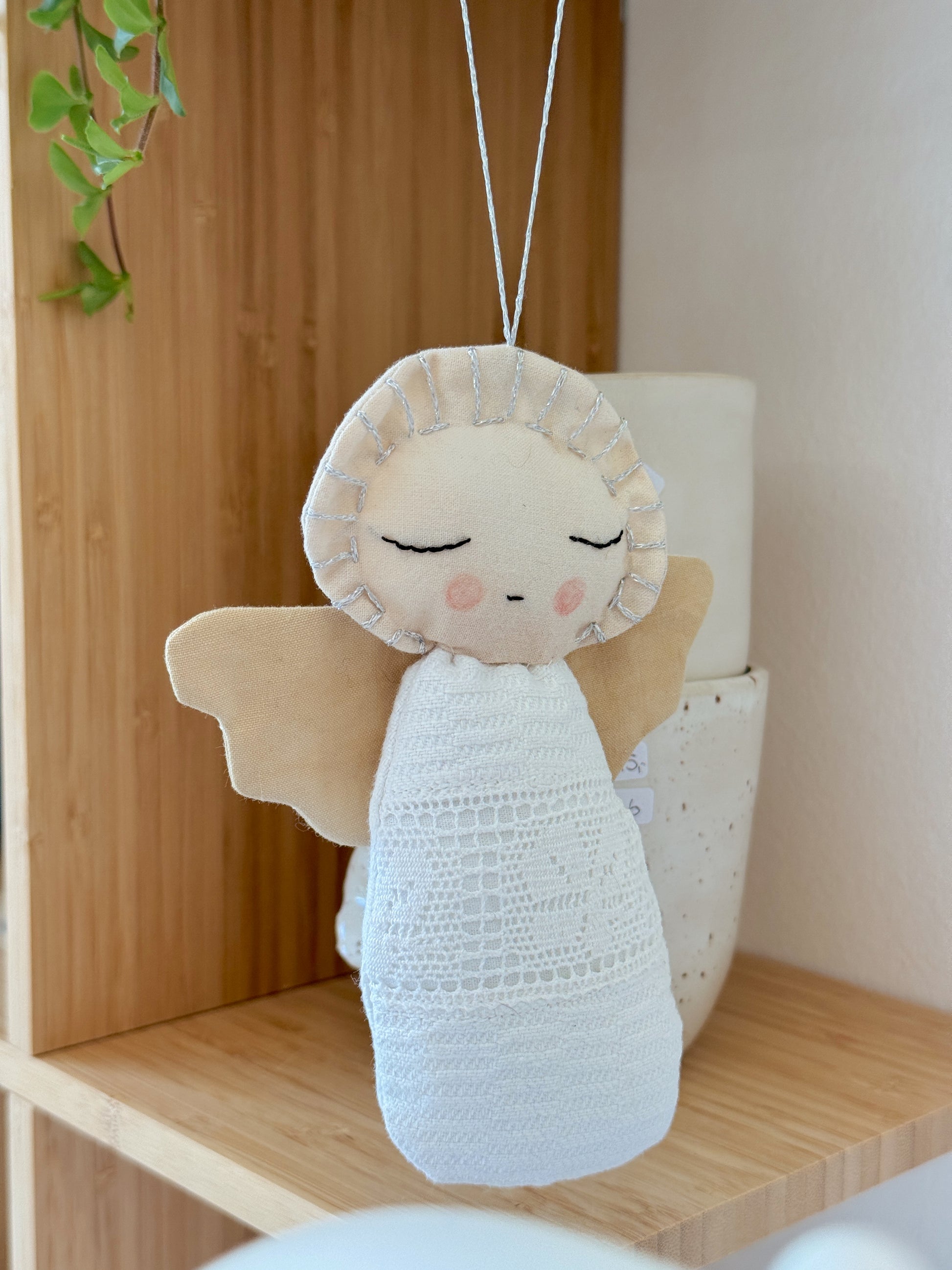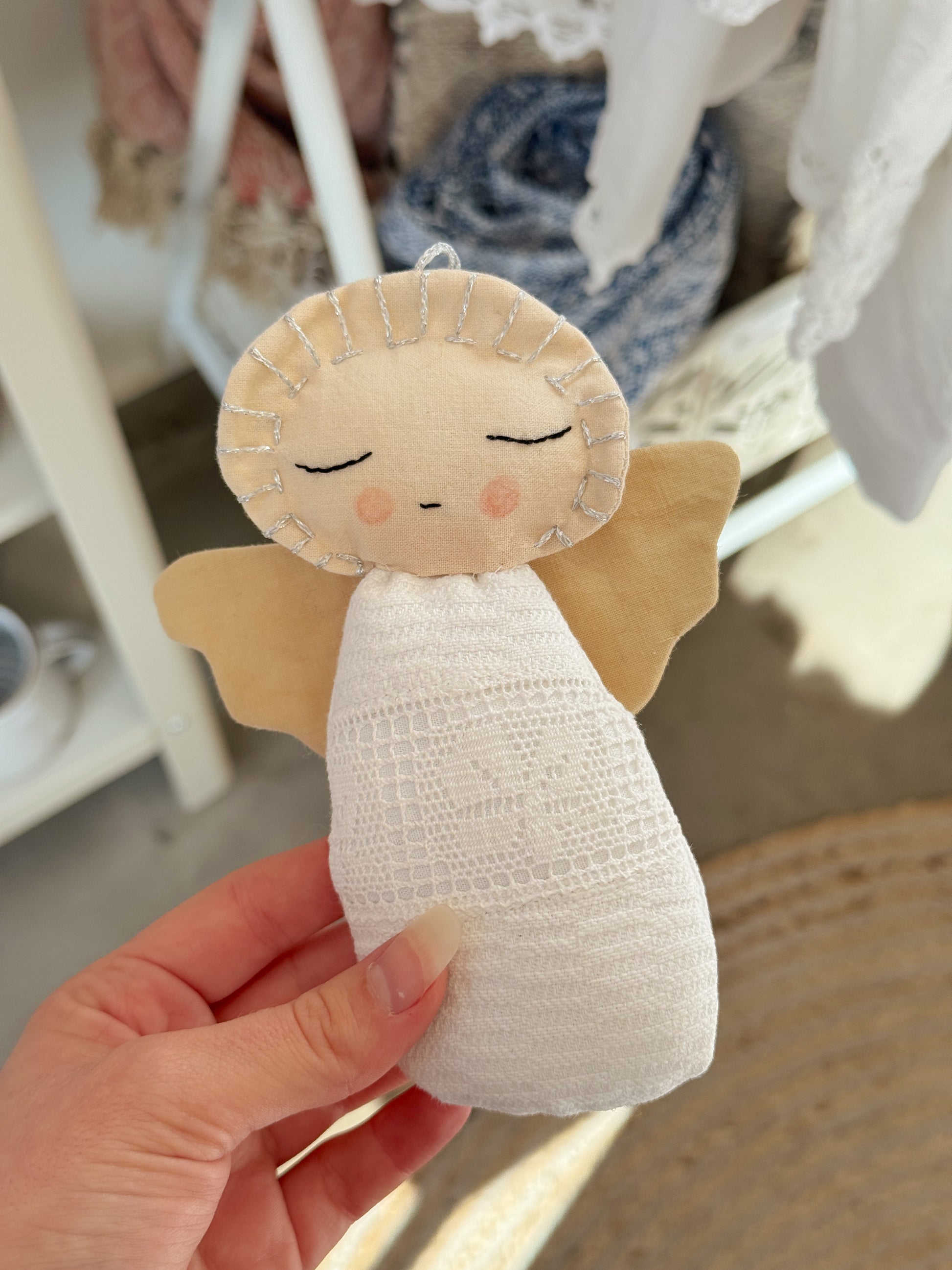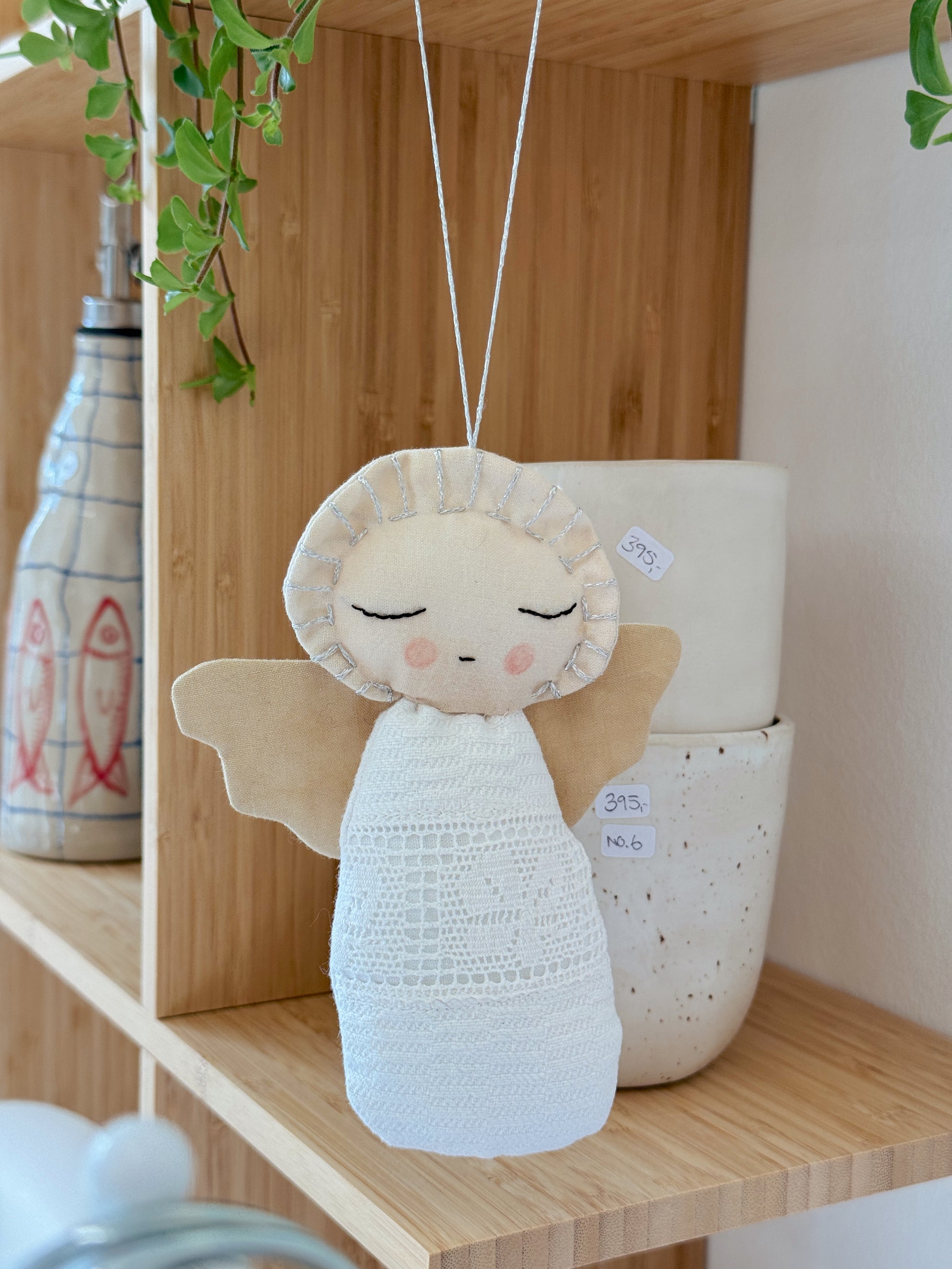 Fineste juleengel, der giver et finurligt og sødt udtryk. Kan også sagtens pynte i boligen resten af året. Fåes i flere udgaver som alle er skabt i et mix af vintage- og plantefarvede tekstiler.