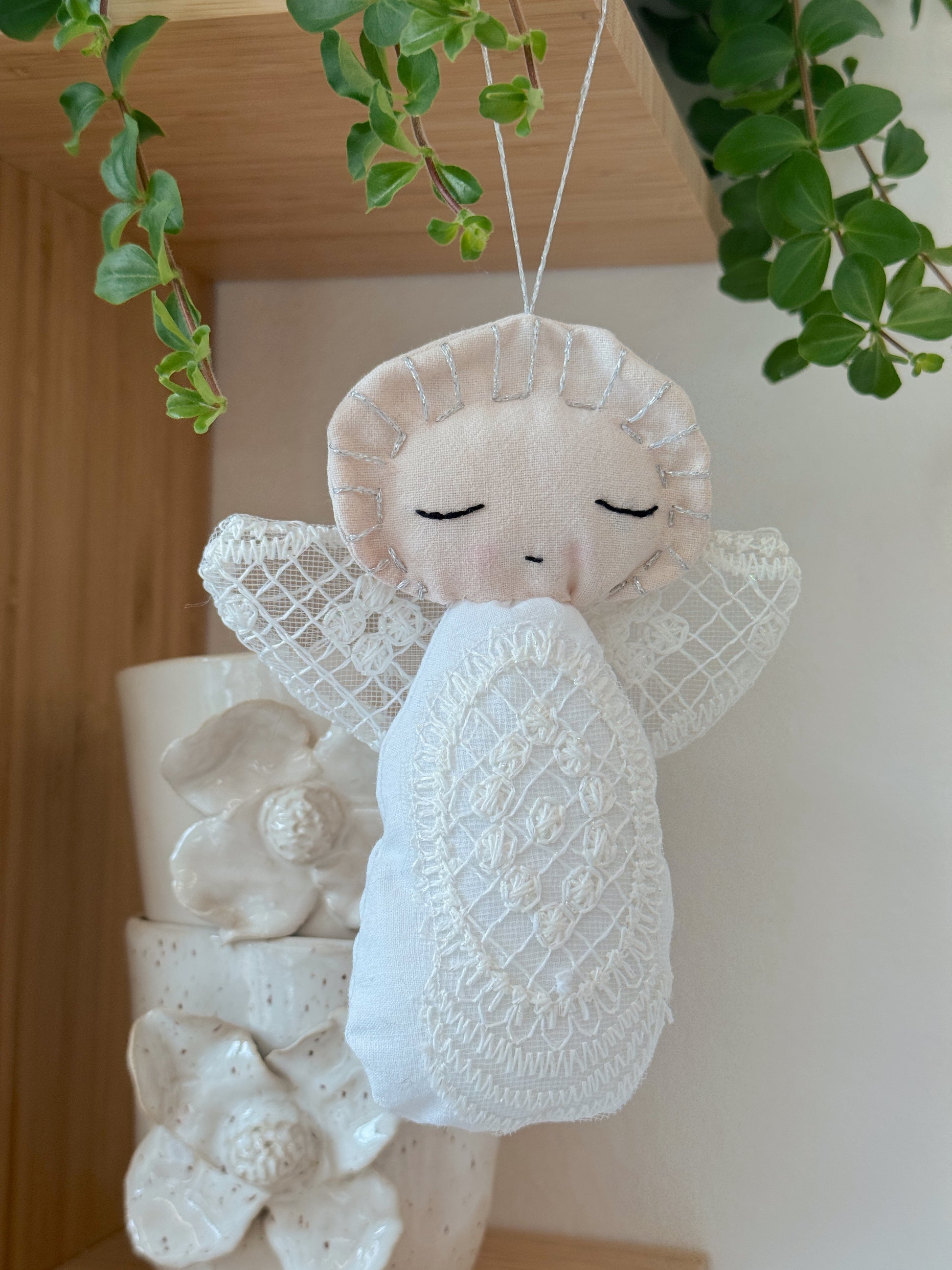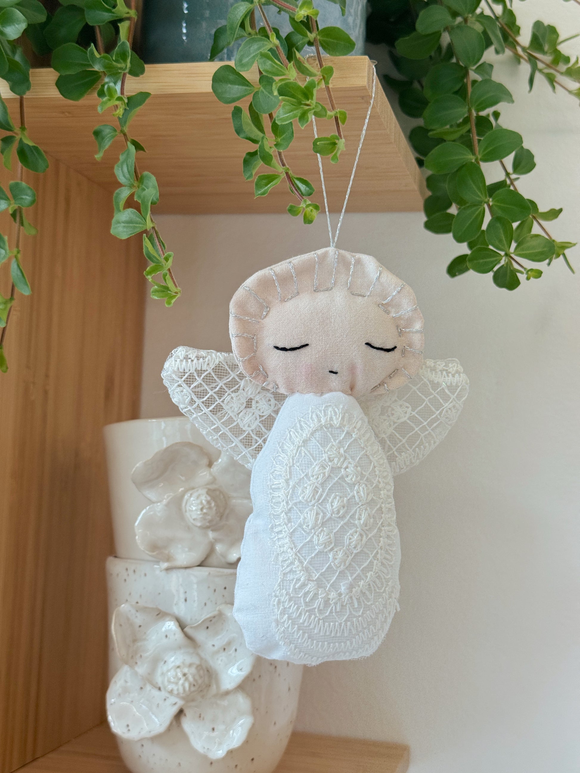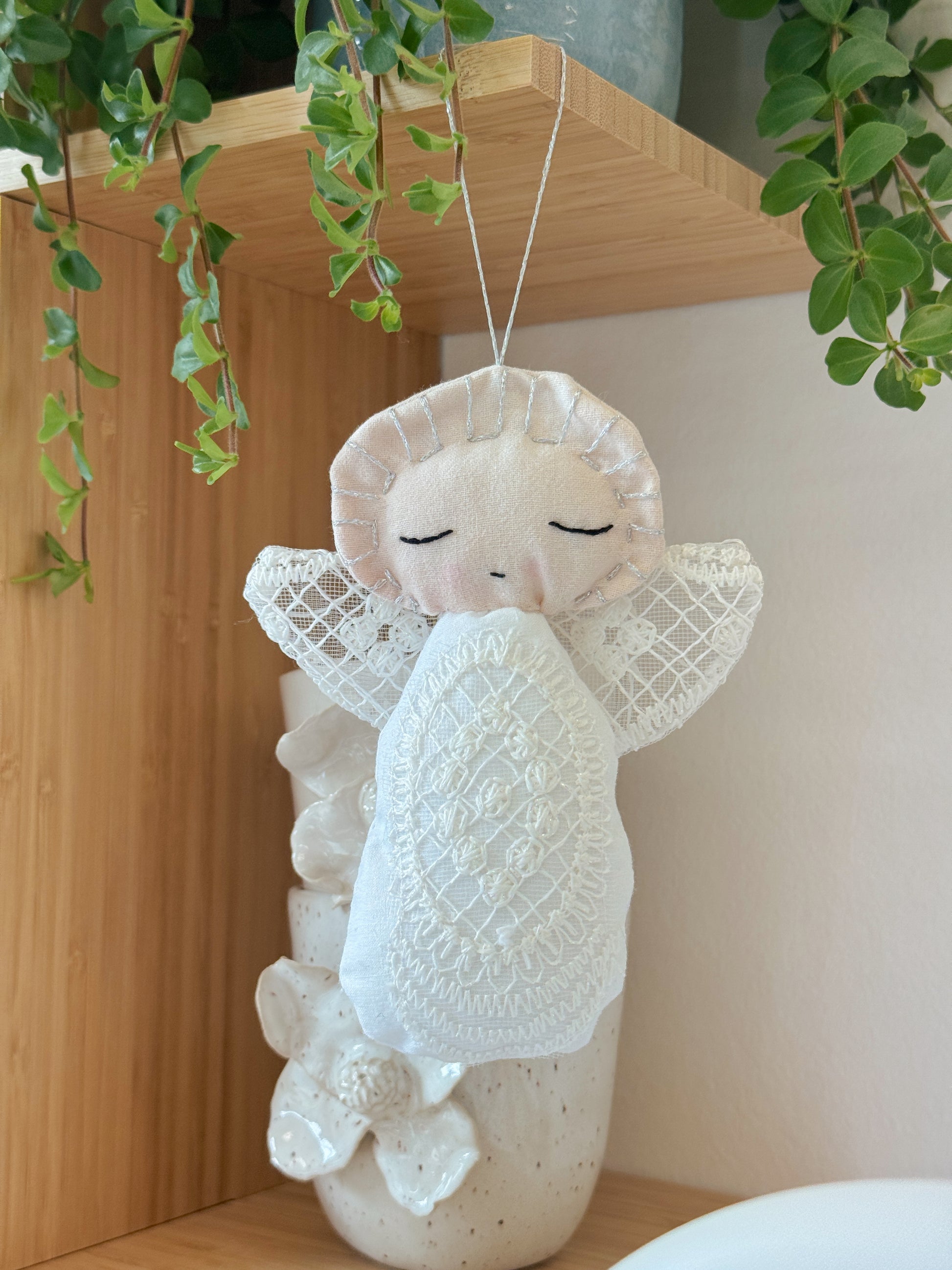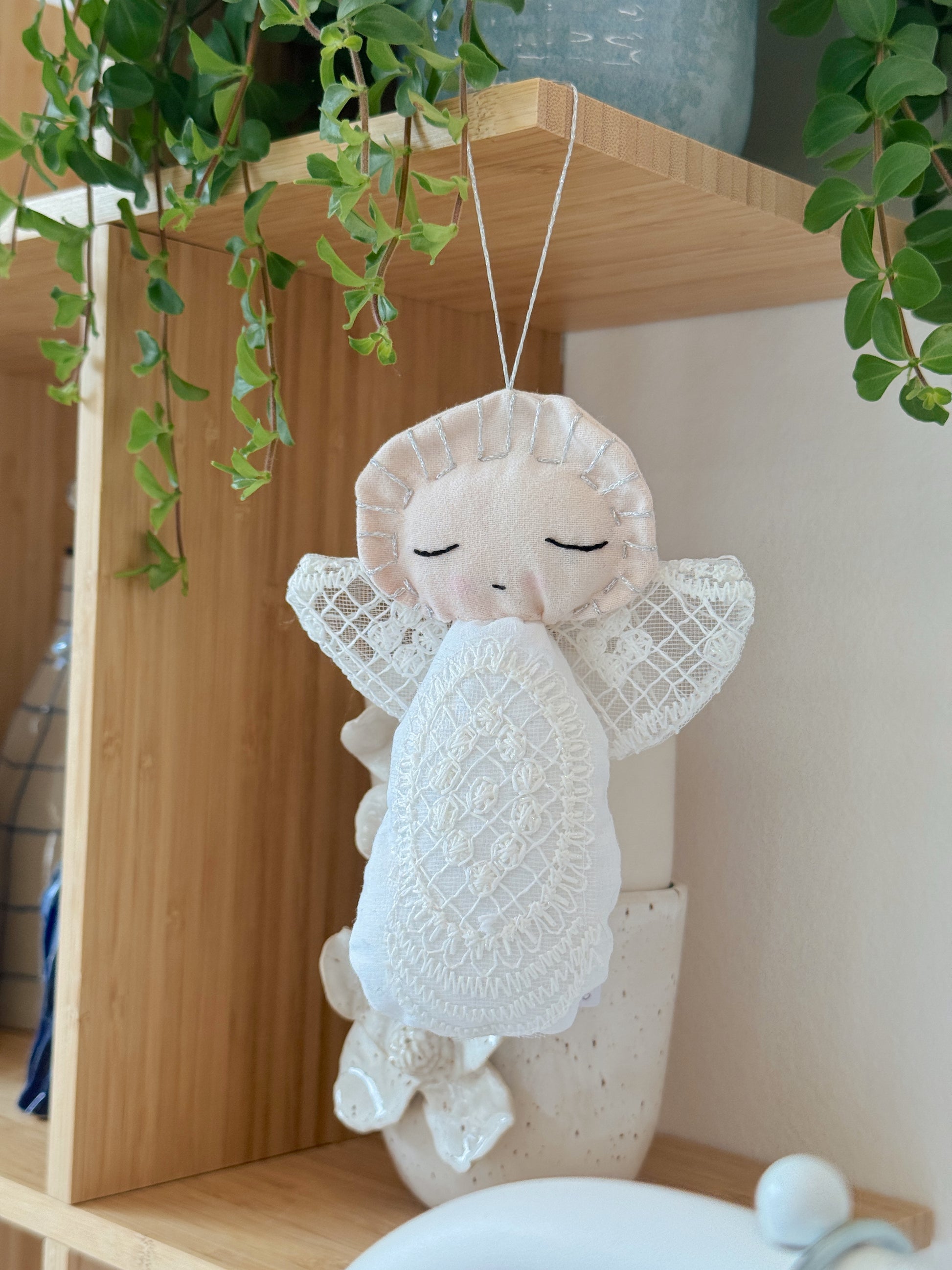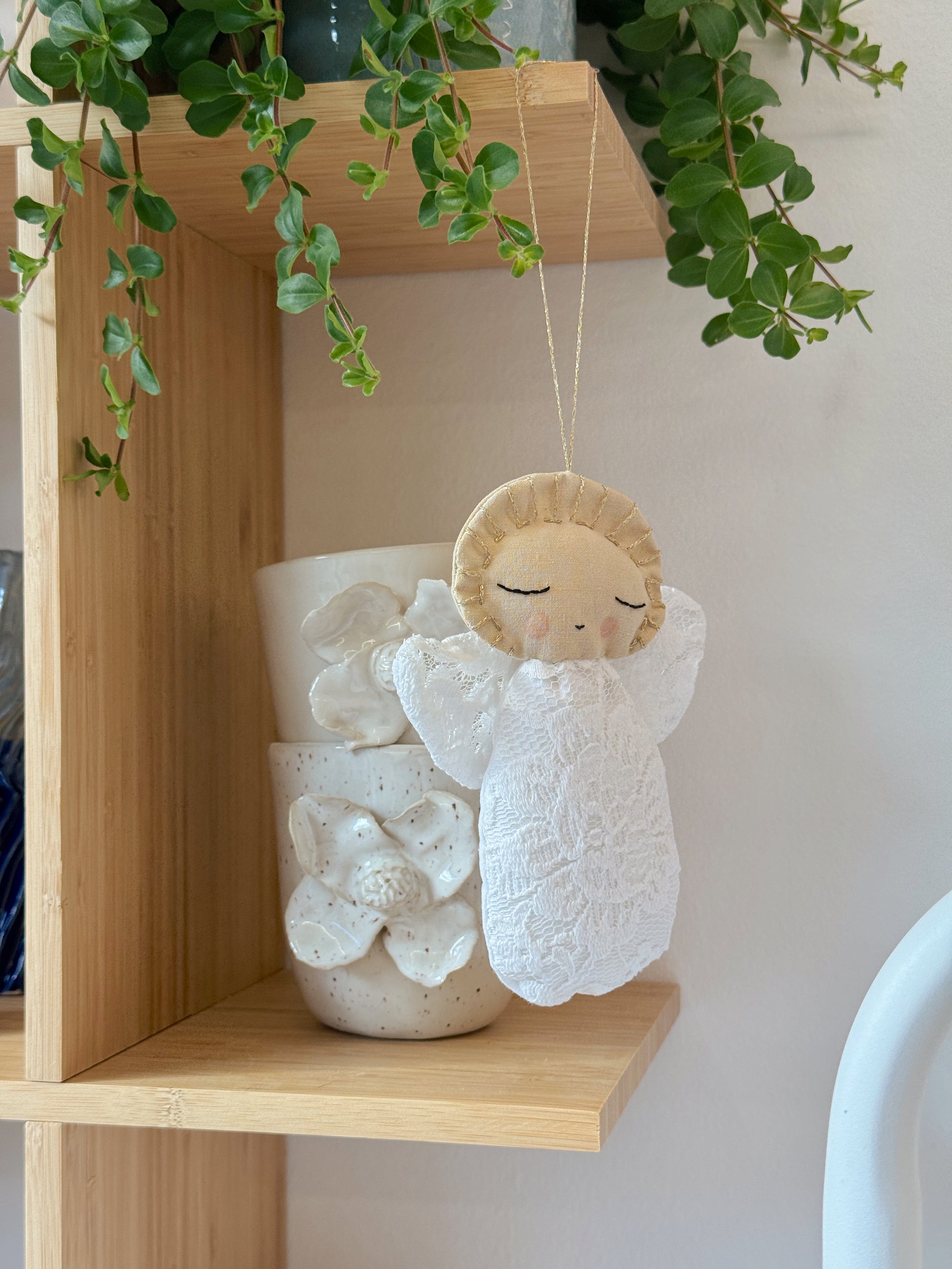 Fineste juleengel, der giver et finurligt og sødt udtryk. Kan også sagtens pynte i boligen resten af året. Fåes i flere udgaver som alle er skabt i et mix af vintage- og plantefarvede tekstiler.
