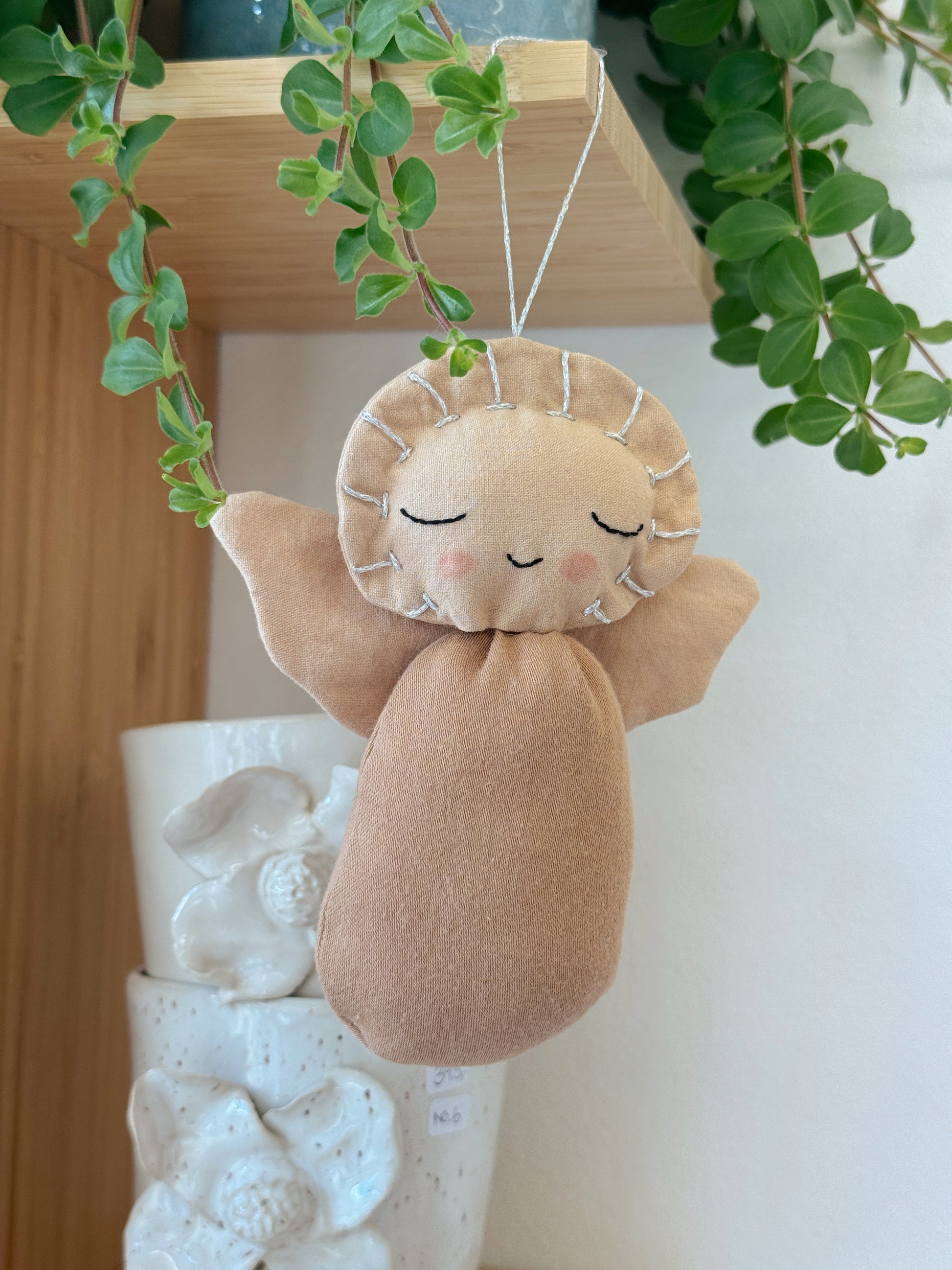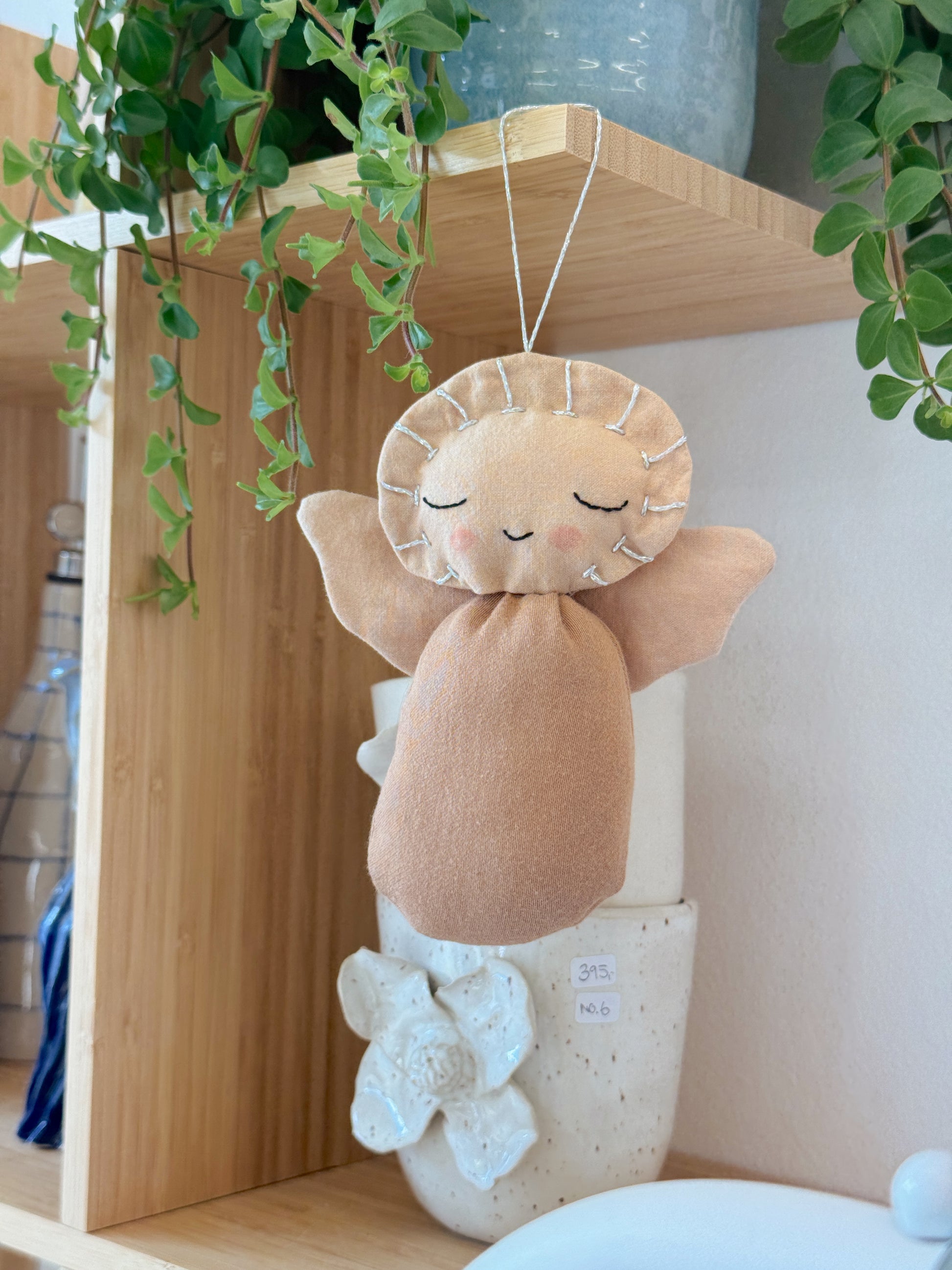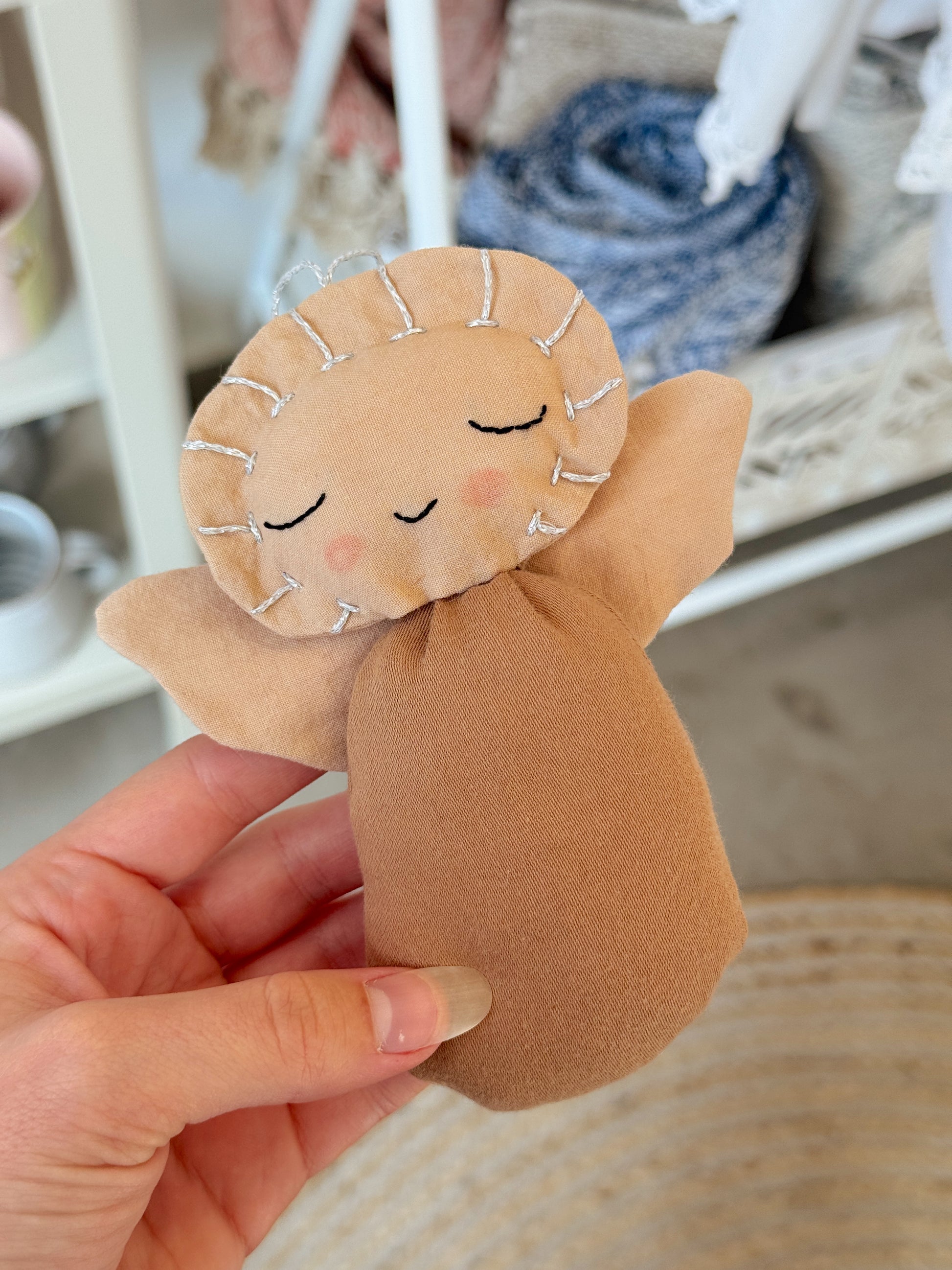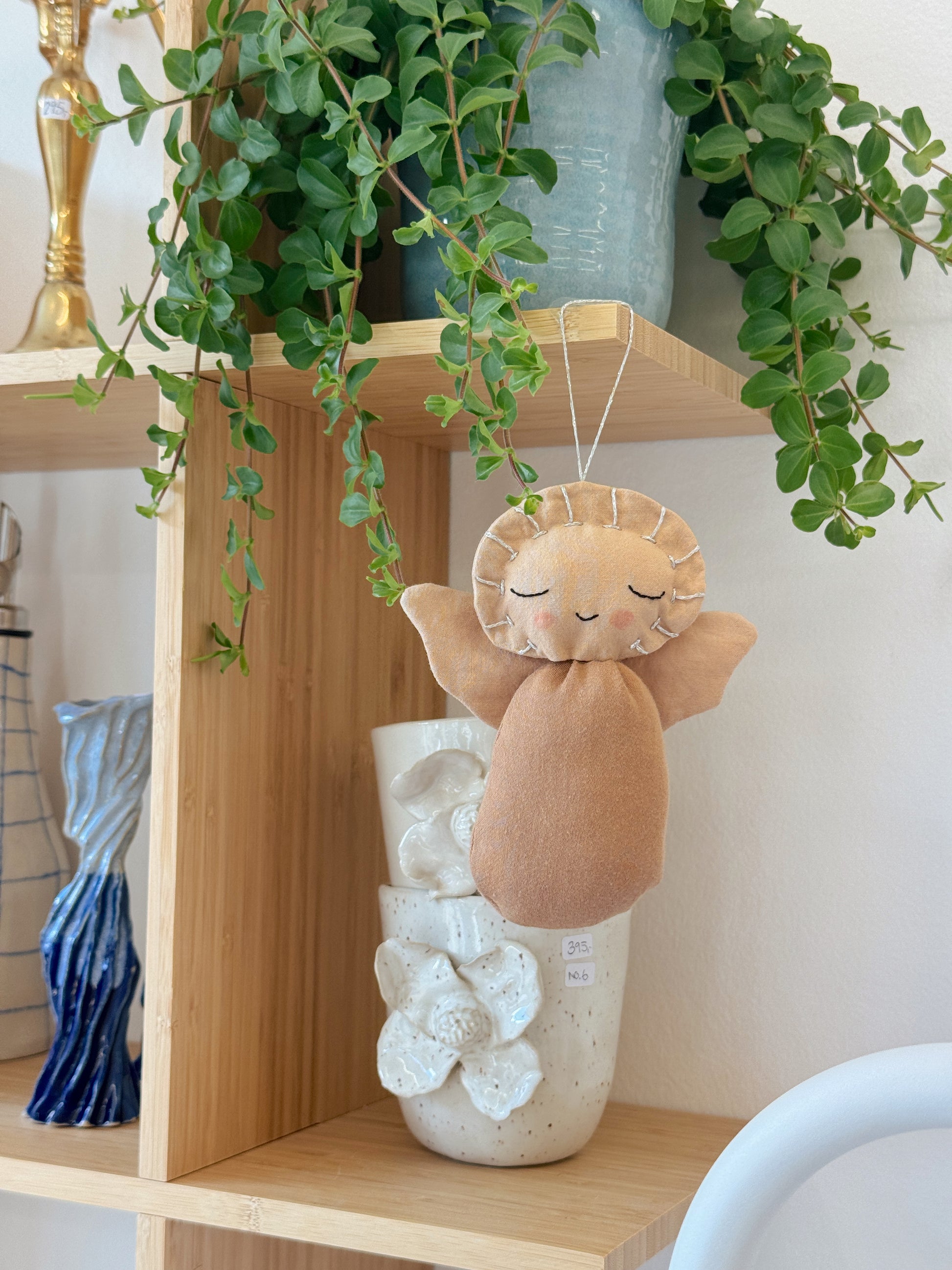 Fineste juleengel, der giver et finurligt og sødt udtryk. Kan også sagtens pynte i boligen resten af året. Fåes i flere udgaver som alle er skabt i et mix af vintage- og plantefarvede tekstiler.