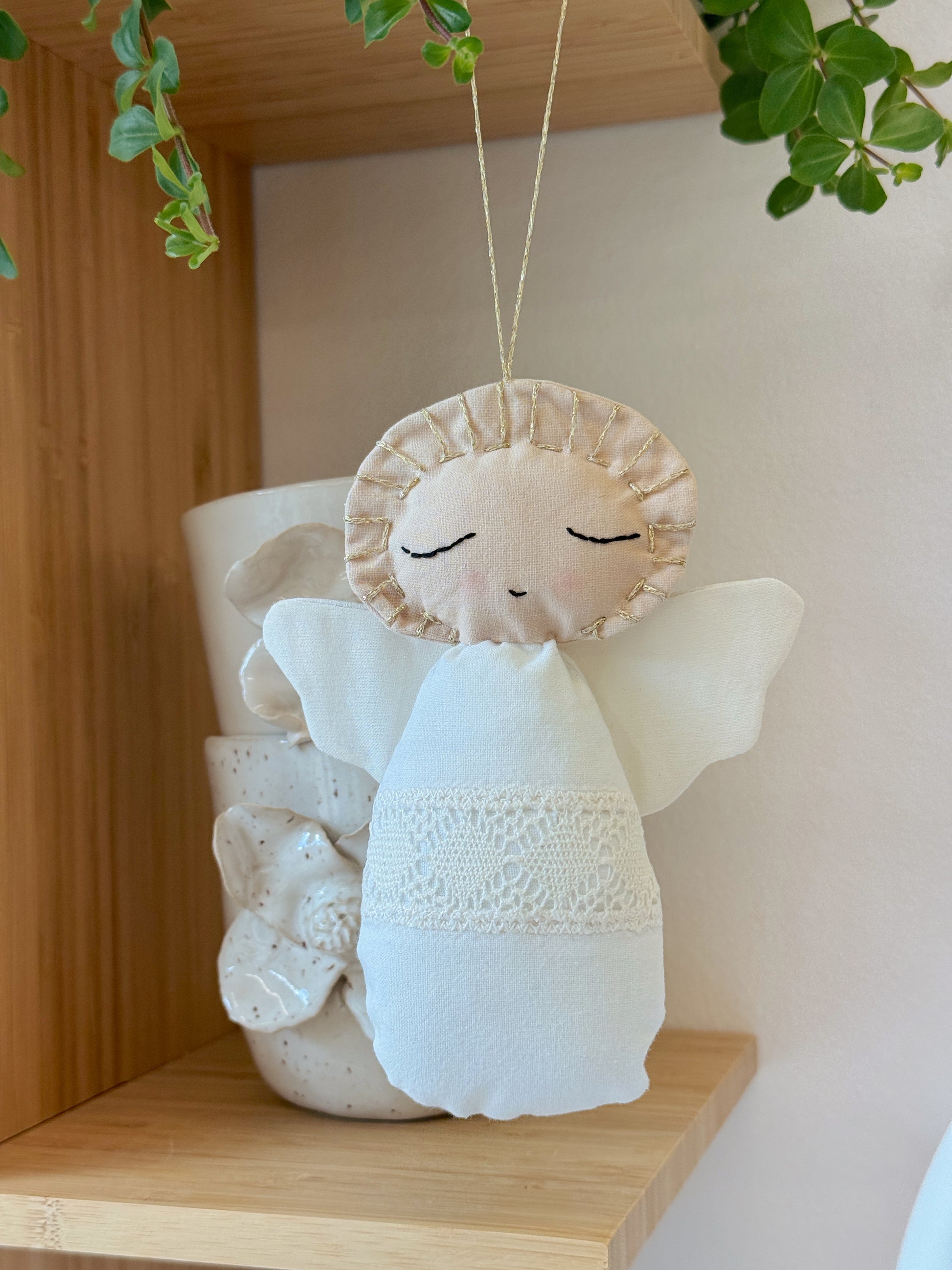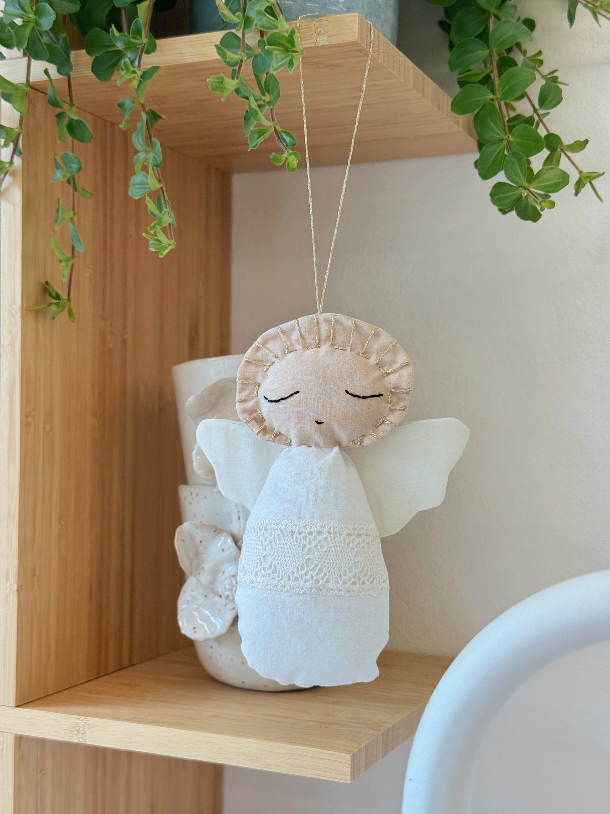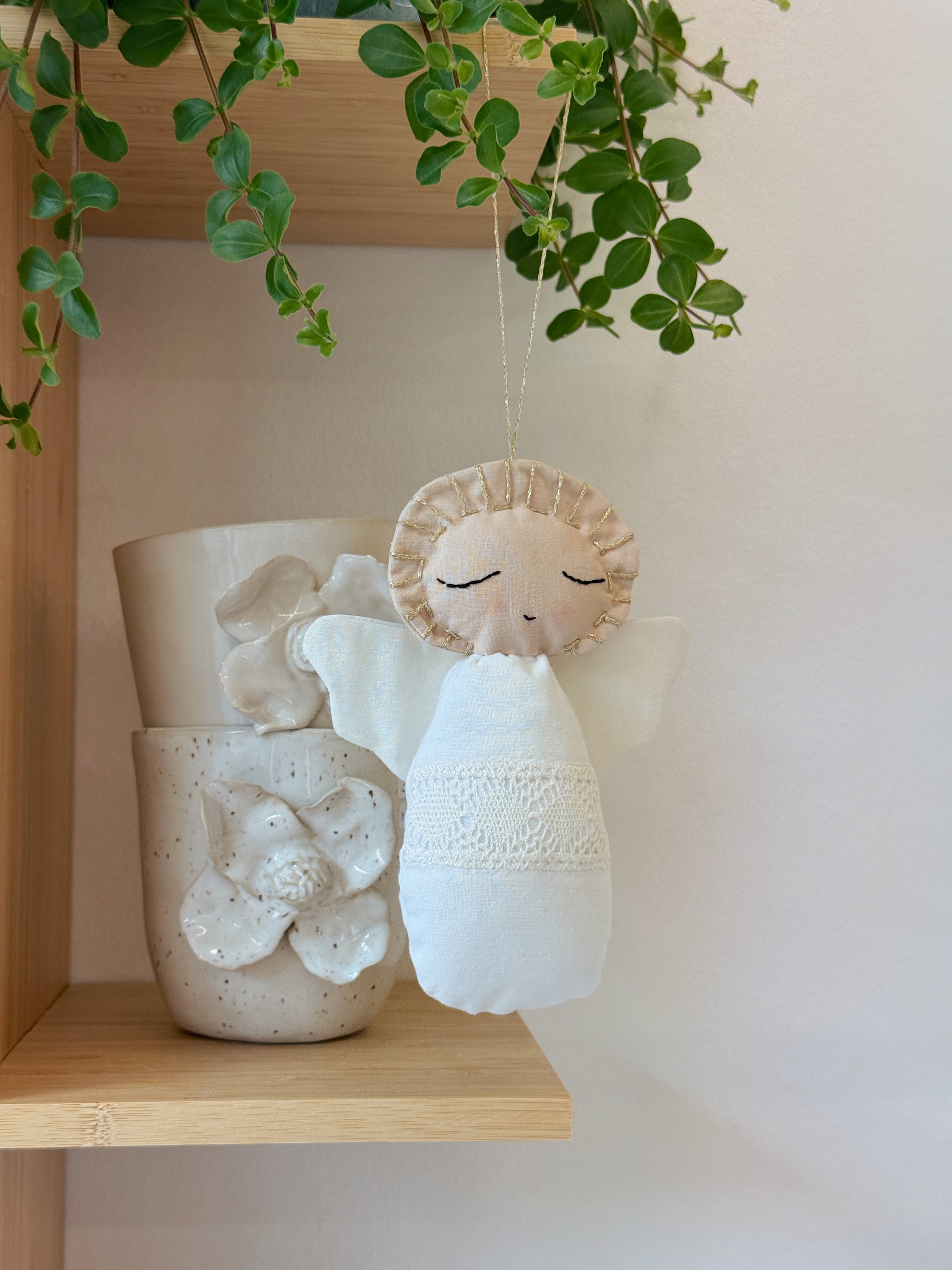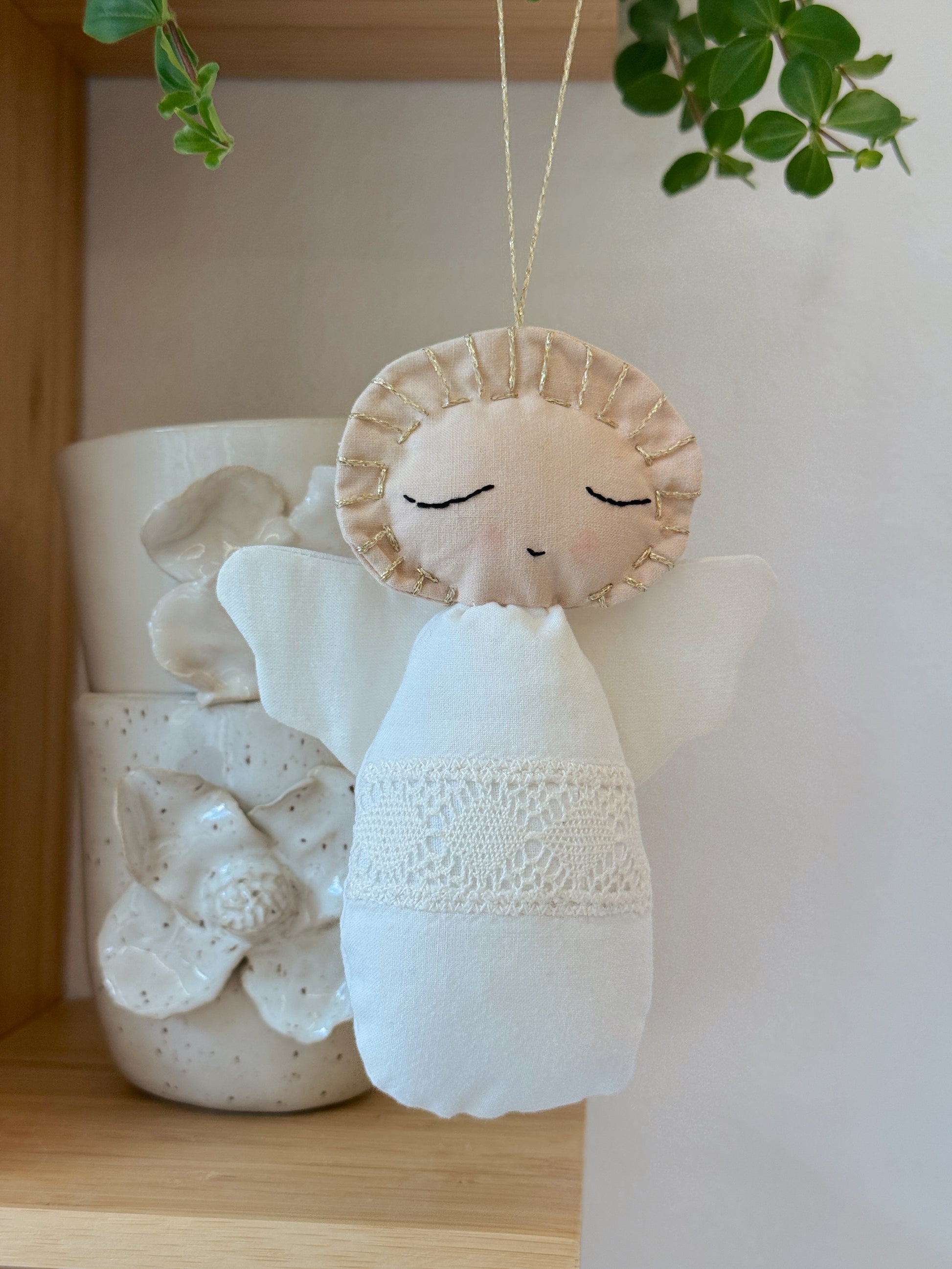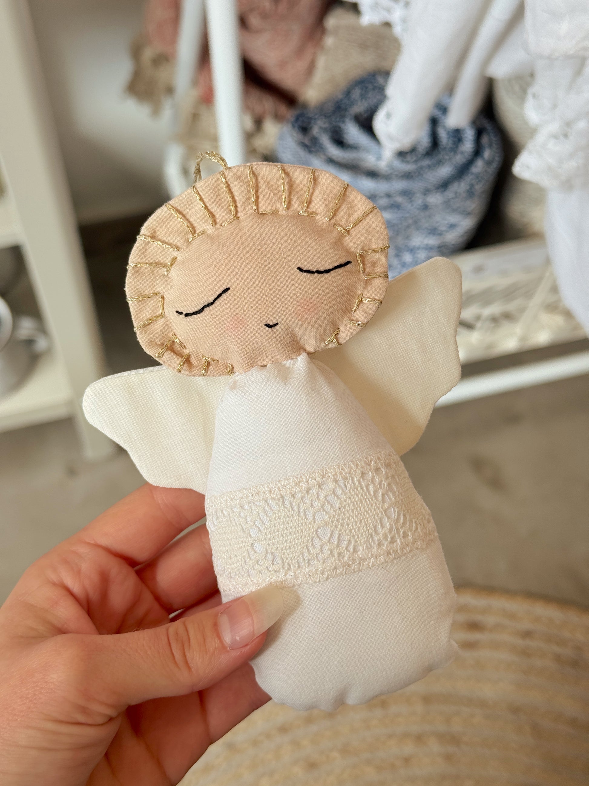 Fineste juleengel, der giver et finurligt og sødt udtryk. Kan også sagtens pynte i boligen resten af året. Fåes i flere udgaver som alle er skabt i et mix af vintage- og plantefarvede tekstiler.