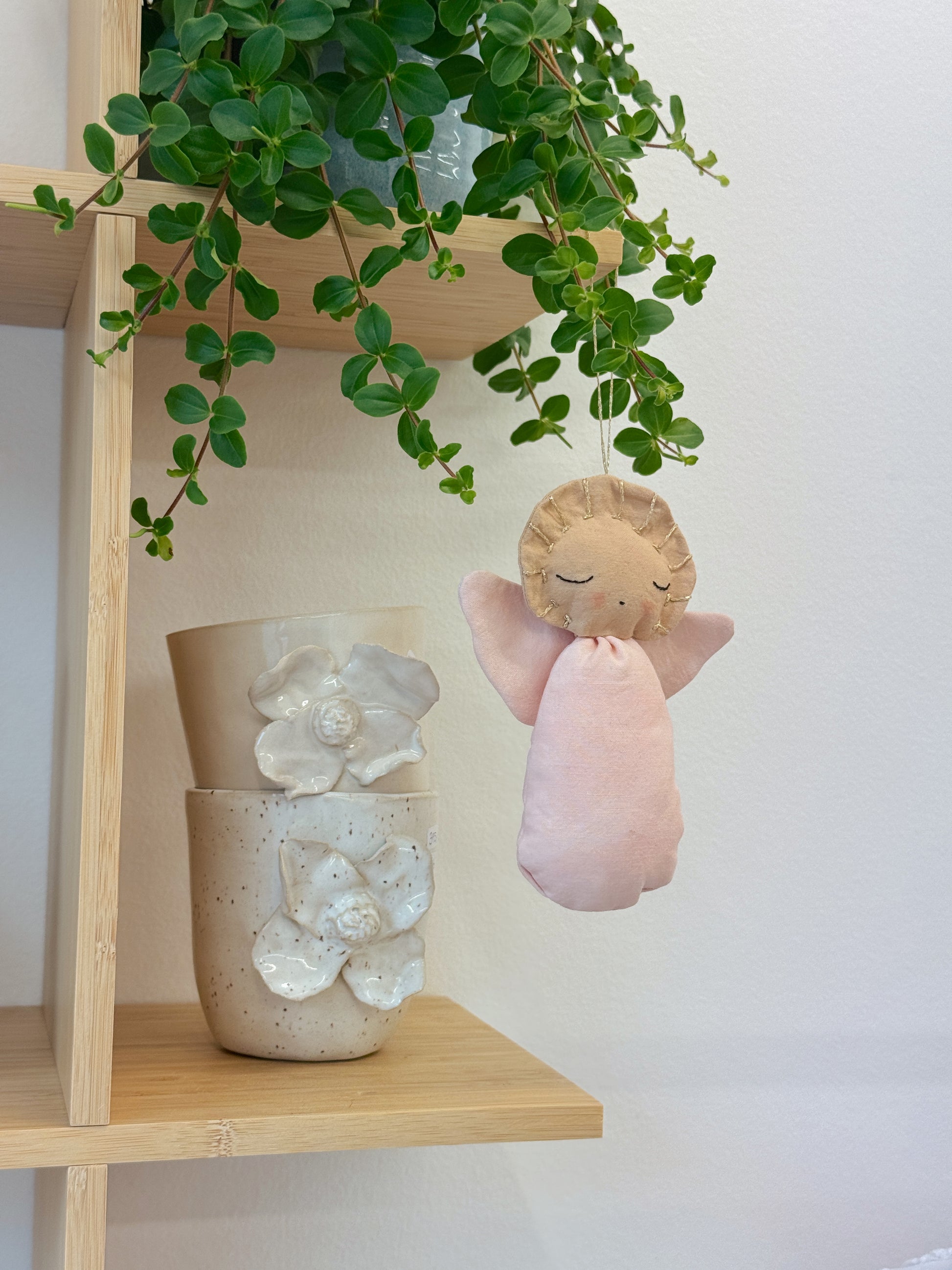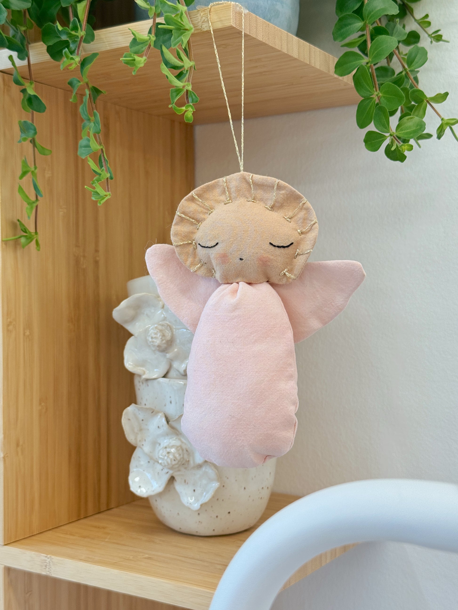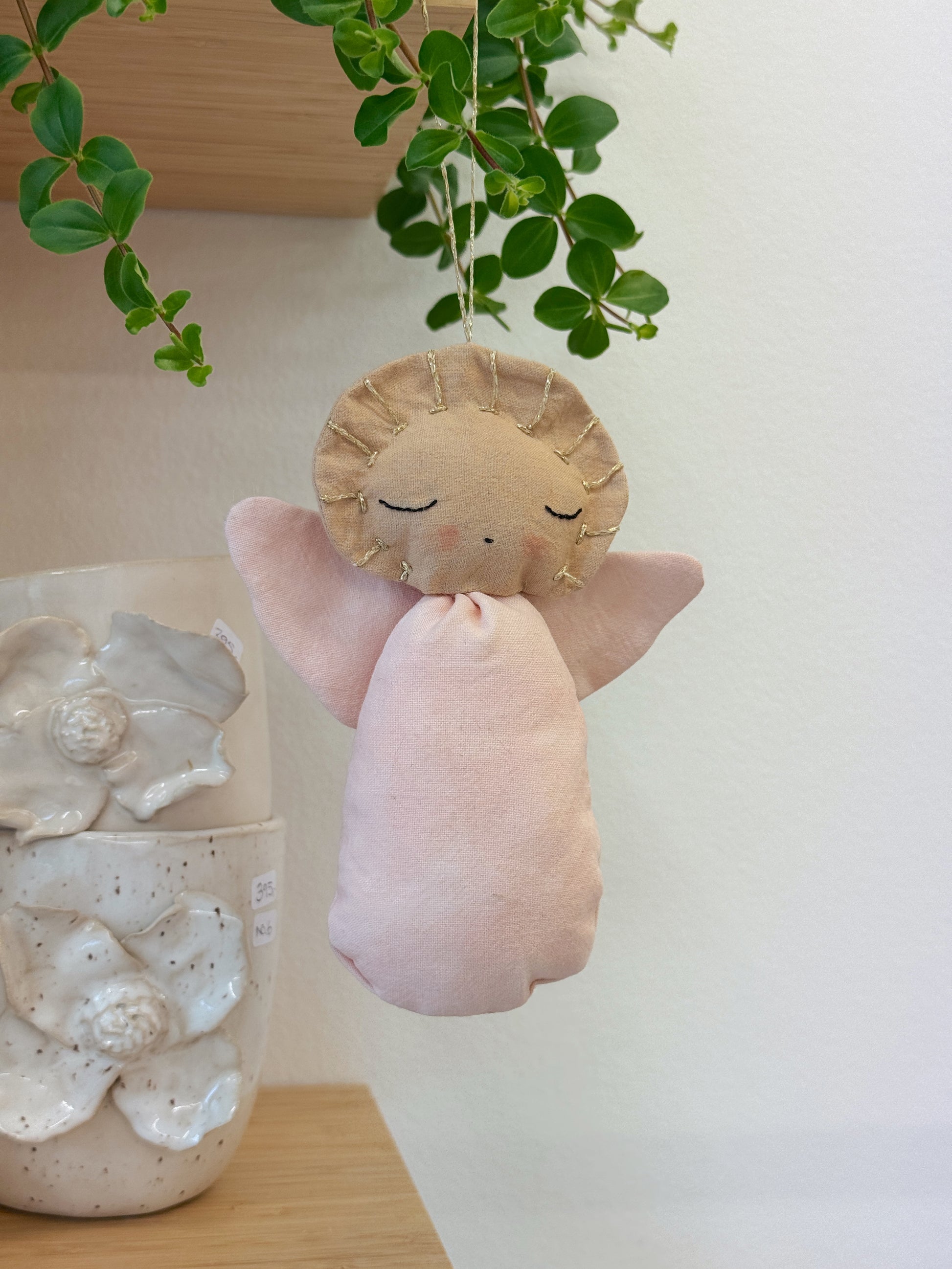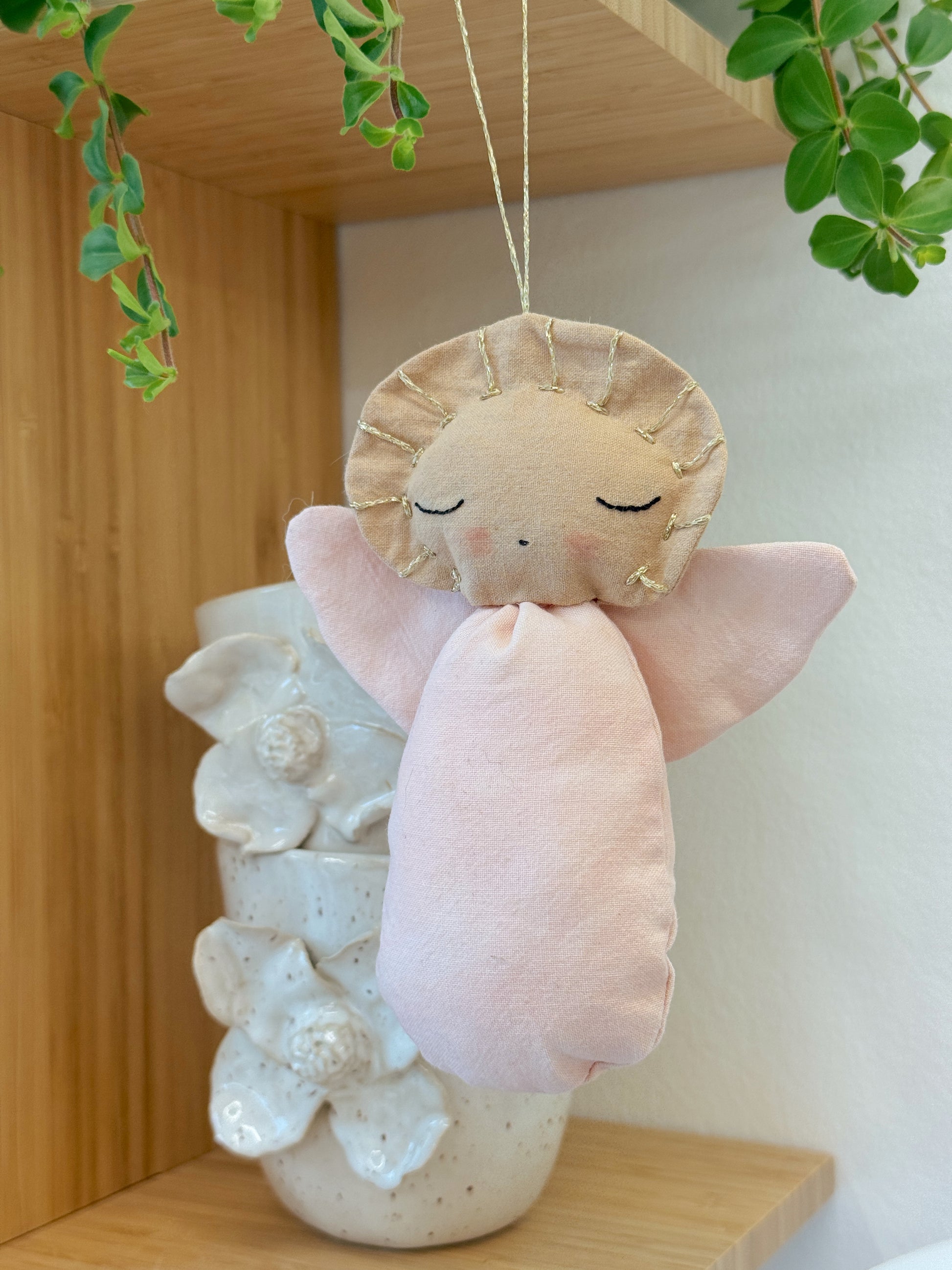 Fineste juleengel, der giver et finurligt og sødt udtryk. Kan også sagtens pynte i boligen resten af året. Fåes i flere udgaver som alle er skabt i et mix af vintage- og plantefarvede tekstiler.