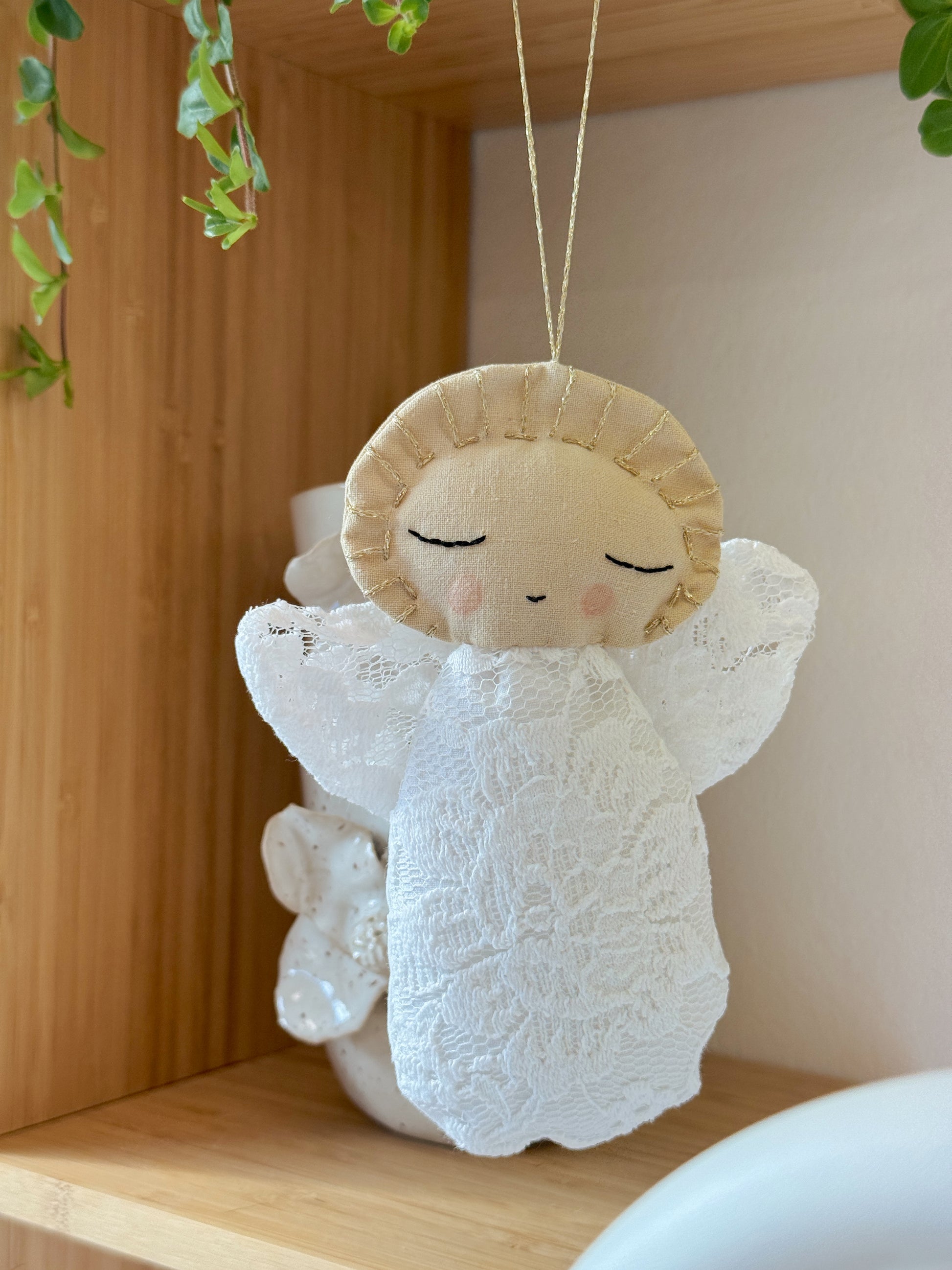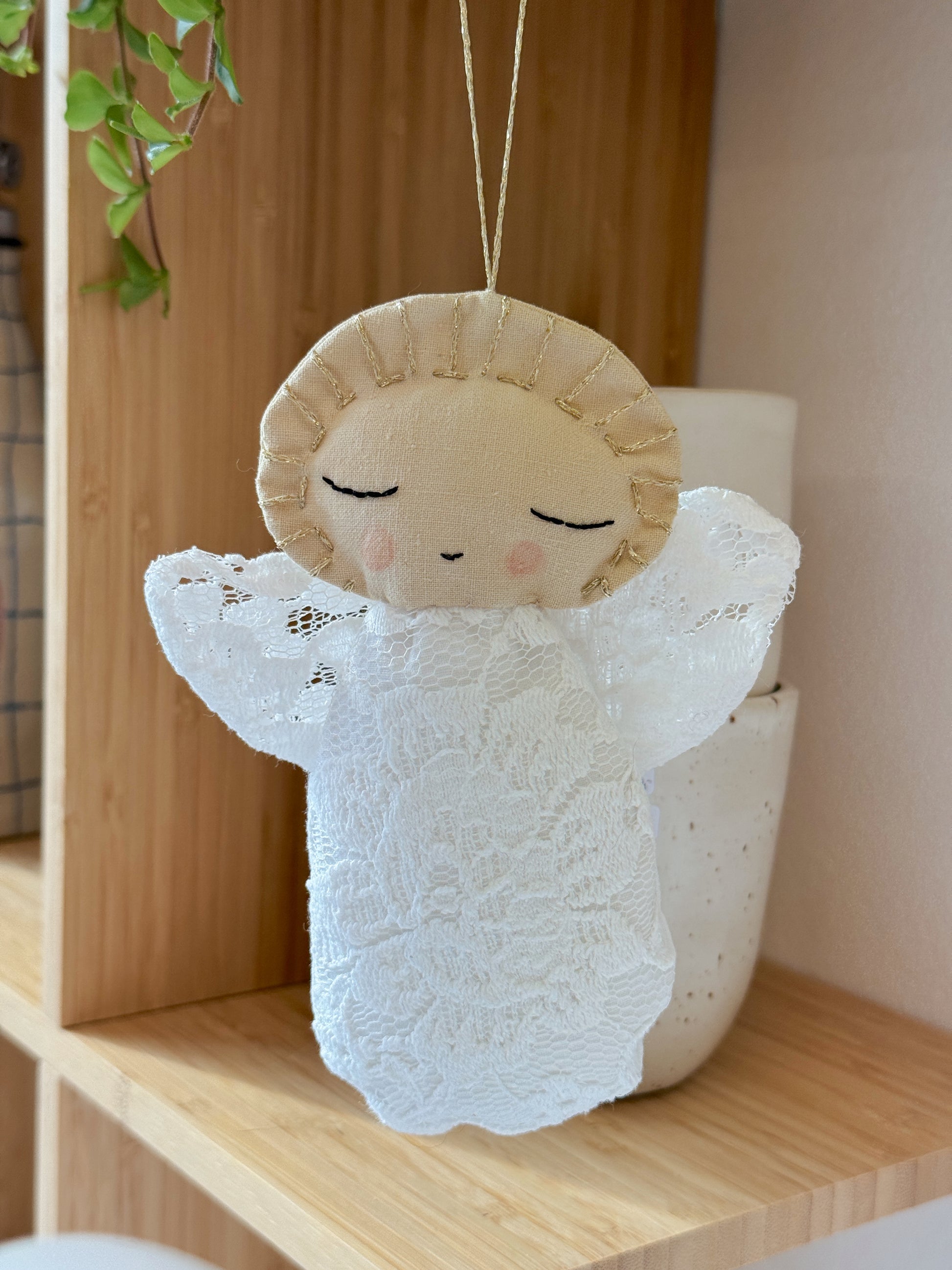 Fineste juleengel, der giver et finurligt og sødt udtryk. Kan også sagtens pynte i boligen resten af året. Fåes i flere udgaver som alle er skabt i et mix af vintage- og plantefarvede tekstiler.