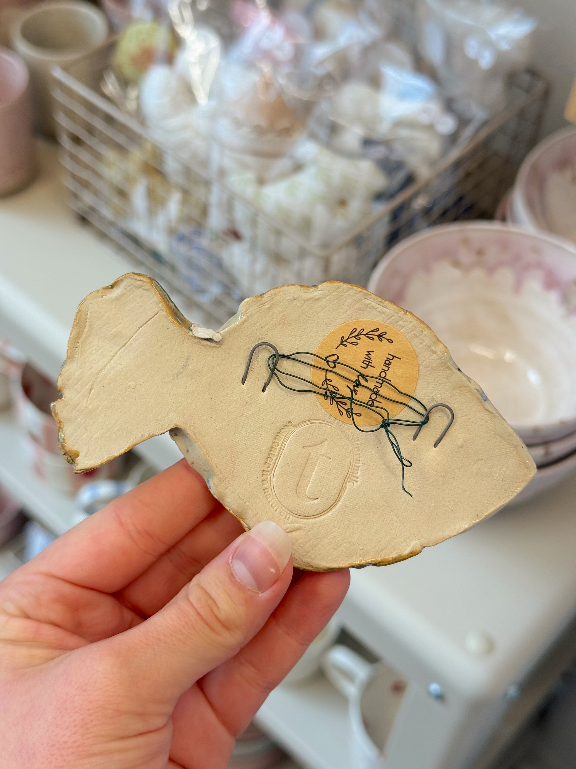 Hendes keramik forener naturens skønhed med et personligt udtryk. Hvert ophæng bærer spor af hænderne, der har skabt det – og en kærlighed til havet, som altid er til stede.