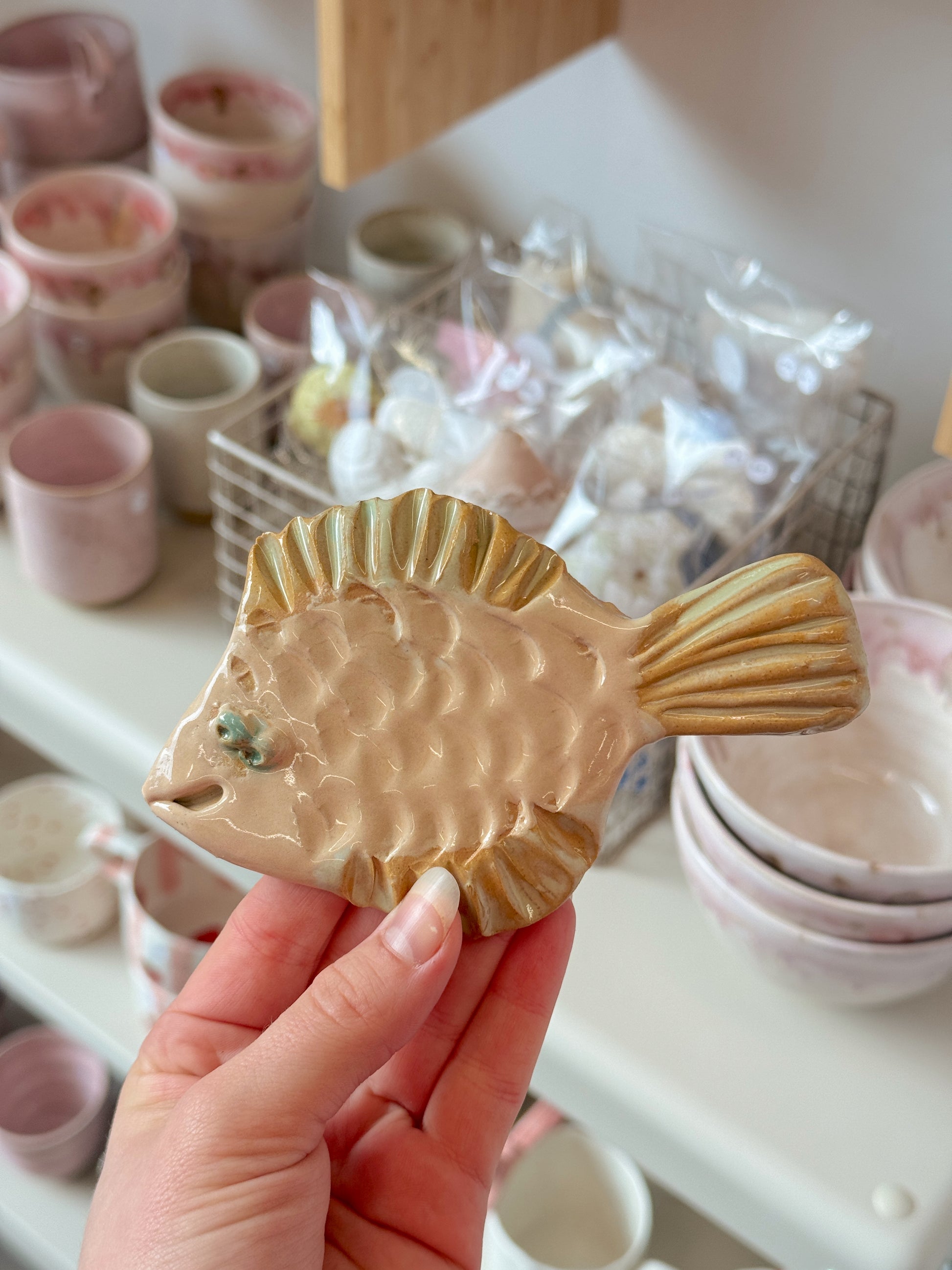 Hendes keramik forener naturens skønhed med et personligt udtryk. Hvert ophæng bærer spor af hænderne, der har skabt det – og en kærlighed til havet, som altid er til stede.