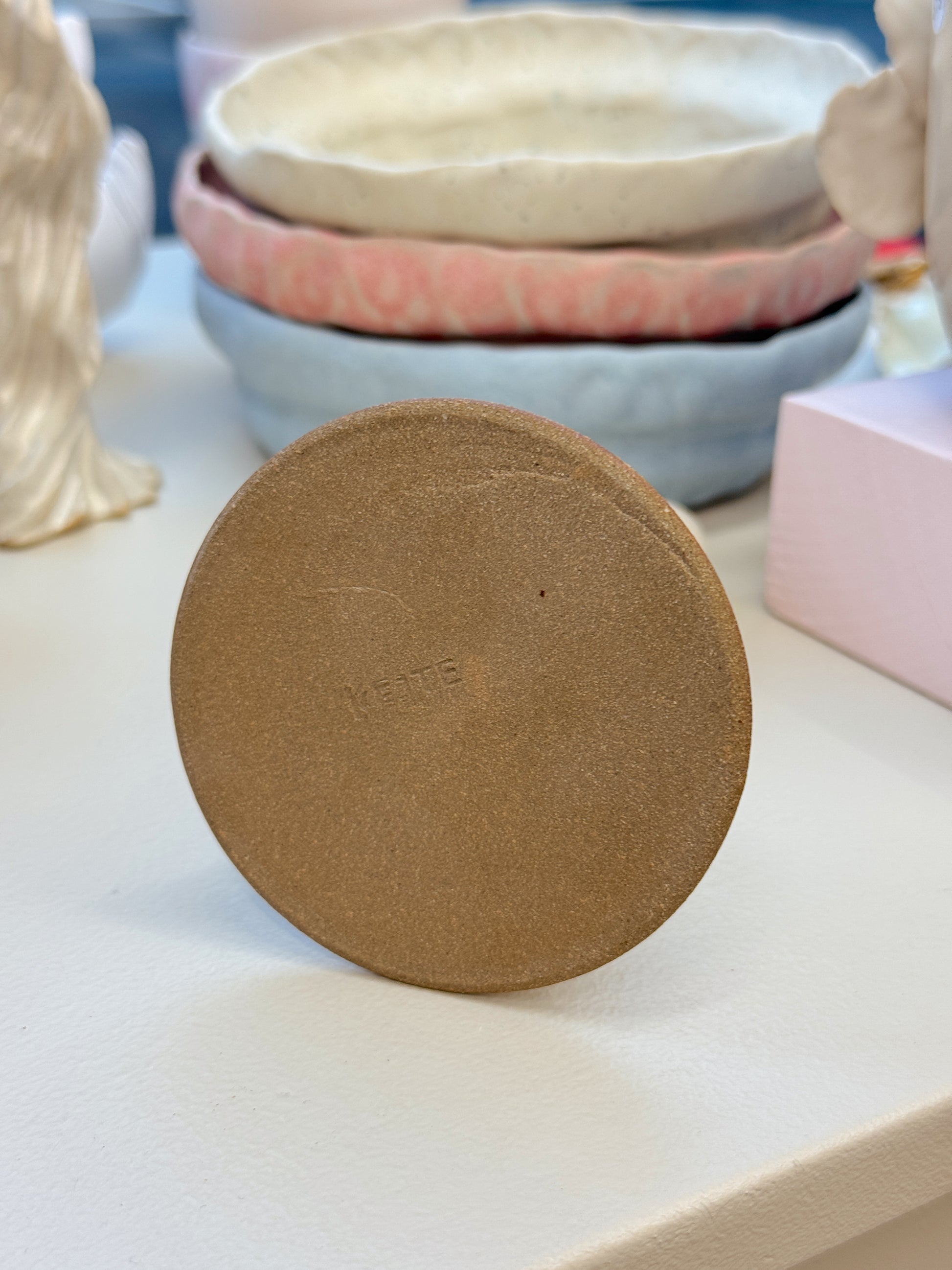 Holder til fire æggedonuts fra Kejte Keramik i mat hvid glasur.