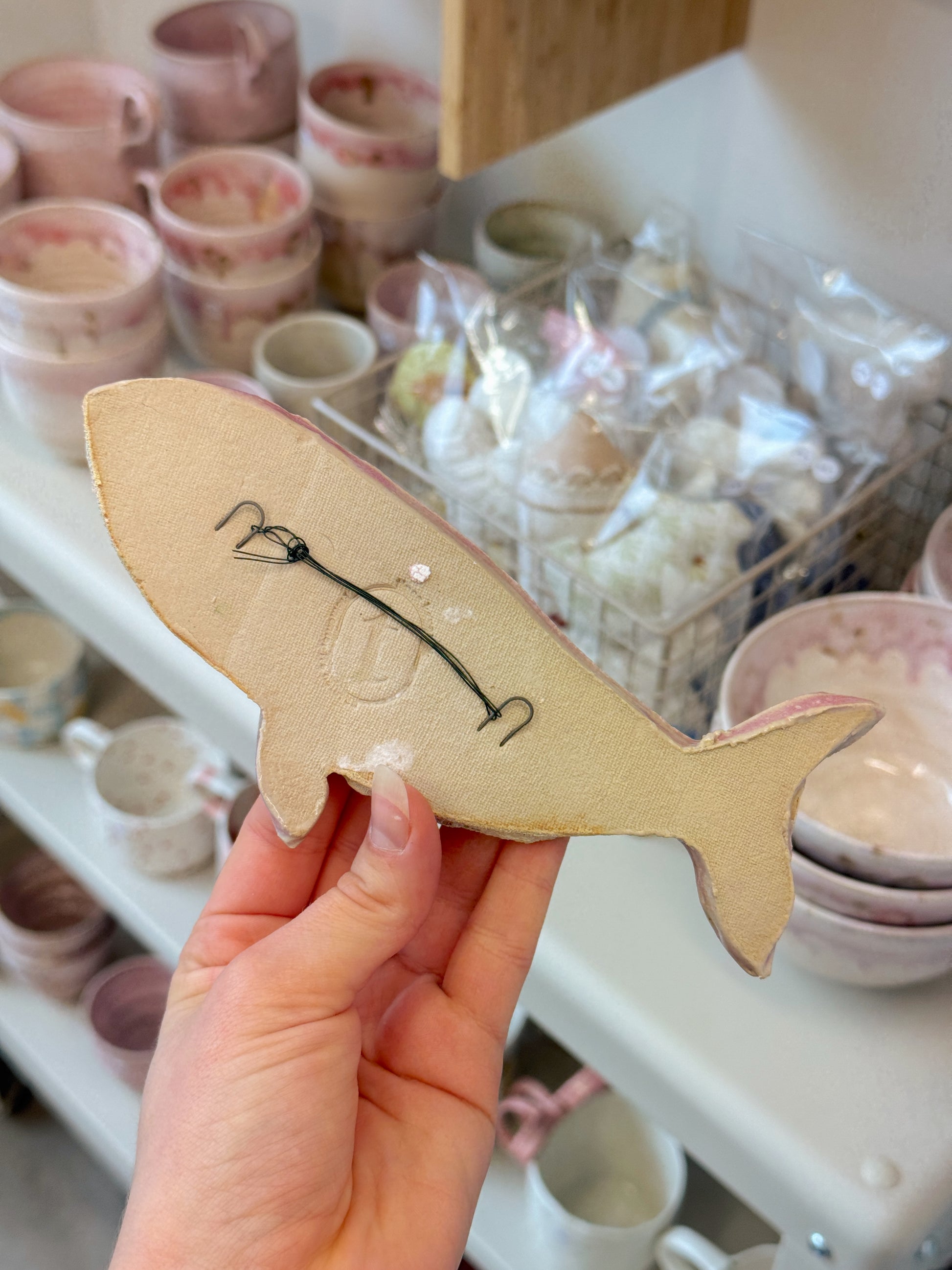 Hendes keramik forener naturens skønhed med et personligt udtryk. Hvert ophæng bærer spor af hænderne, der har skabt det – og en kærlighed til havet, som altid er til stede.