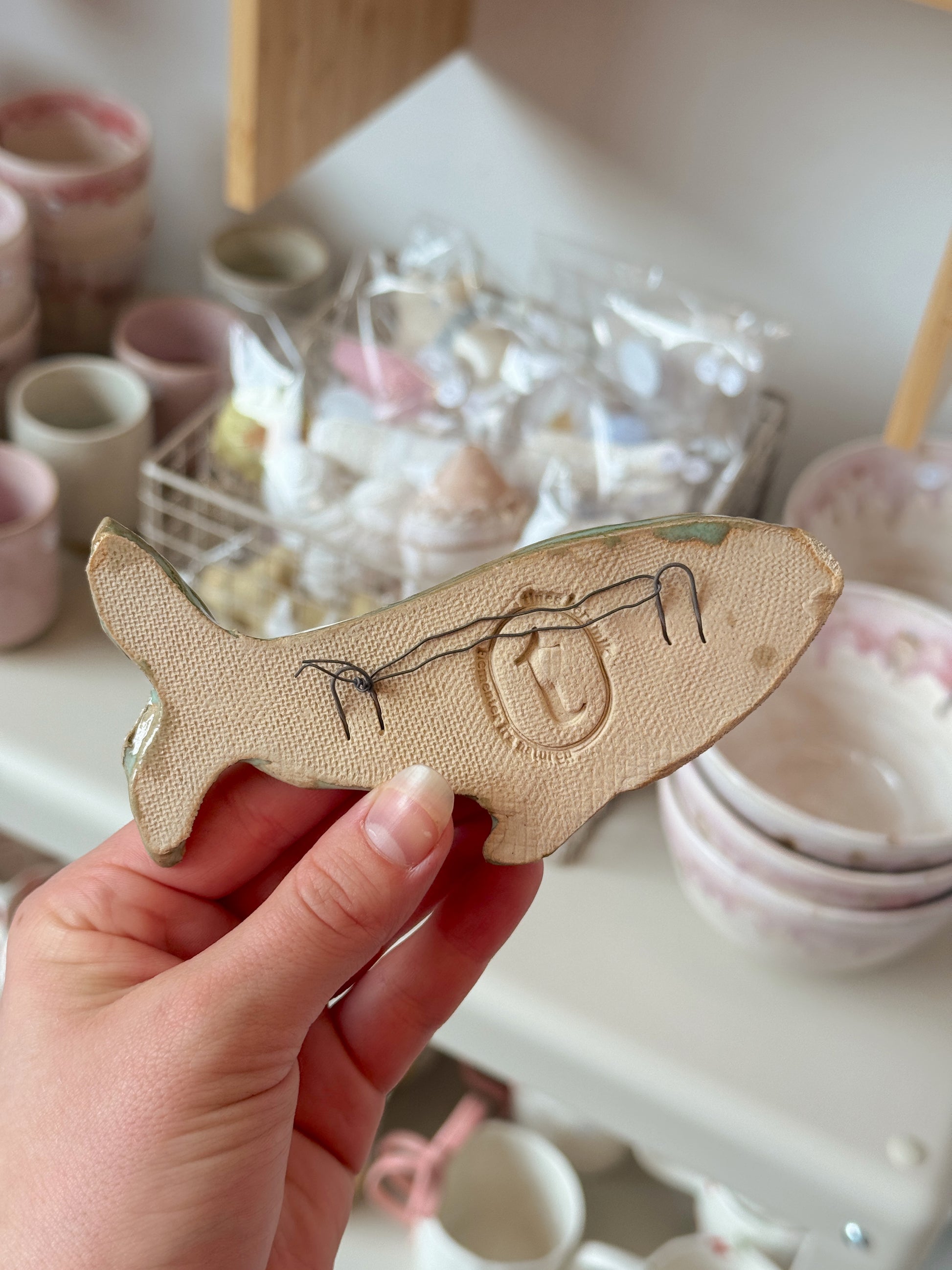 Hendes keramik forener naturens skønhed med et personligt udtryk. Hvert ophæng bærer spor af hænderne, der har skabt det – og en kærlighed til havet, som altid er til stede.
