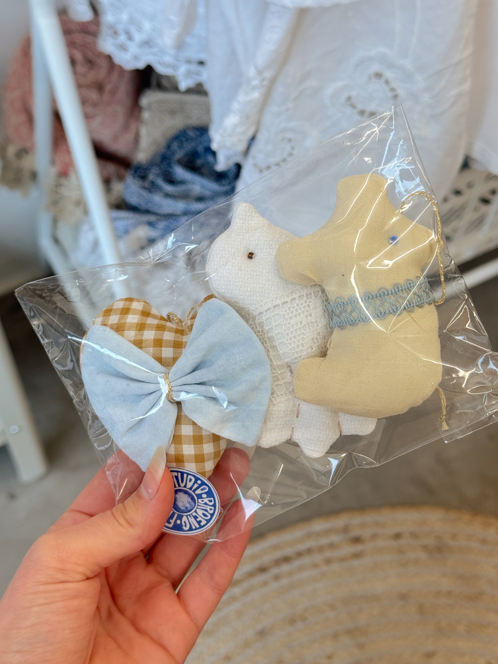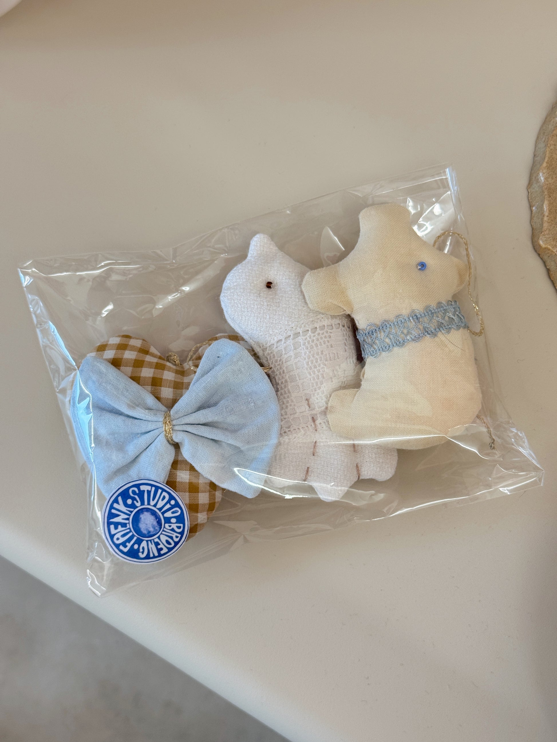 3-pak med forskellige udgaver af julepynt. Fåes i flere udgaver som alle er skabt i et mix af vintage- og plantefarvede tekstiler.