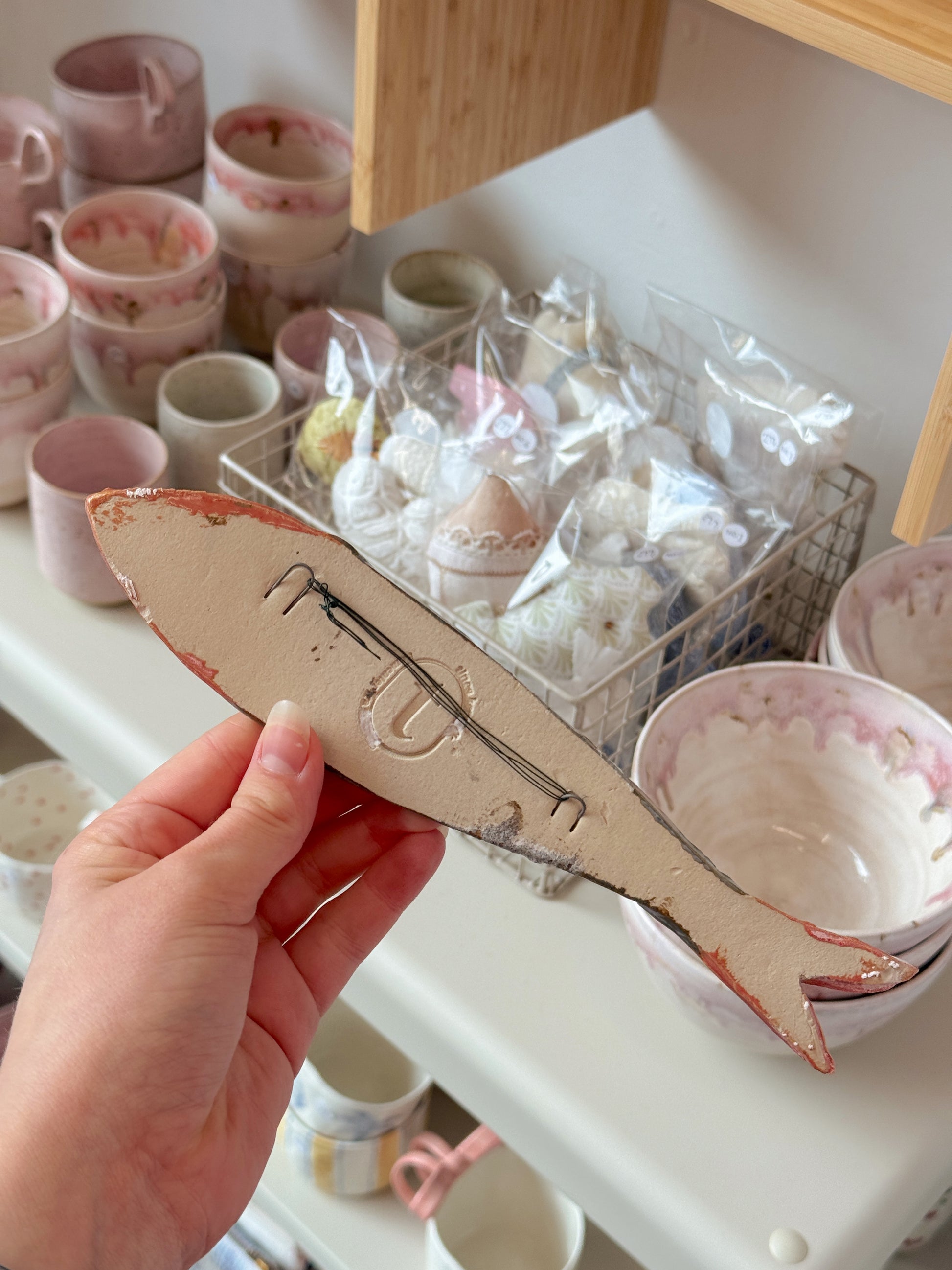 Hendes keramik forener naturens skønhed med et personligt udtryk. Hvert ophæng bærer spor af hænderne, der har skabt det – og en kærlighed til havet, som altid er til stede.