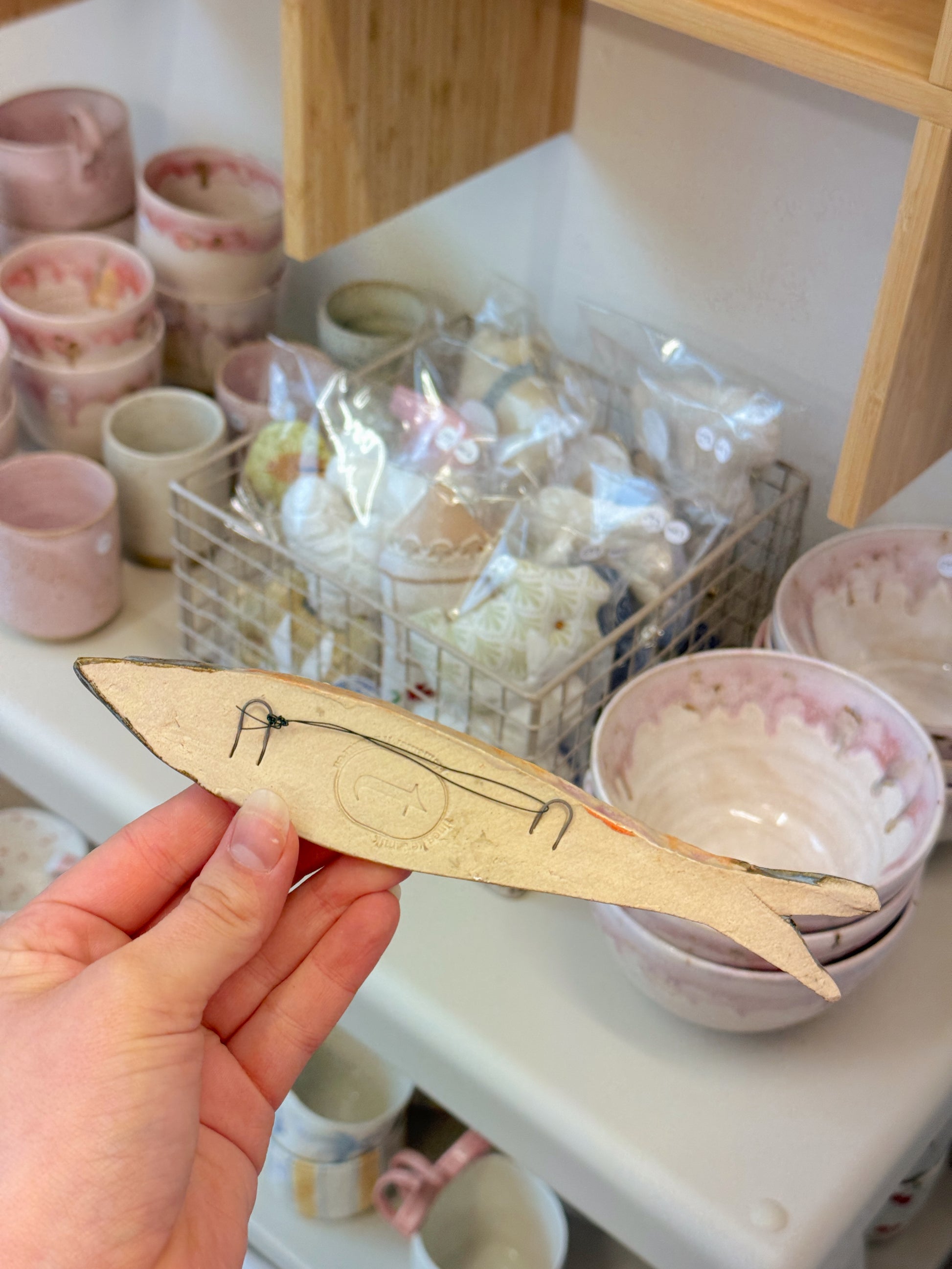 Hendes keramik forener naturens skønhed med et personligt udtryk. Hvert ophæng bærer spor af hænderne, der har skabt det – og en kærlighed til havet, som altid er til stede.