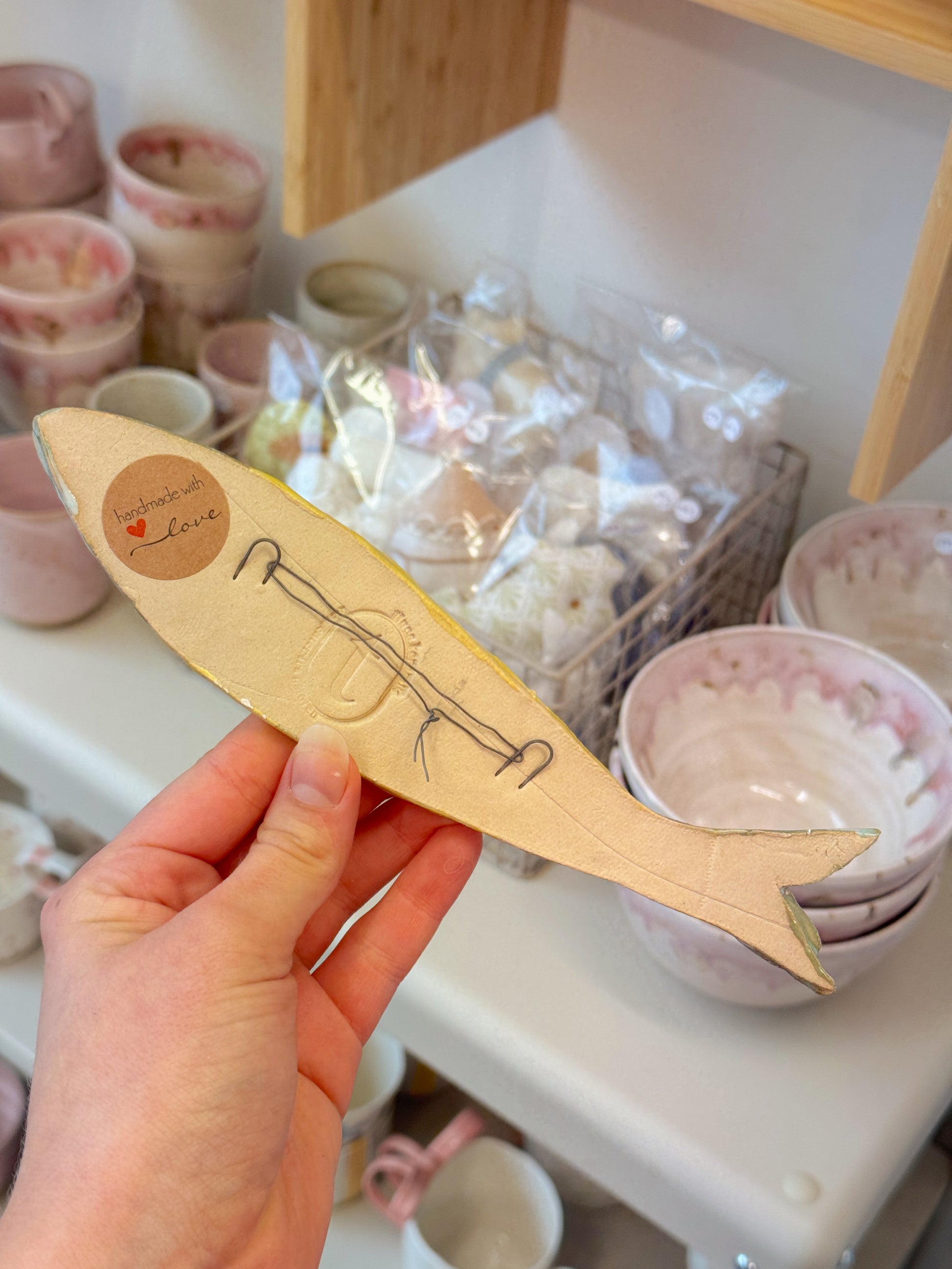 Hendes keramik forener naturens skønhed med et personligt udtryk. Hvert ophæng bærer spor af hænderne, der har skabt det – og en kærlighed til havet, som altid er til stede.