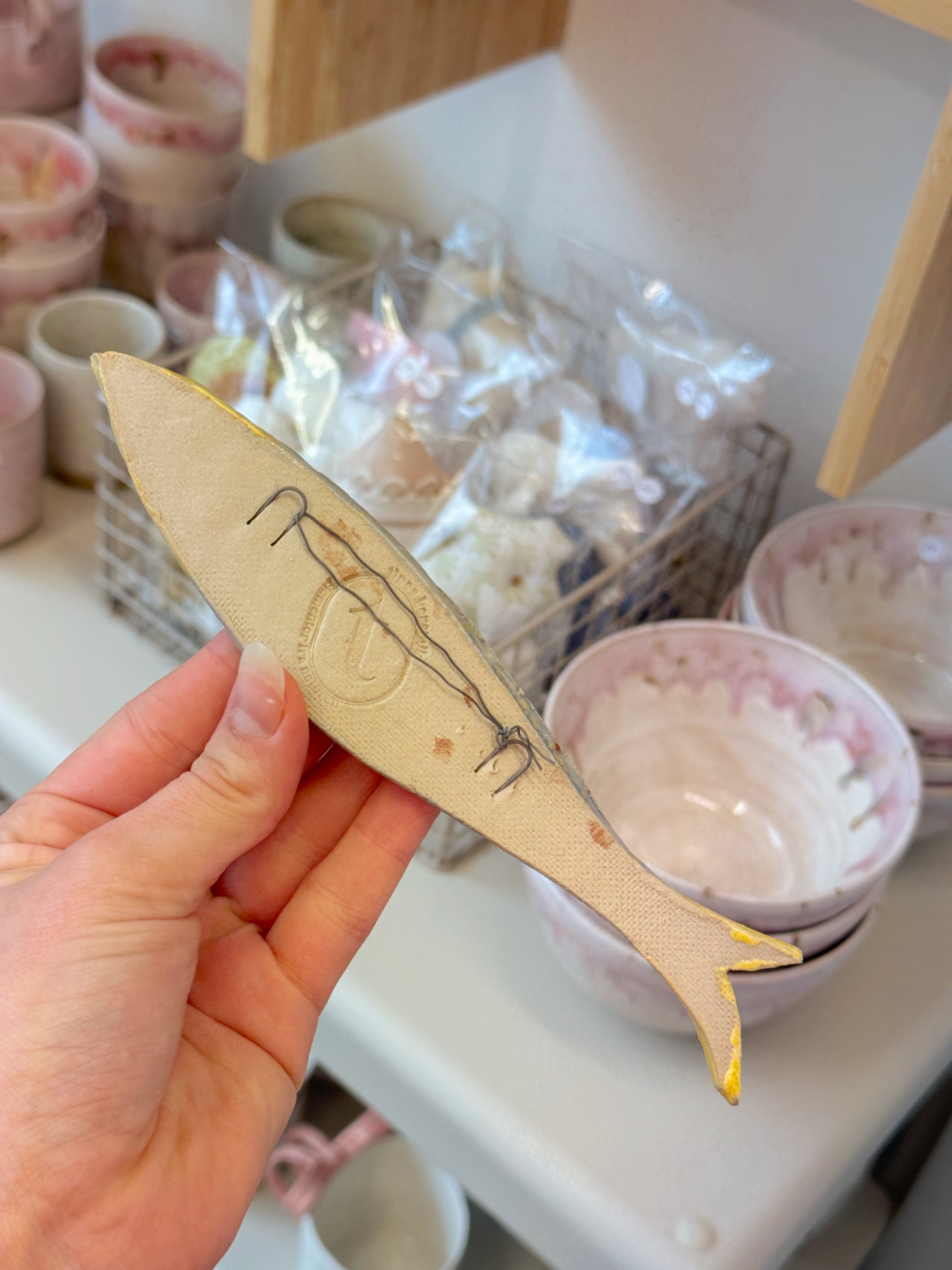 Hendes keramik forener naturens skønhed med et personligt udtryk. Hvert ophæng bærer spor af hænderne, der har skabt det – og en kærlighed til havet, som altid er til stede.
