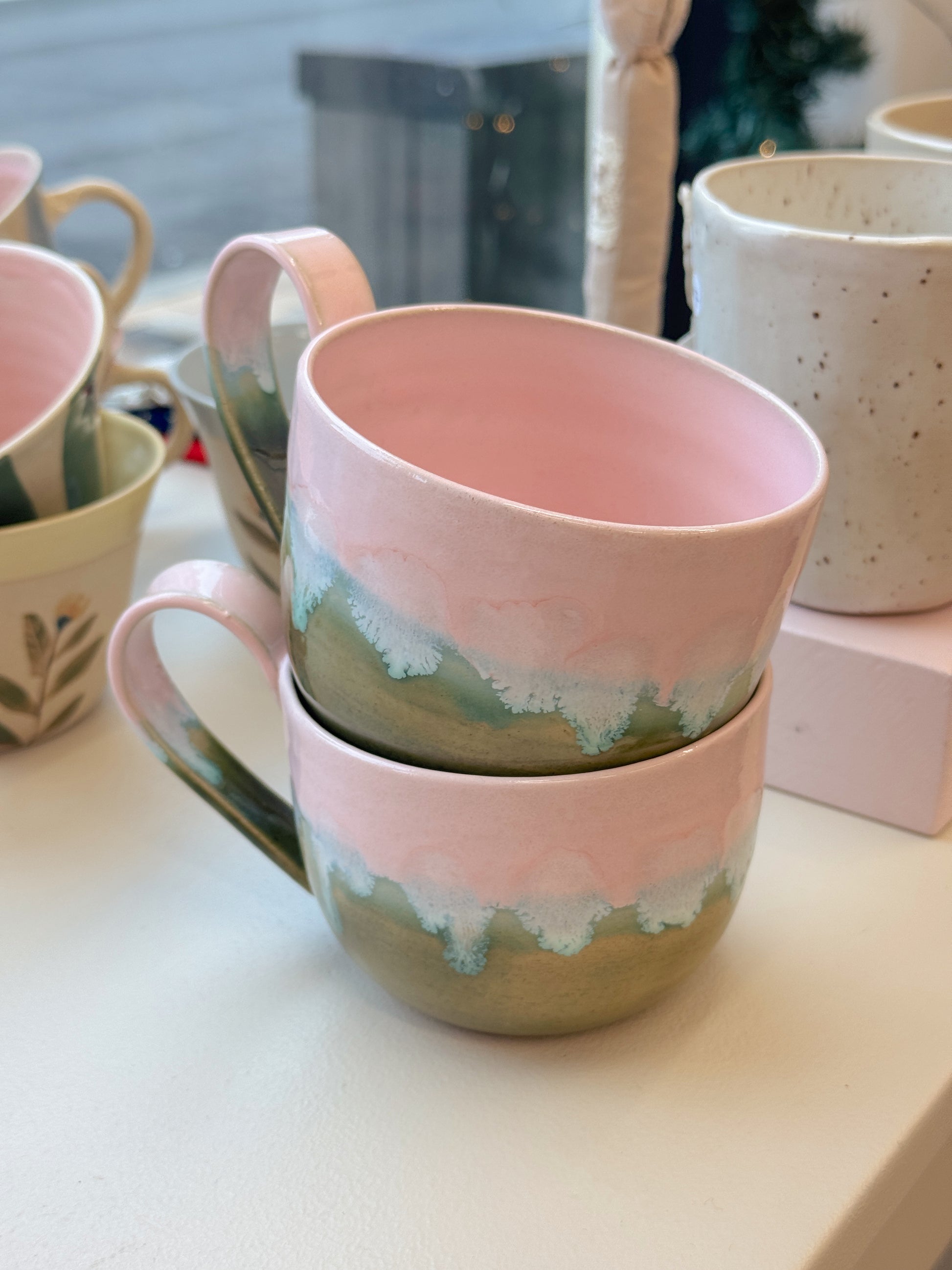Da hver kop formes og glaseres i hånden, vil der naturligt forekomme variationer i størrelse, form og glasering. Netop disse forskelle giver koppen sin særlige charme og gør hver enkelt helt unik. Billederne er derfor vejledende.