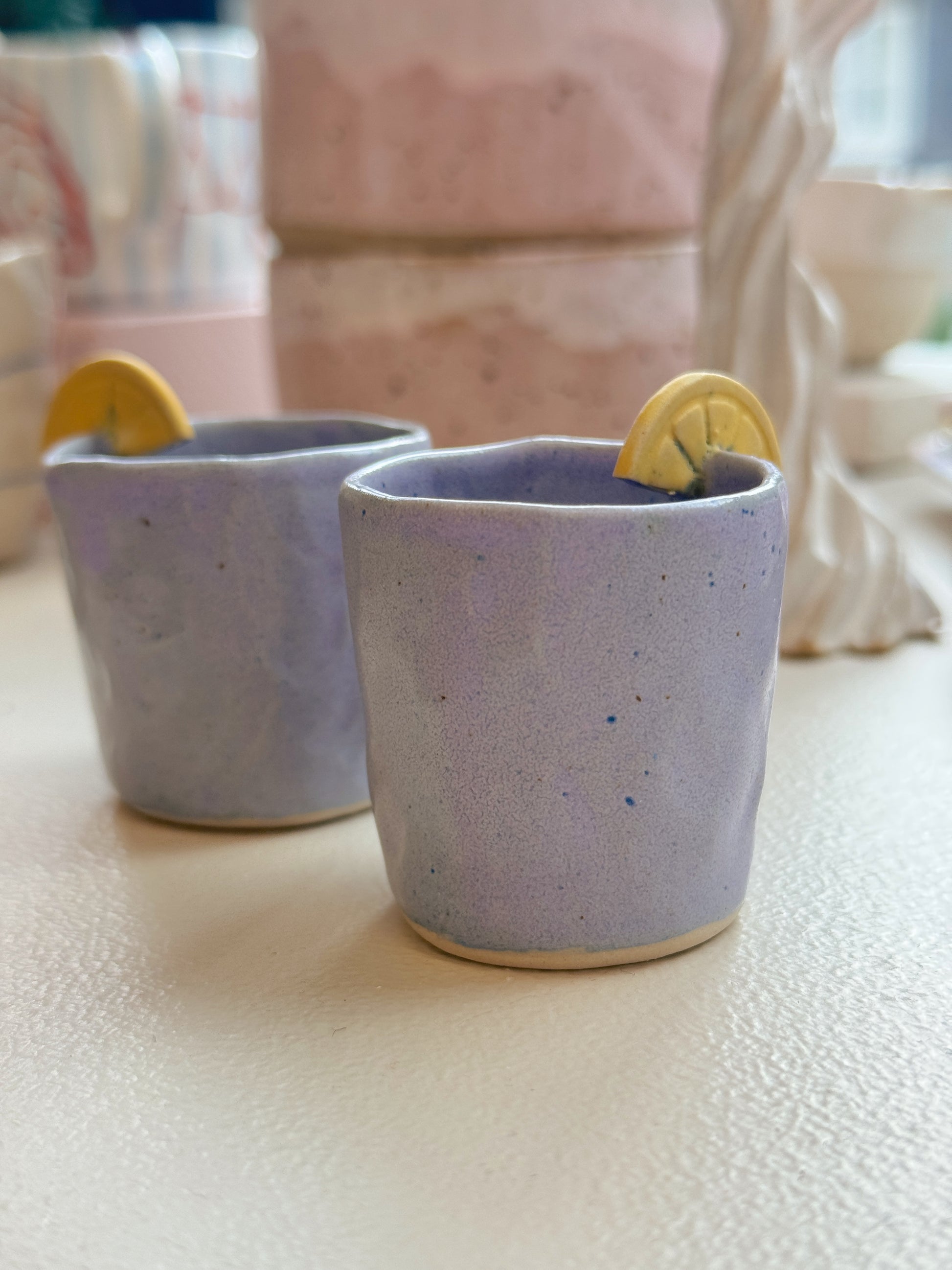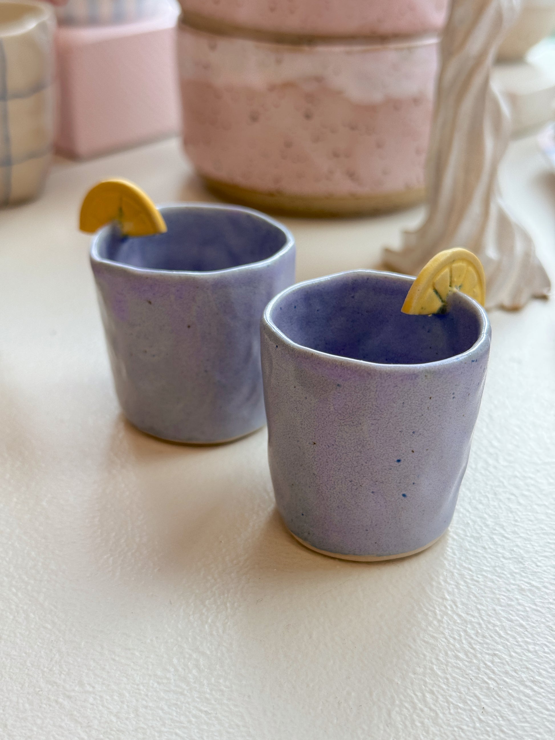 Små, charmerende shotsglas i hyggelige farver, der sætter stemningen! Håndlavet i stentøjsler, hvert glas er unikt og bidrager til hyggen – uanset om du nyder spiritus med vennerne, et ingefærshot om morgenen eller bare vil gøre noget ekstra ud af hverdagen.