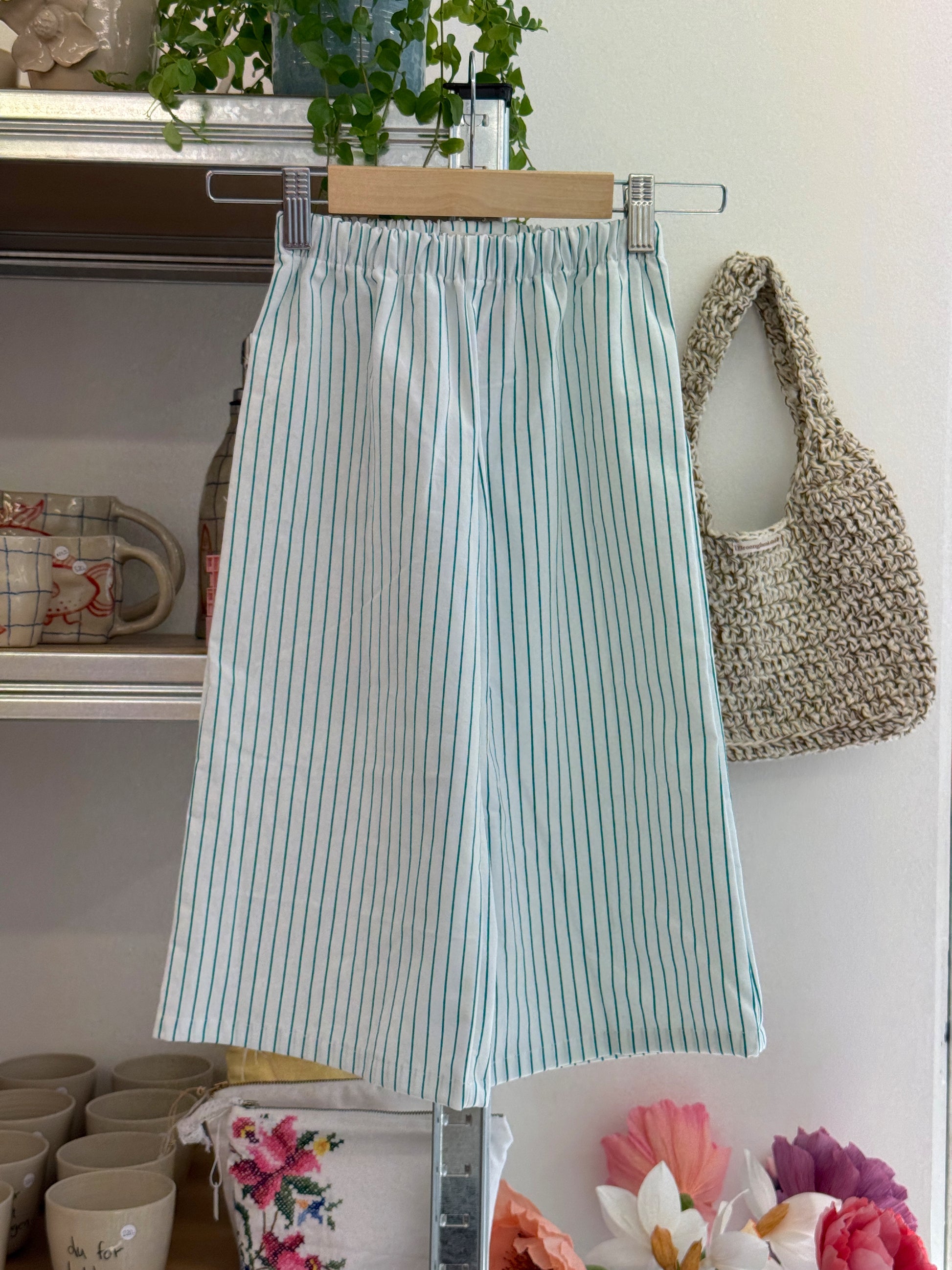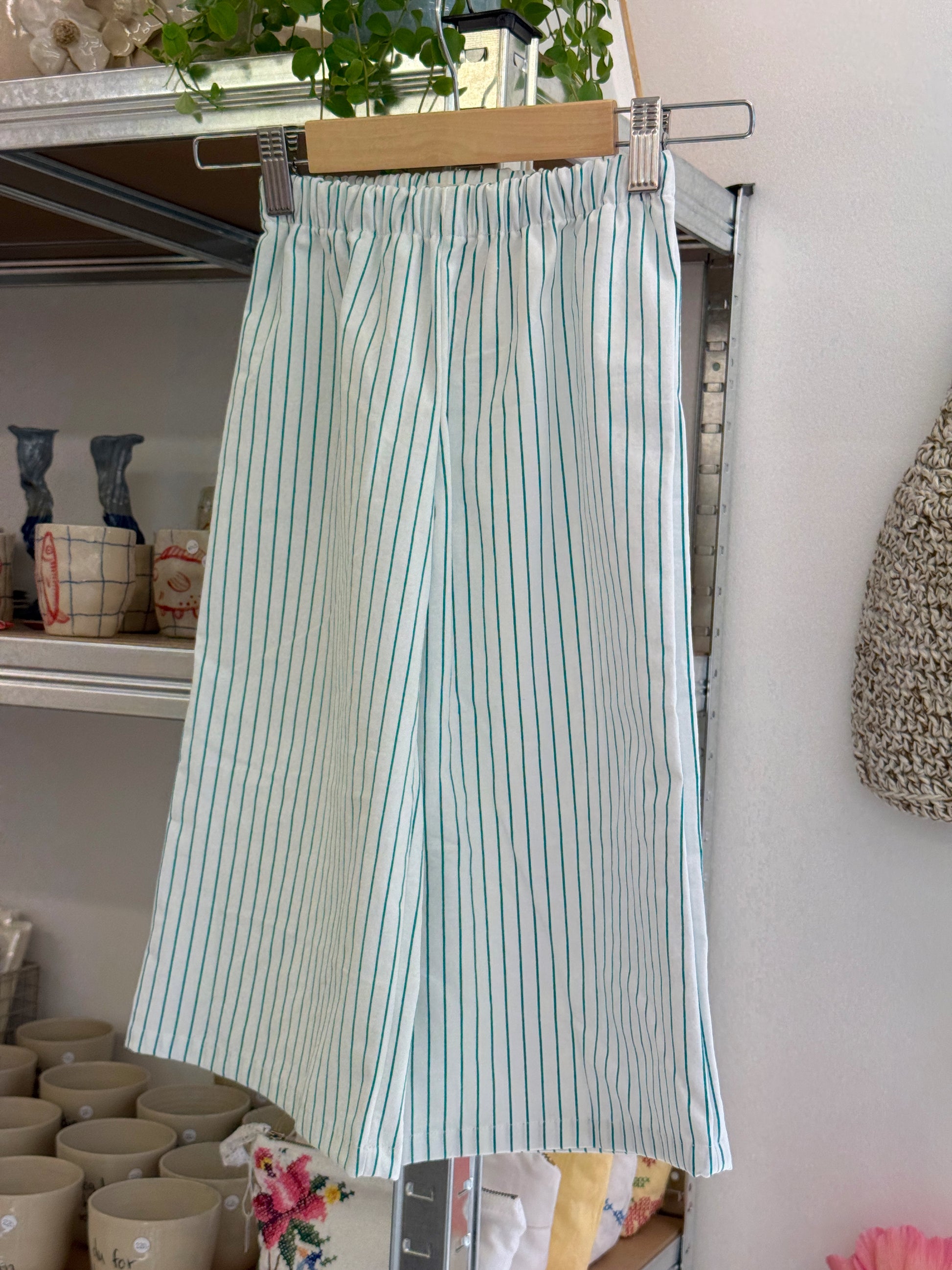 Et unikt og bæredygtig par bukser med et bedårende. De er designet og syet af Ditte-Marie, som står Tilde-Marie Genbrug. Alle produkter herfra er skabt af nøje udvalgte genbrugstekstiler, hvilket gør hvert enkelt produkt helt unikt – ikke produkter er ens.