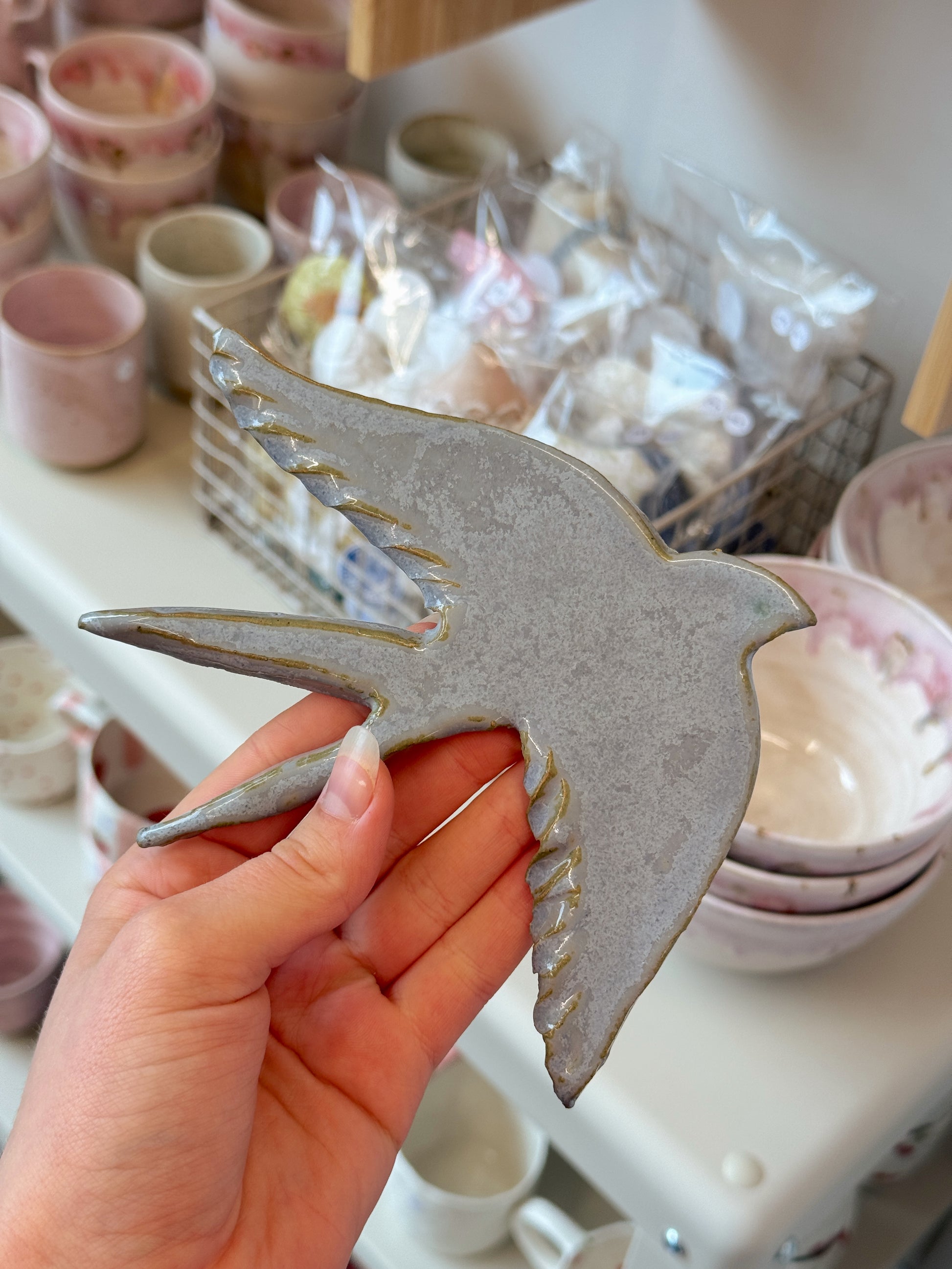 Hendes keramik forener naturens skønhed med et personligt udtryk. Hvert ophæng bærer spor af hænderne, der har skabt det – og en kærlighed til havet, som altid er til stede.