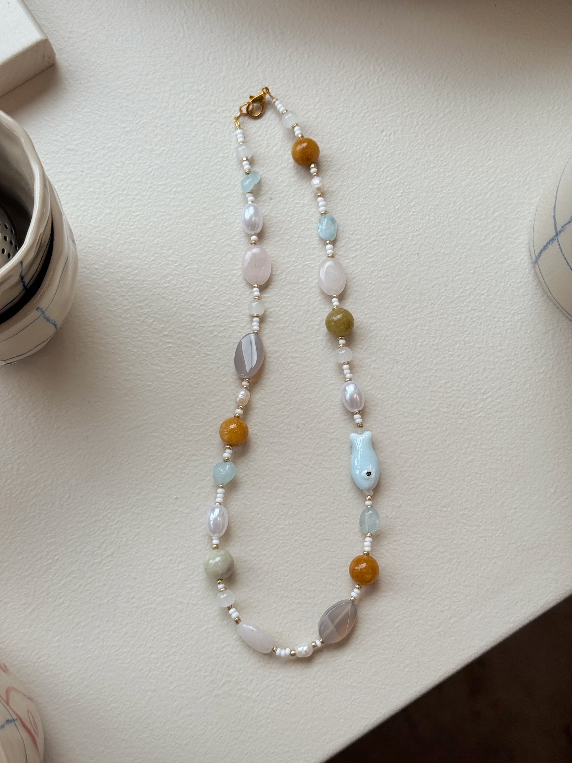 UNIKA halskæde med et mix af fine, finurlige perler. Dette er en UNIKA, hvilket betyder at der kun findes én af denne slags.