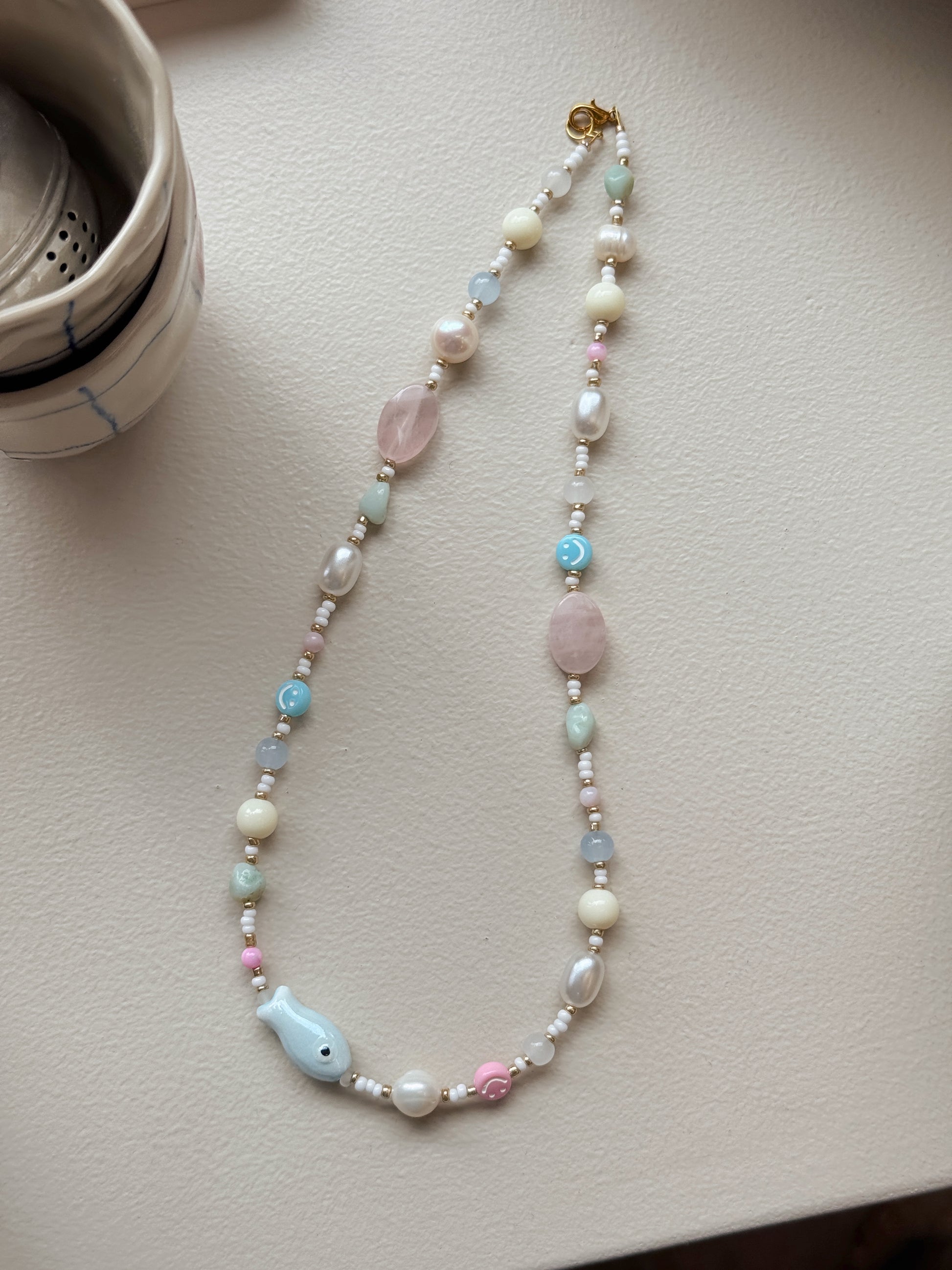 UNIKA halskæde med et mix af fine, finurlige perler. Dette er en UNIKA, hvilket betyder at der kun findes én af denne slags.