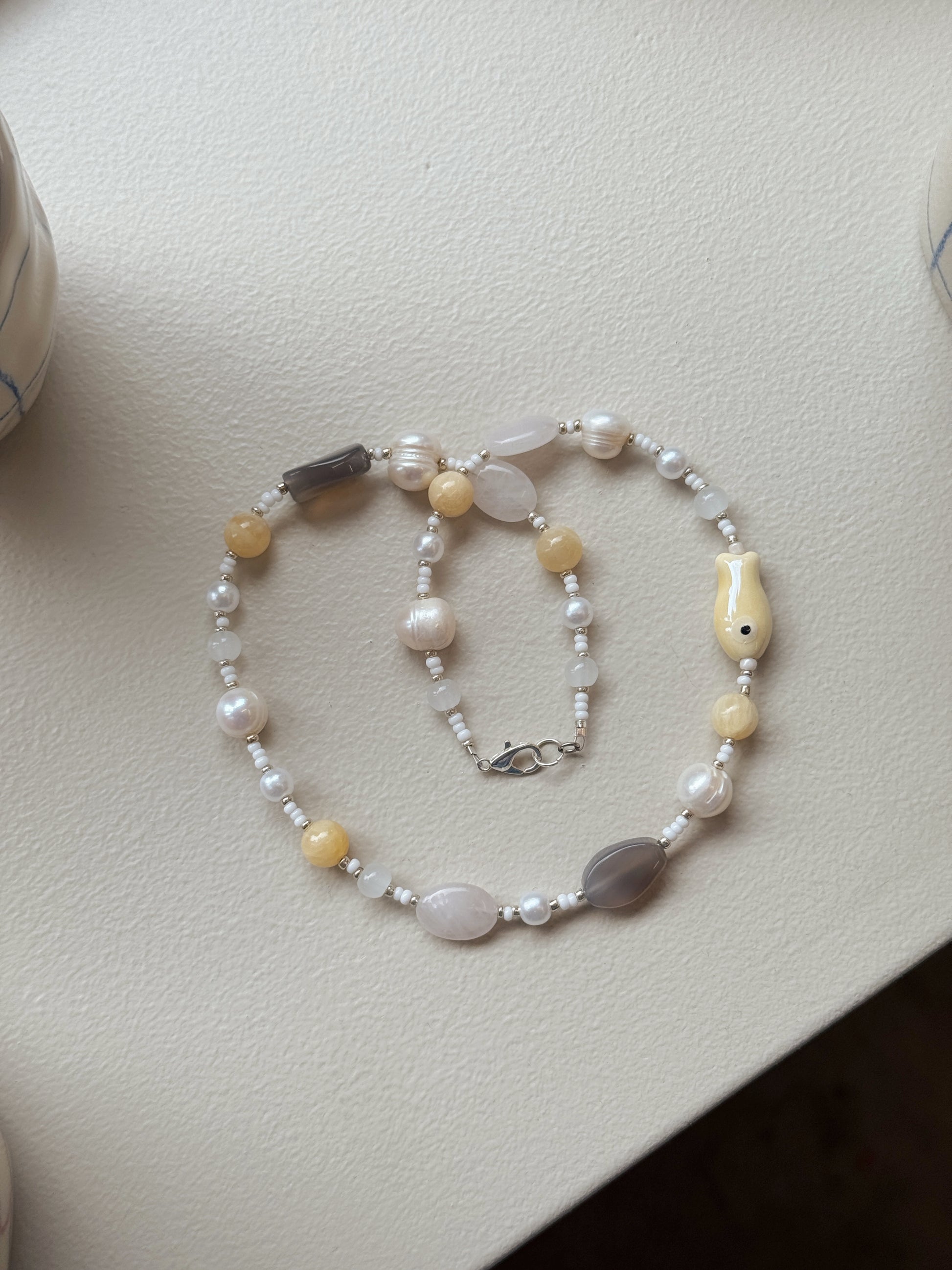 UNIKA halskæde med et mix af fine, finurlige perler. Dette er en UNIKA, hvilket betyder at der kun findes én af denne slags.