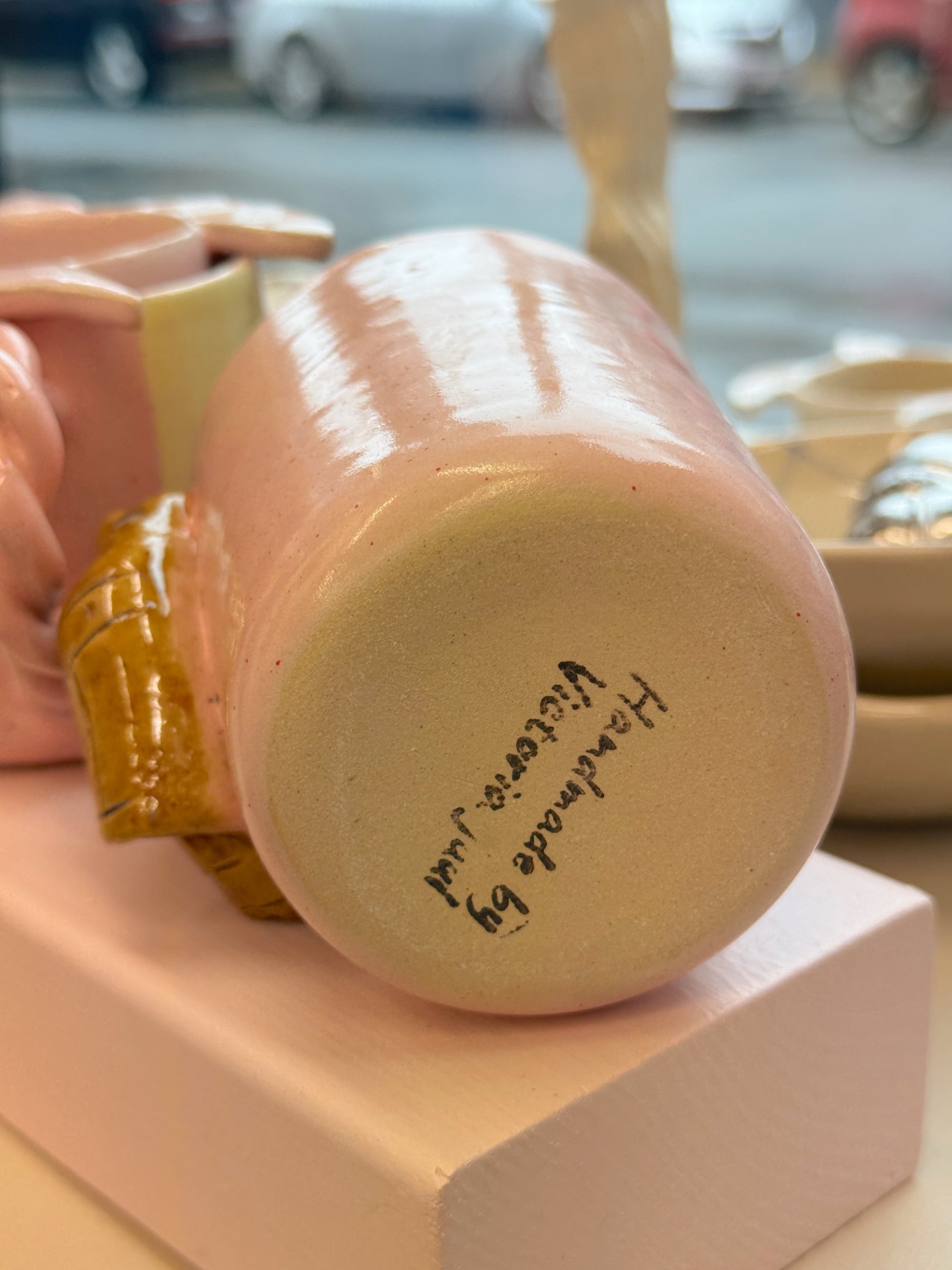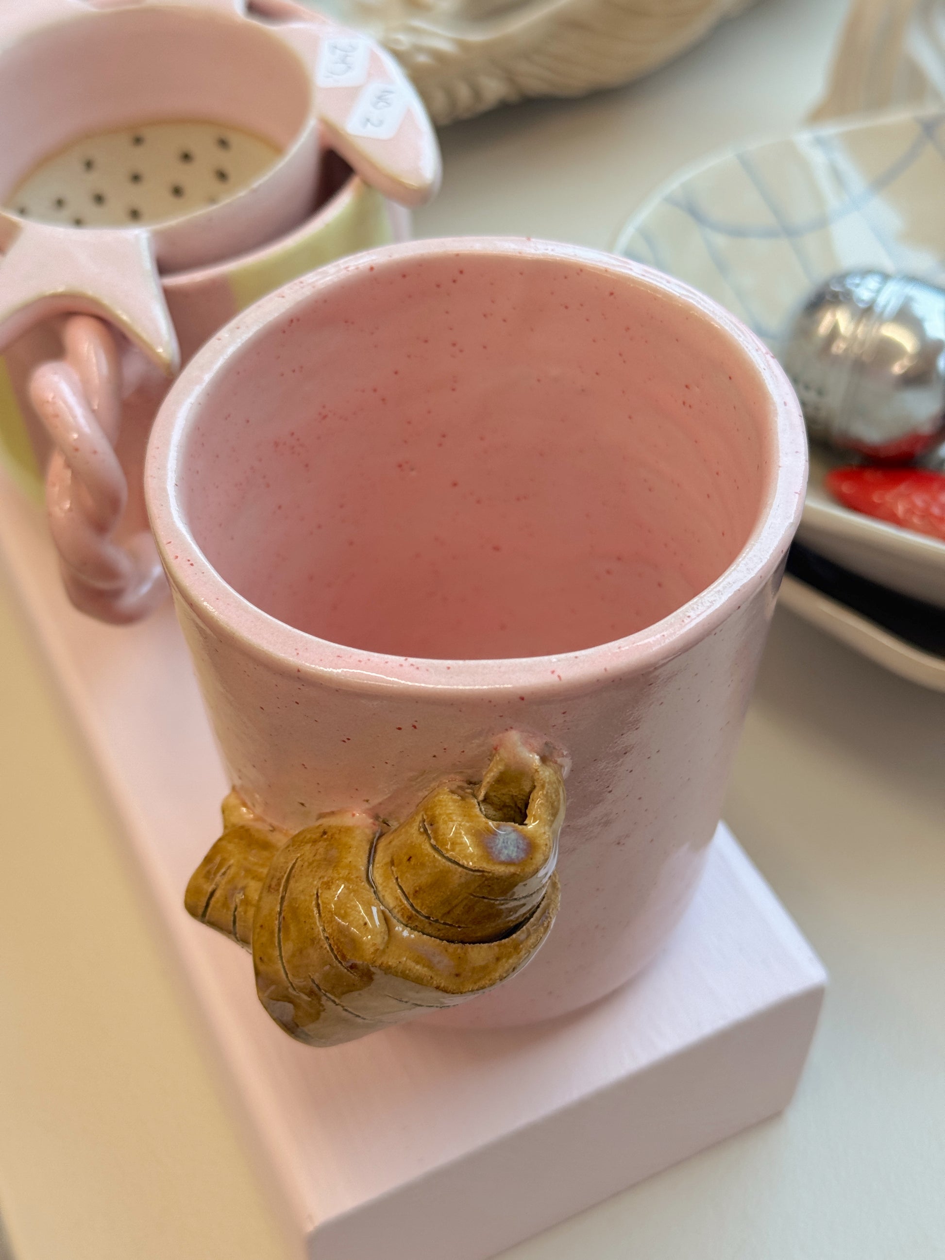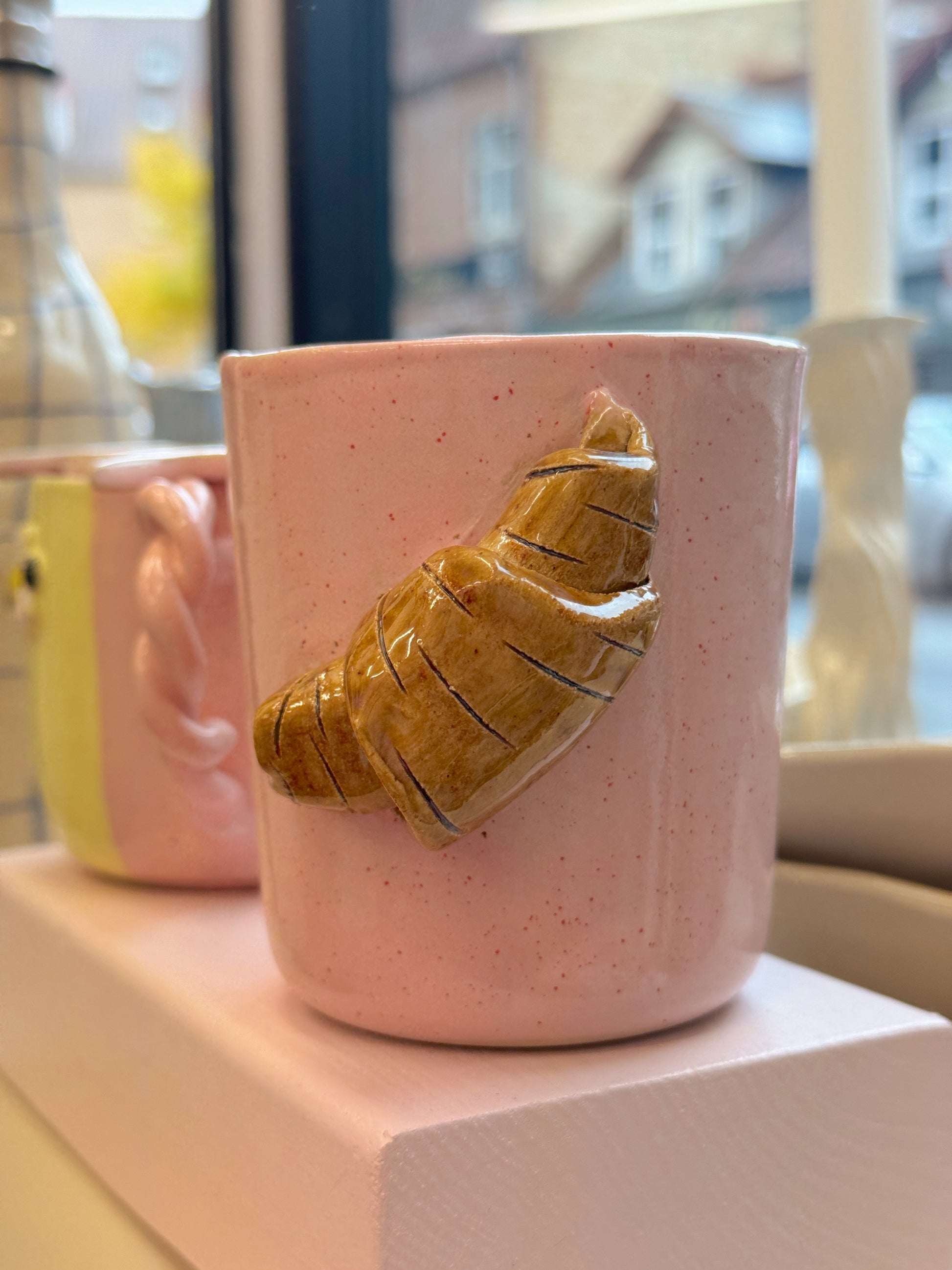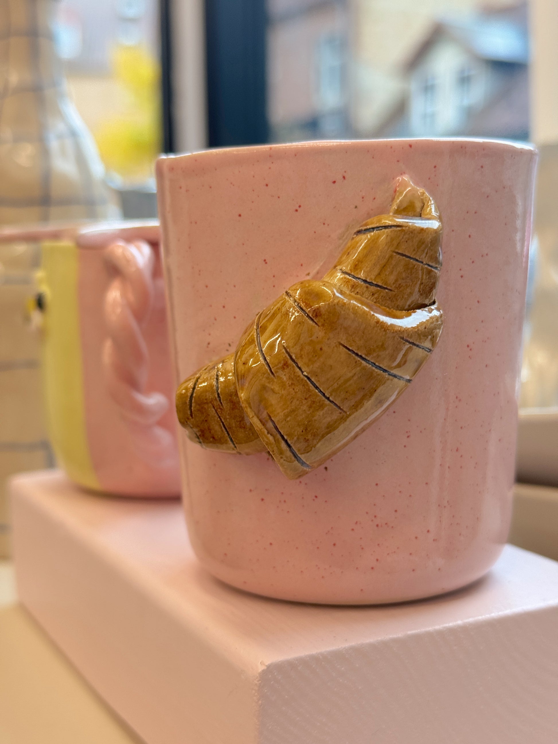 Croissant fra Victoria Juul, som står bag Handmade By Victoria Juul, hånddrejer eller former og håndmaler alle sine keramikværker. Hver en kop, skål eller vase bliver derfor helt sin egen og unik.