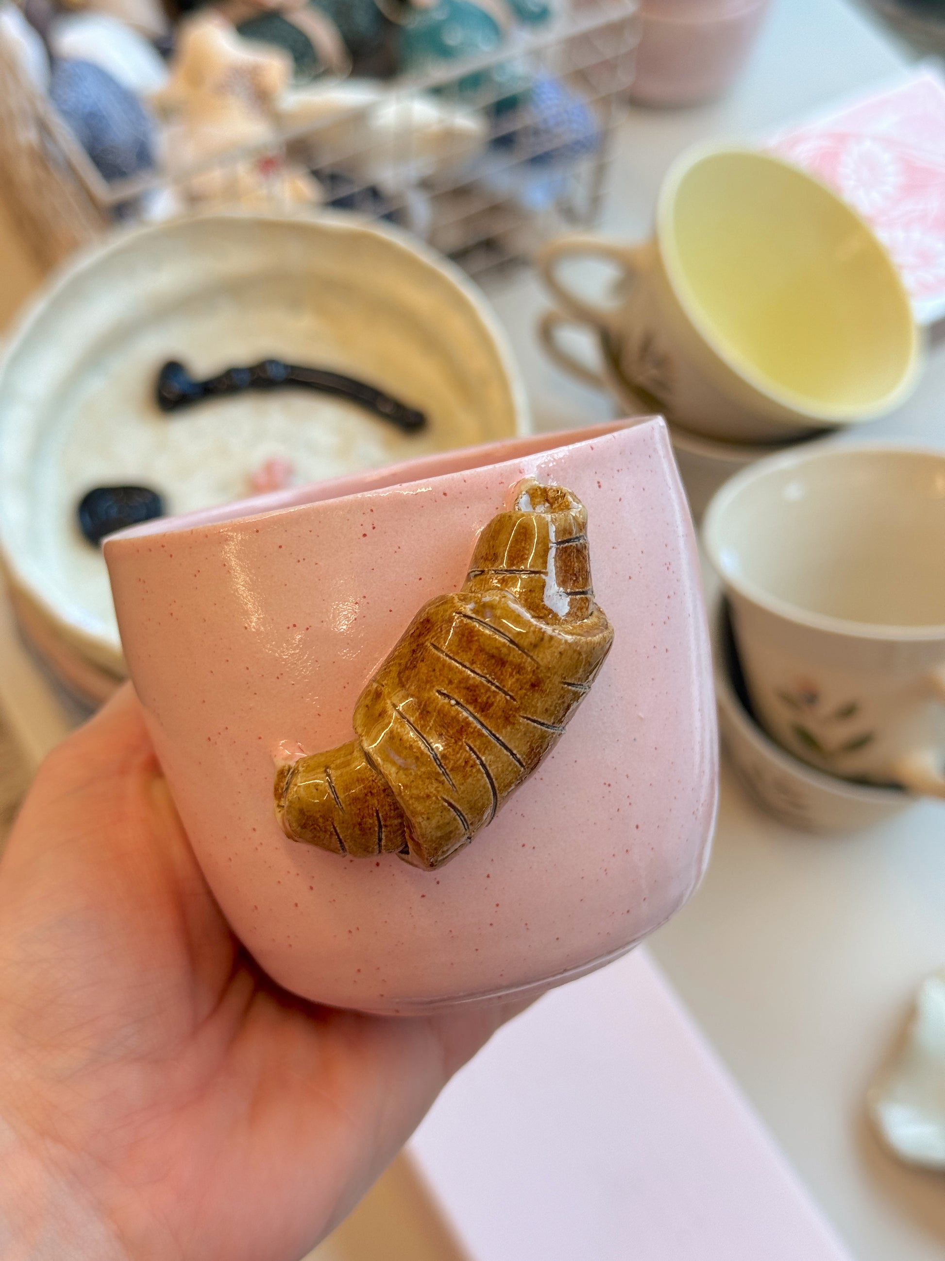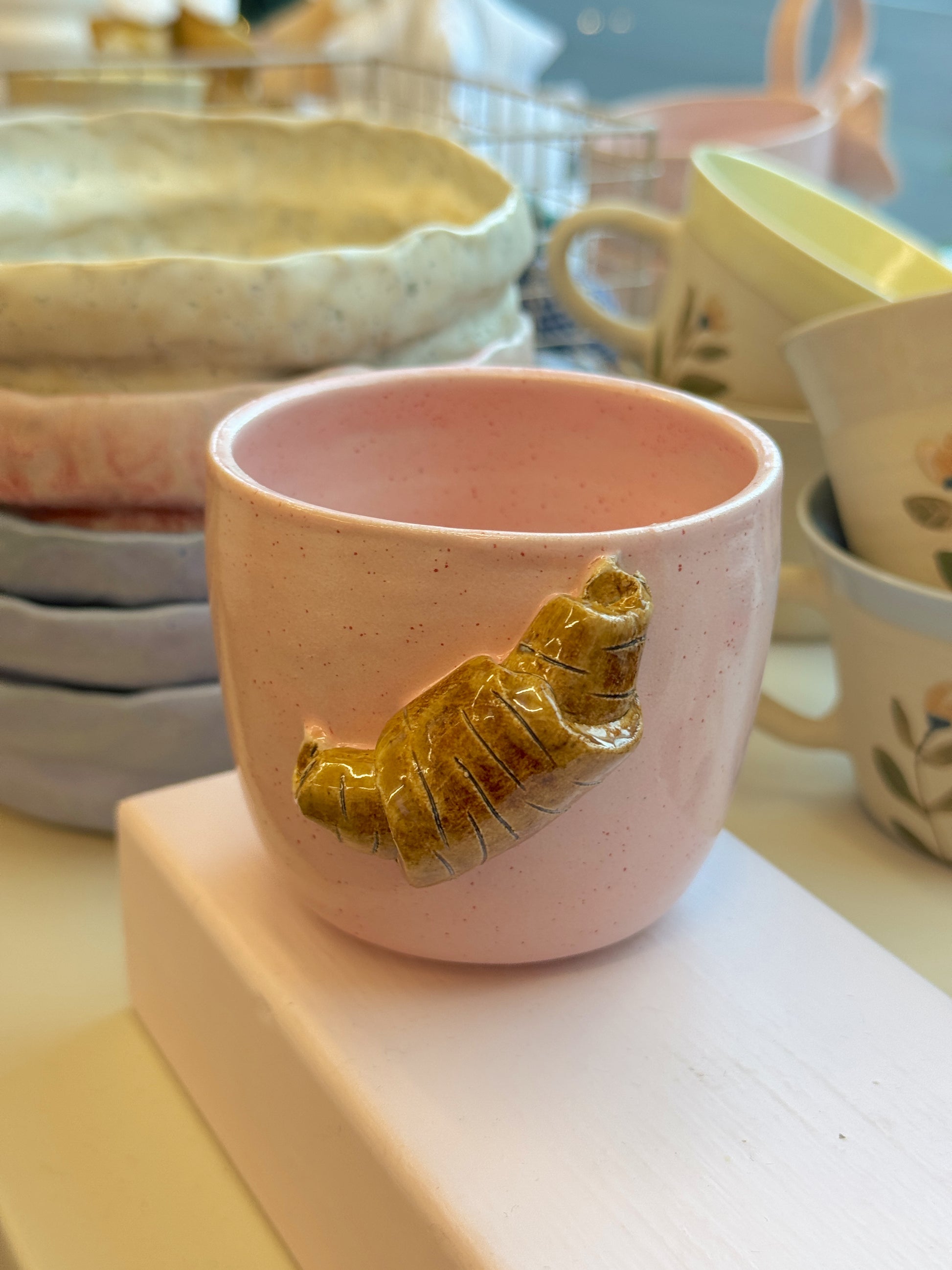 Croissant fra Victoria Juul, som står bag Handmade By Victoria Juul, hånddrejer eller former og håndmaler alle sine keramikværker. Hver en kop, skål eller vase bliver derfor helt sin egen og unik.