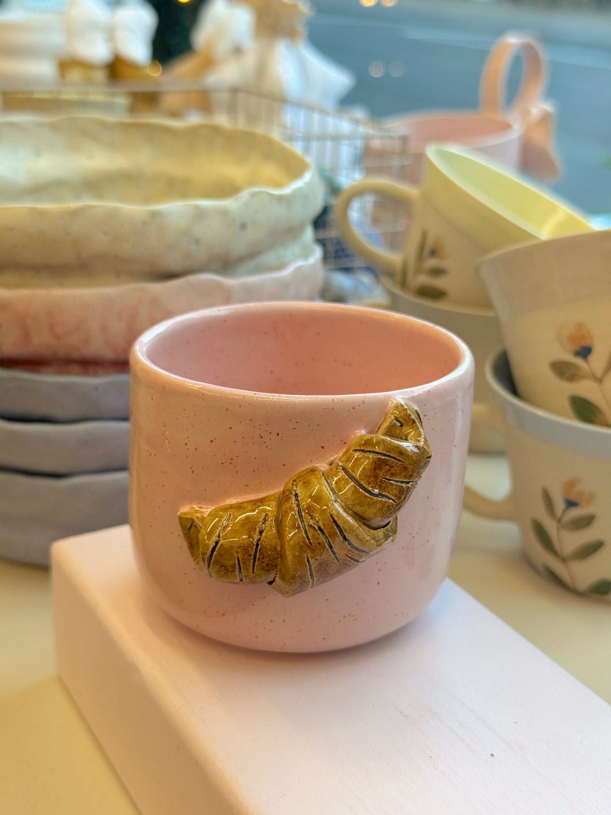 Croissant fra Victoria Juul, som står bag Handmade By Victoria Juul, hånddrejer eller former og håndmaler alle sine keramikværker. Hver en kop, skål eller vase bliver derfor helt sin egen og unik.