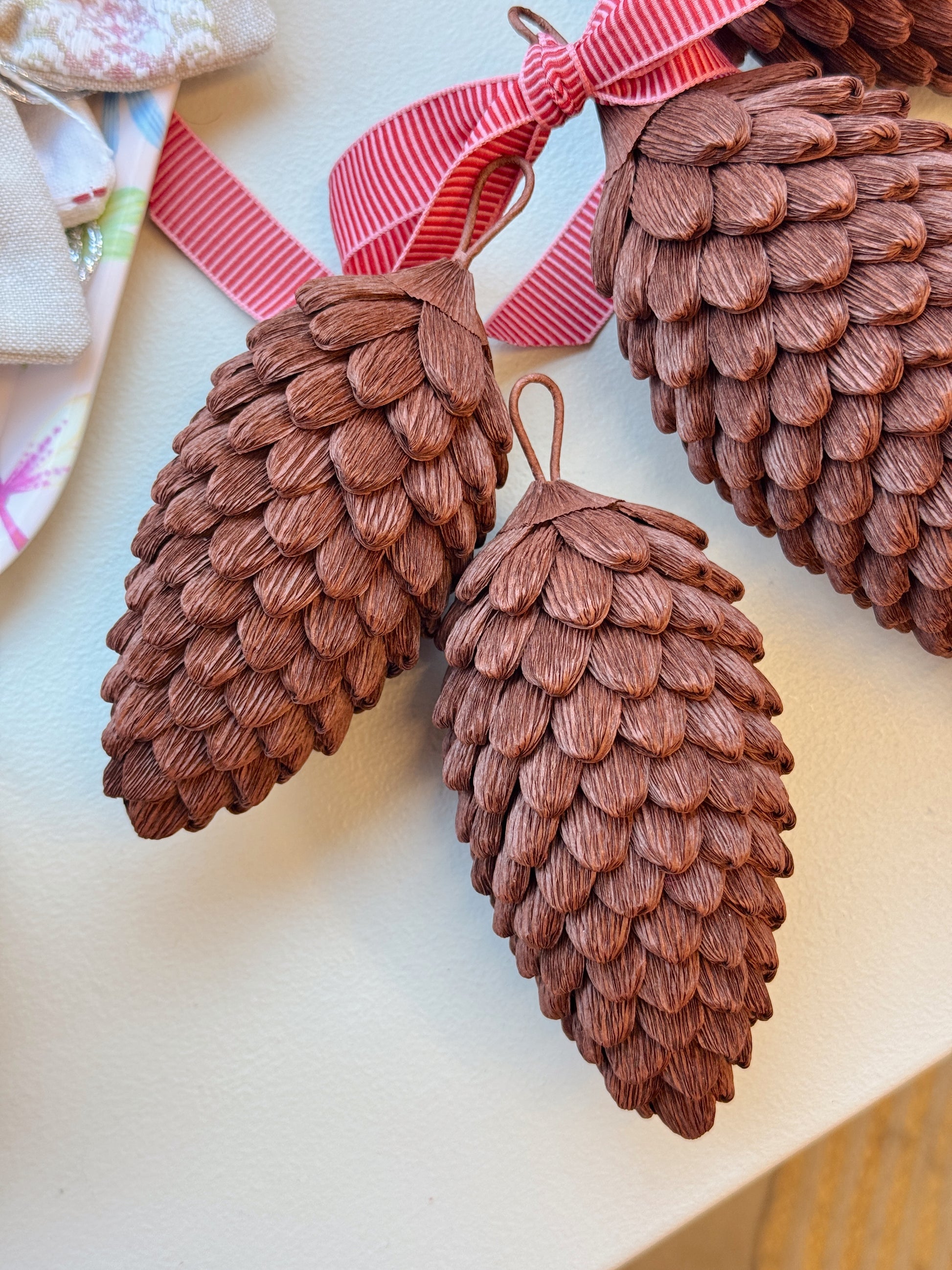 Mål: Små grankogler á ca. 12x6cm - Produktet er håndlavet, så mål og form kan variere en smule. Bør holdes væk fra direkte sollys.