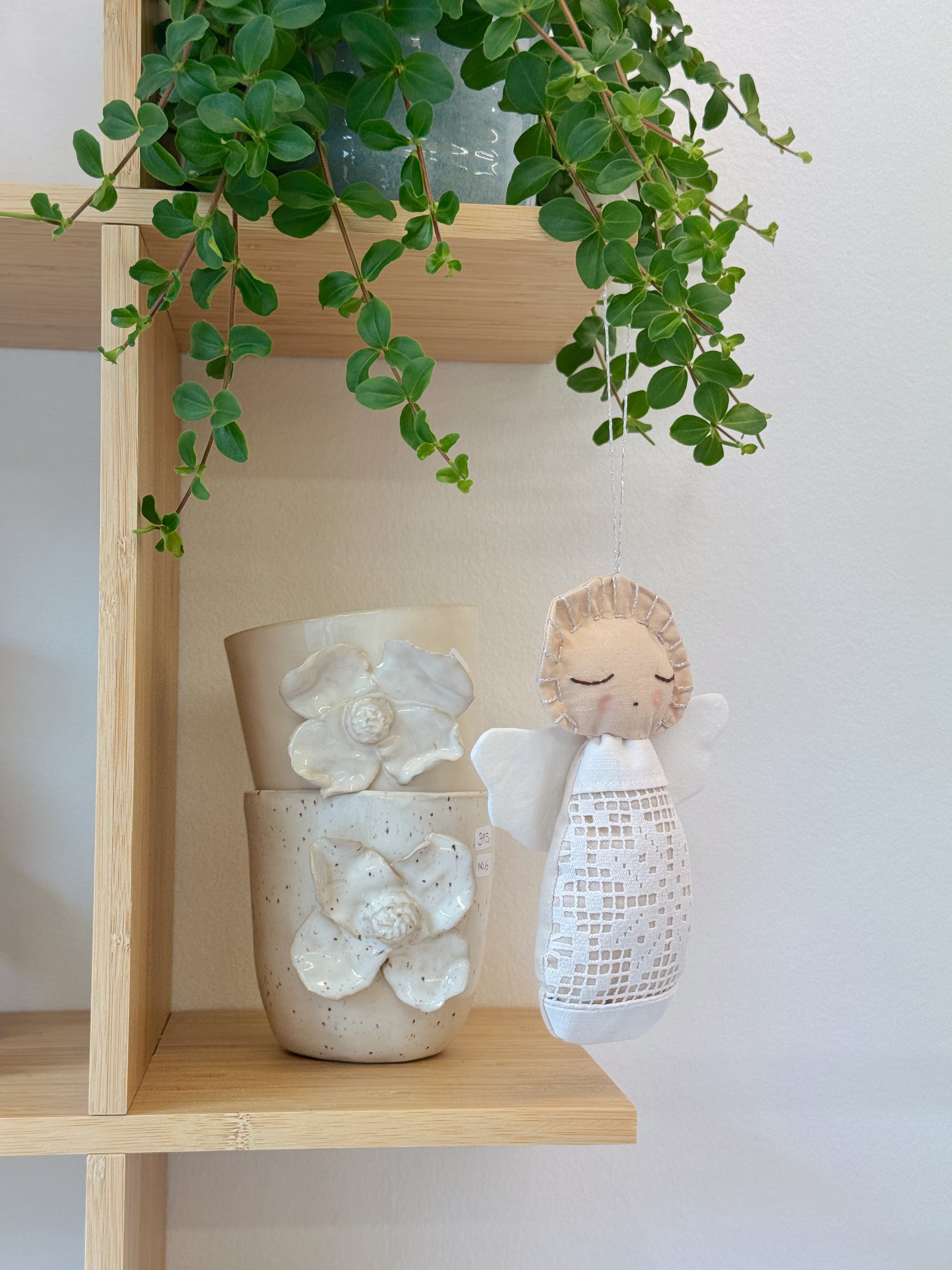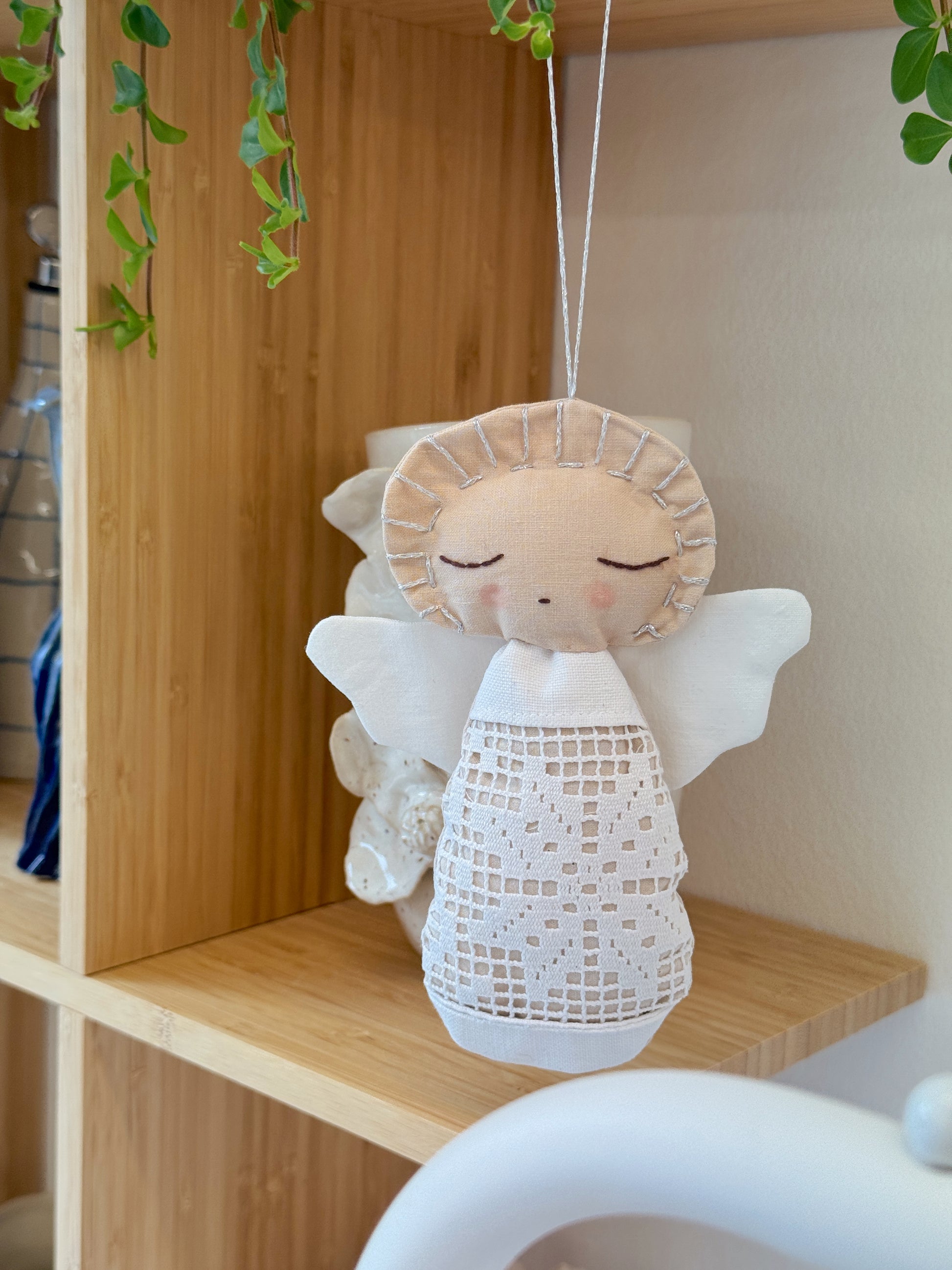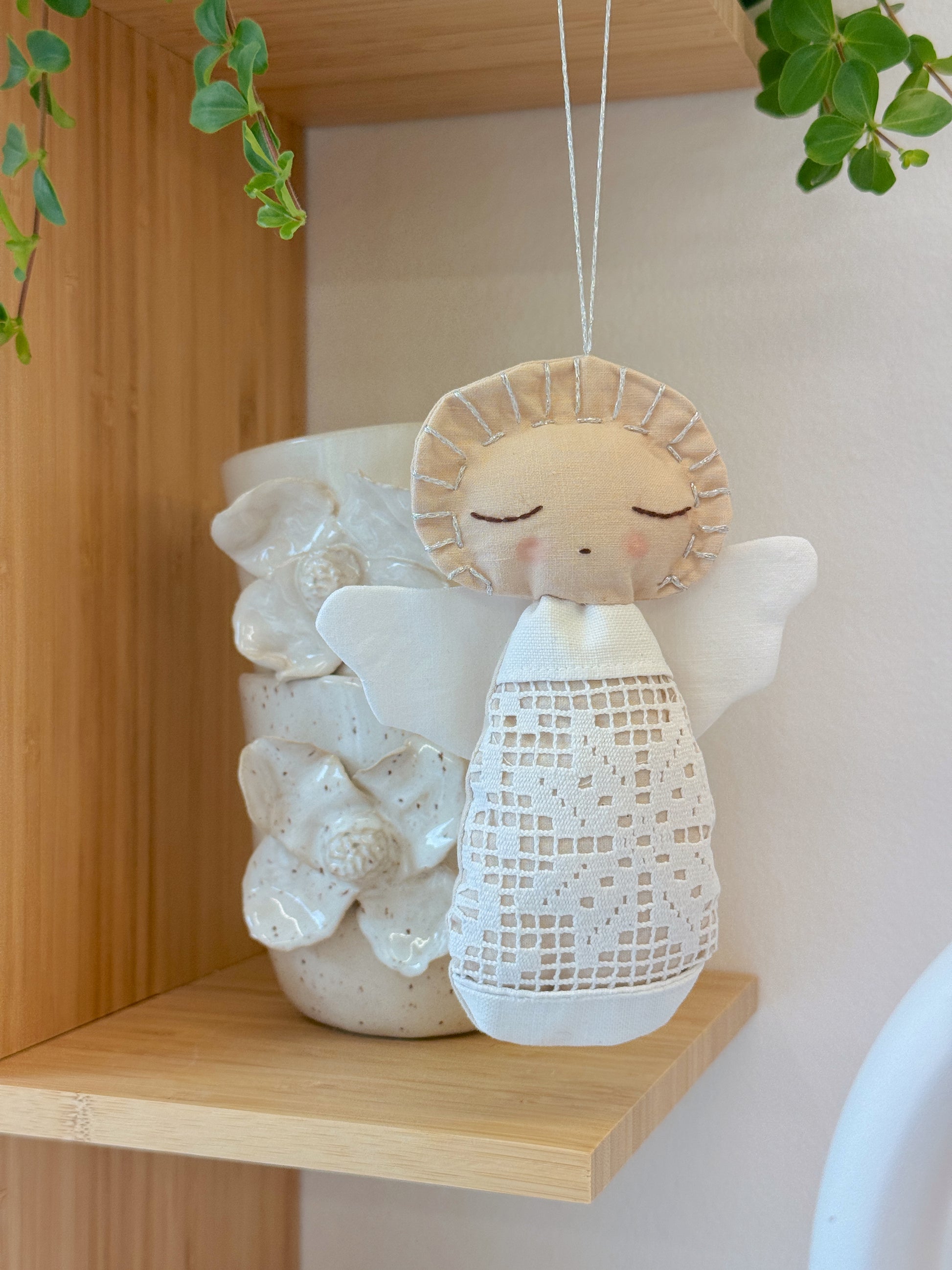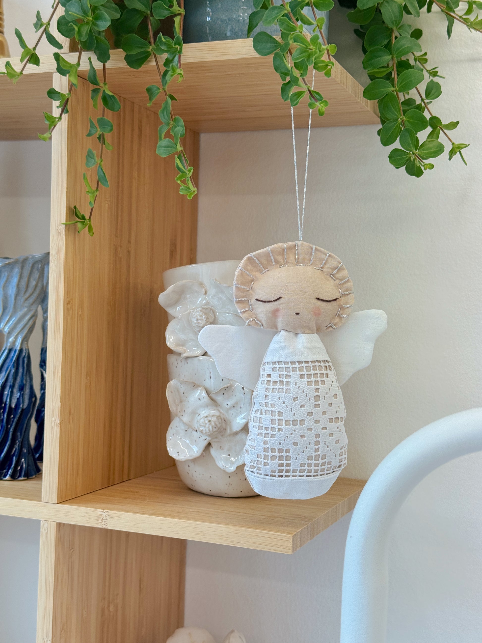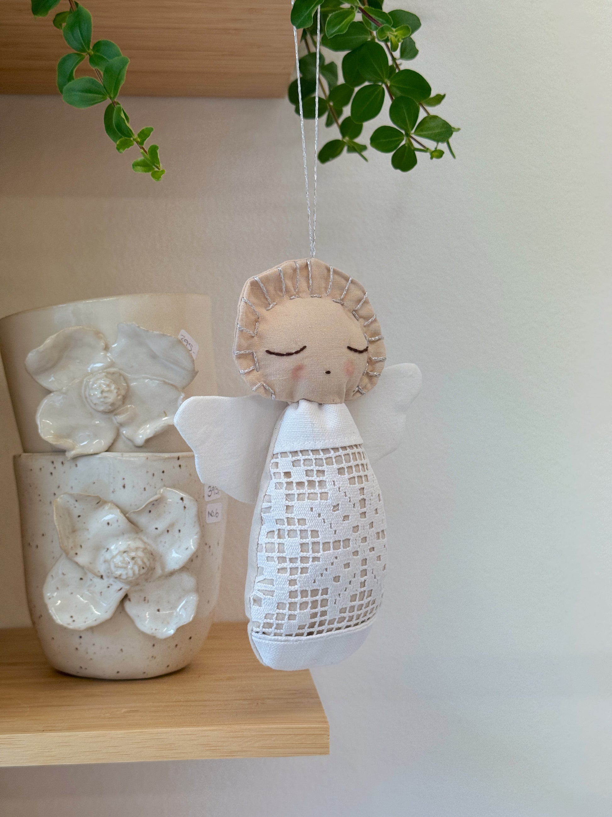 Fineste juleengel, der giver et finurligt og sødt udtryk. Kan også sagtens pynte i boligen resten af året. Fåes i flere udgaver som alle er skabt i et mix af vintage- og plantefarvede tekstiler.