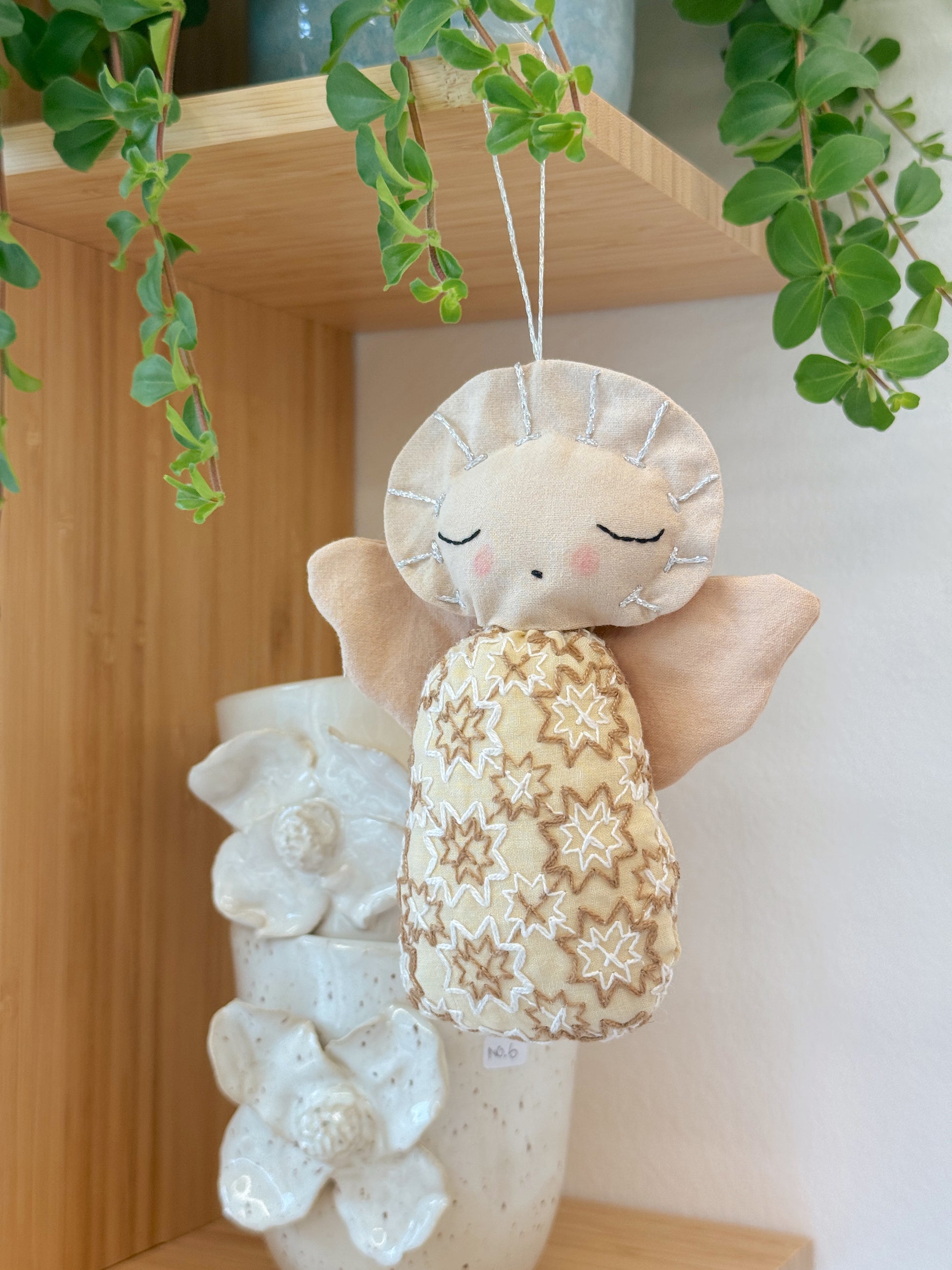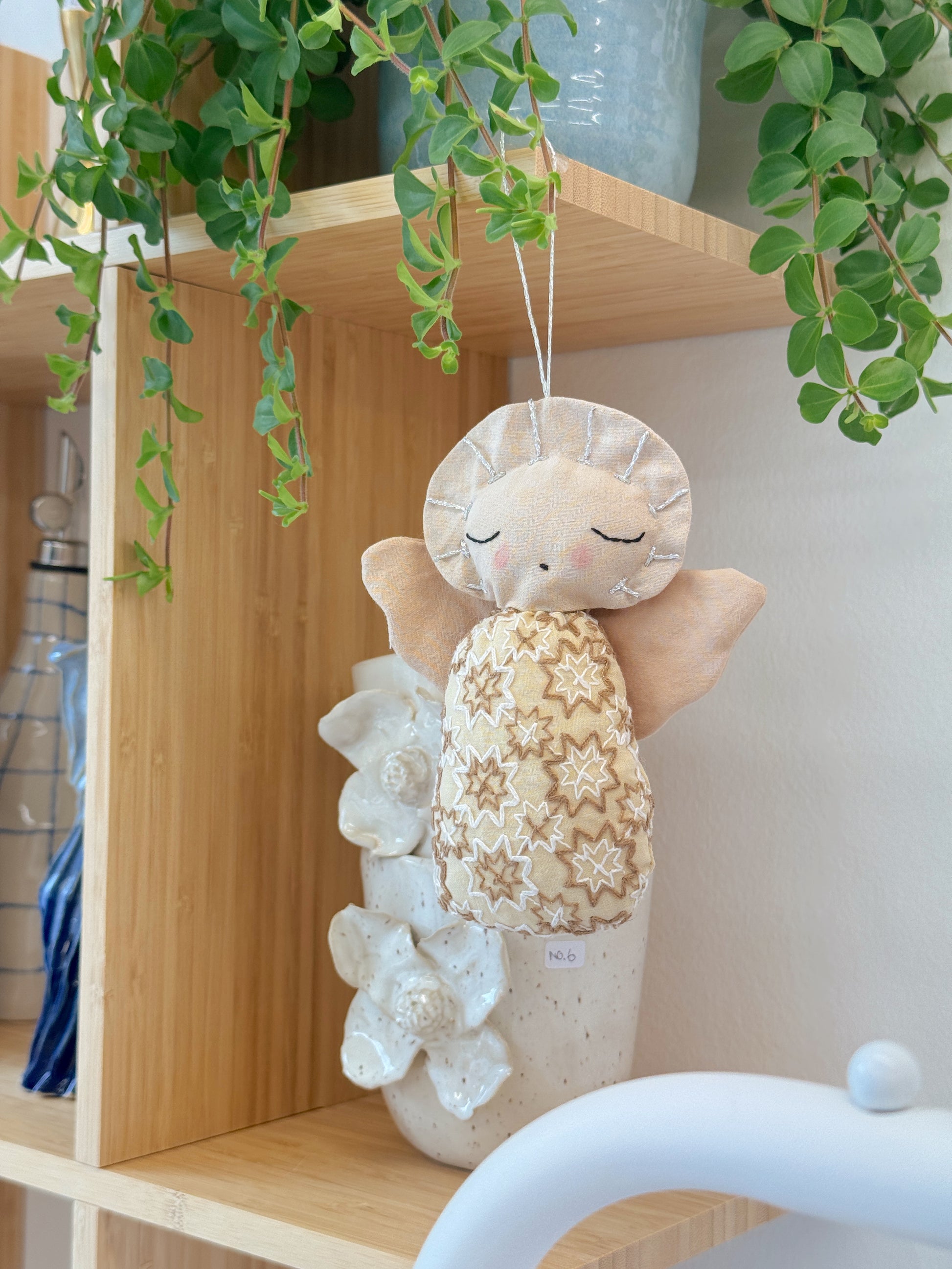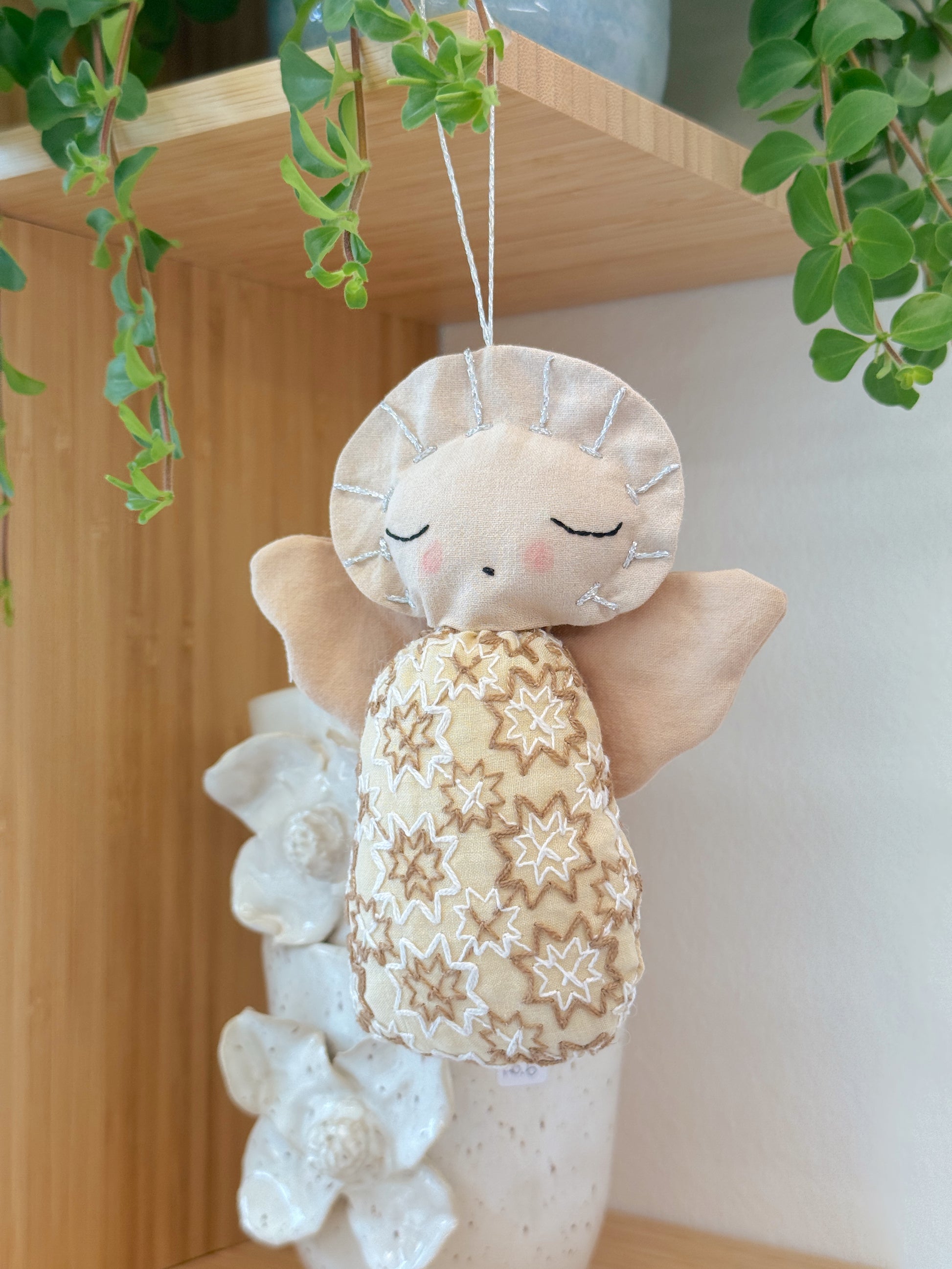 Fineste juleengel, der giver et finurligt og sødt udtryk. Kan også sagtens pynte i boligen resten af året. Fåes i flere udgaver som alle er skabt i et mix af vintage- og plantefarvede tekstiler.
