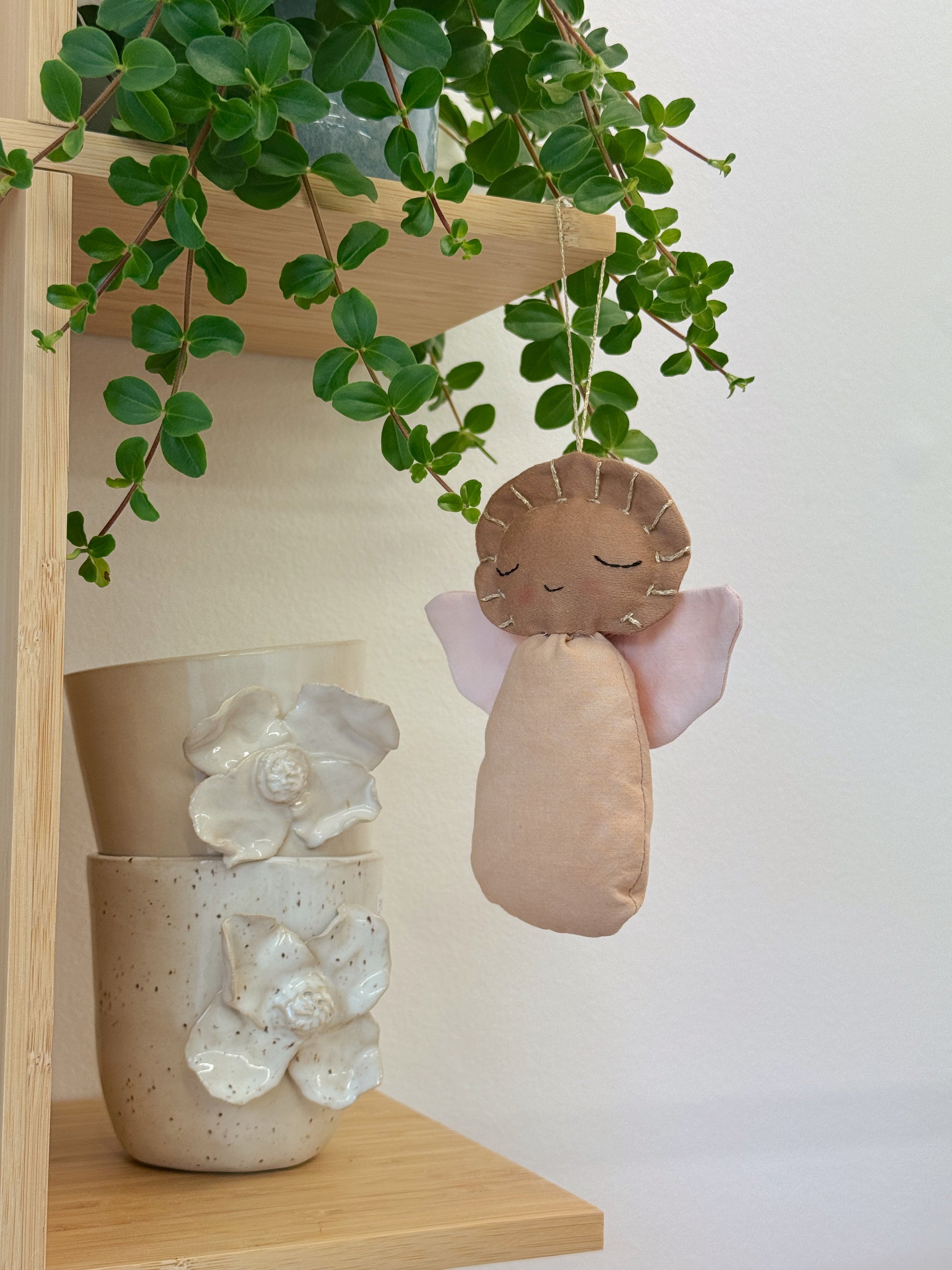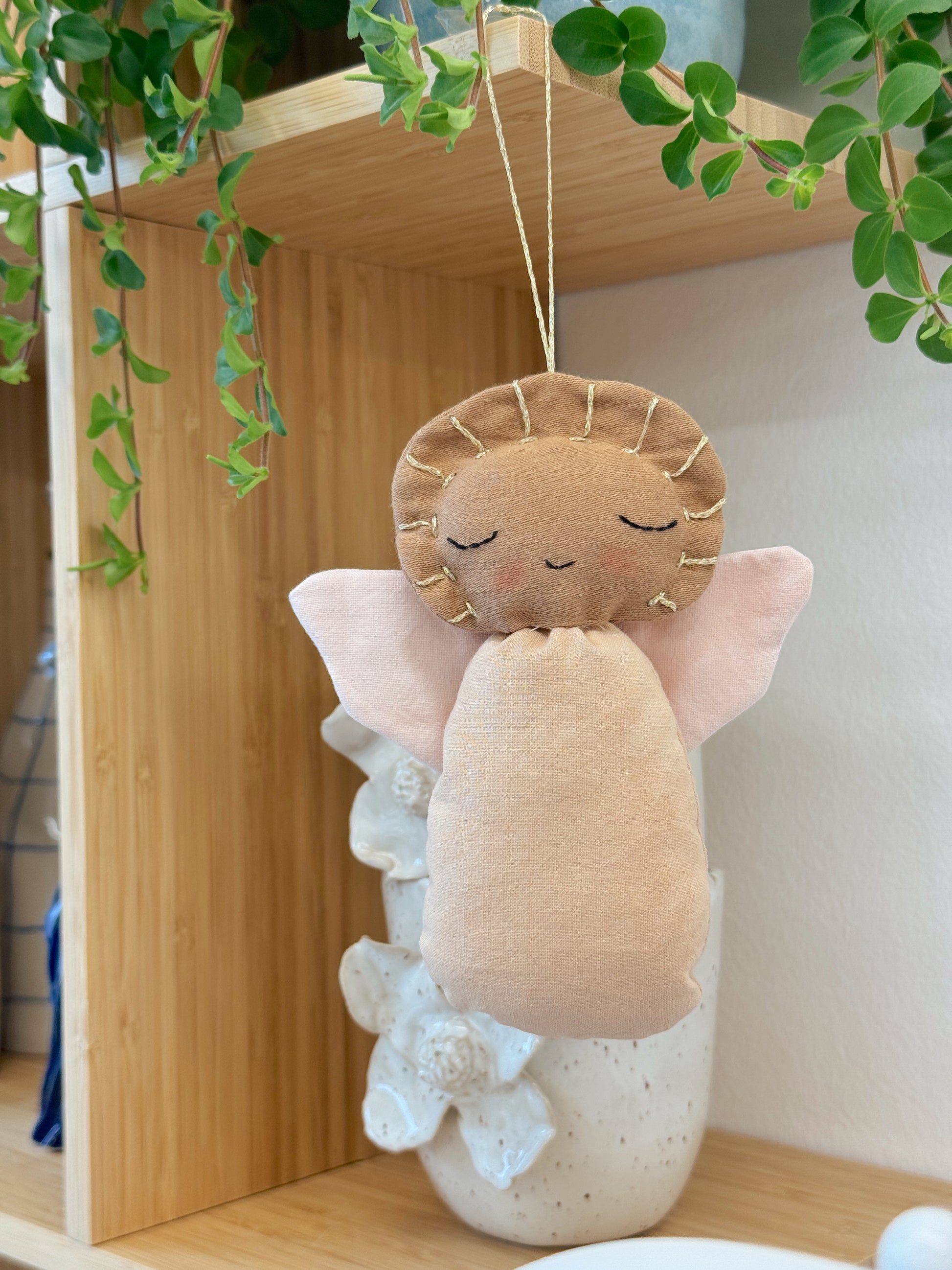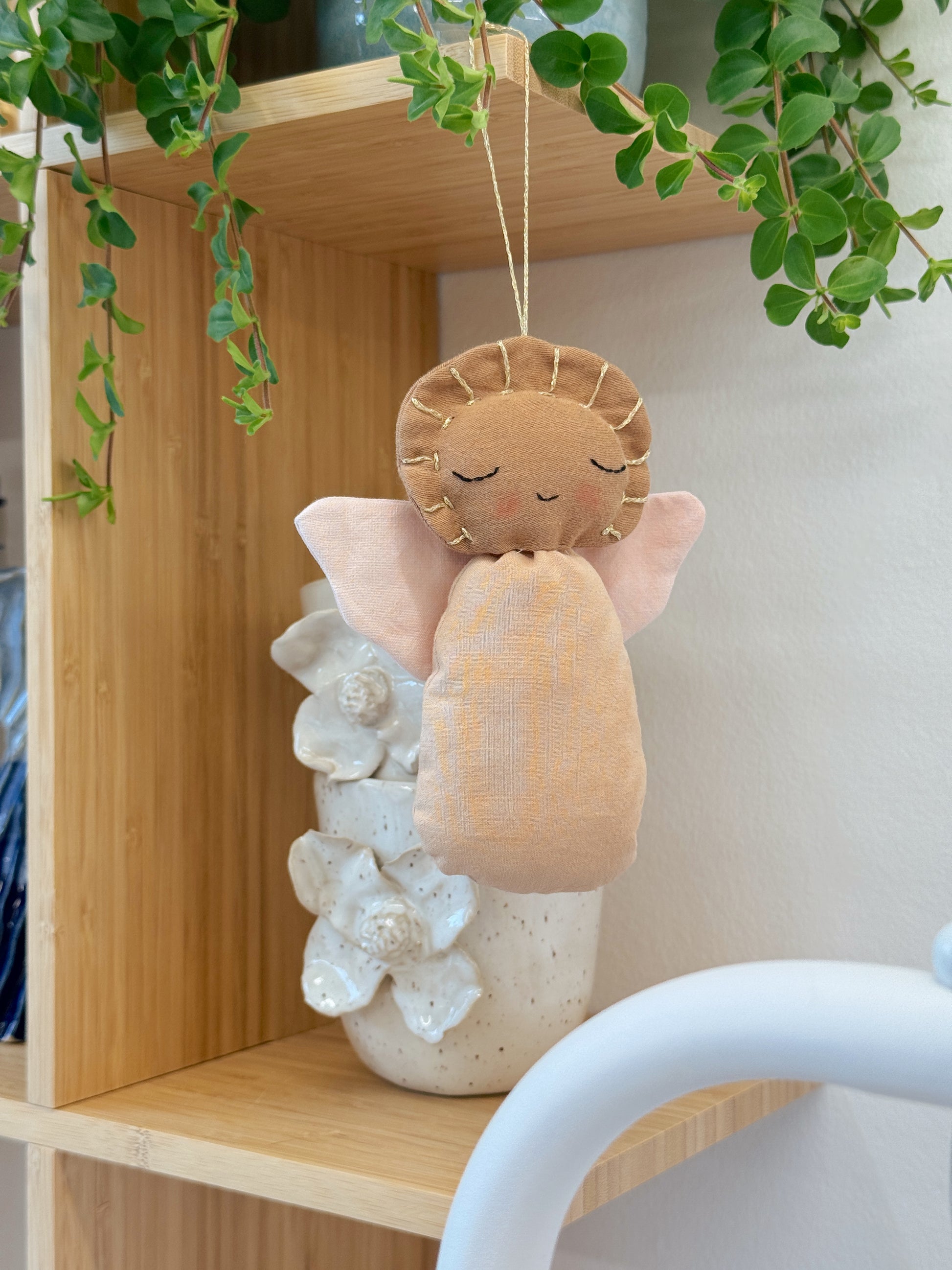Fineste juleengel, der giver et finurligt og sødt udtryk. Kan også sagtens pynte i boligen resten af året. Fåes i flere udgaver som alle er skabt i et mix af vintage- og plantefarvede tekstiler.