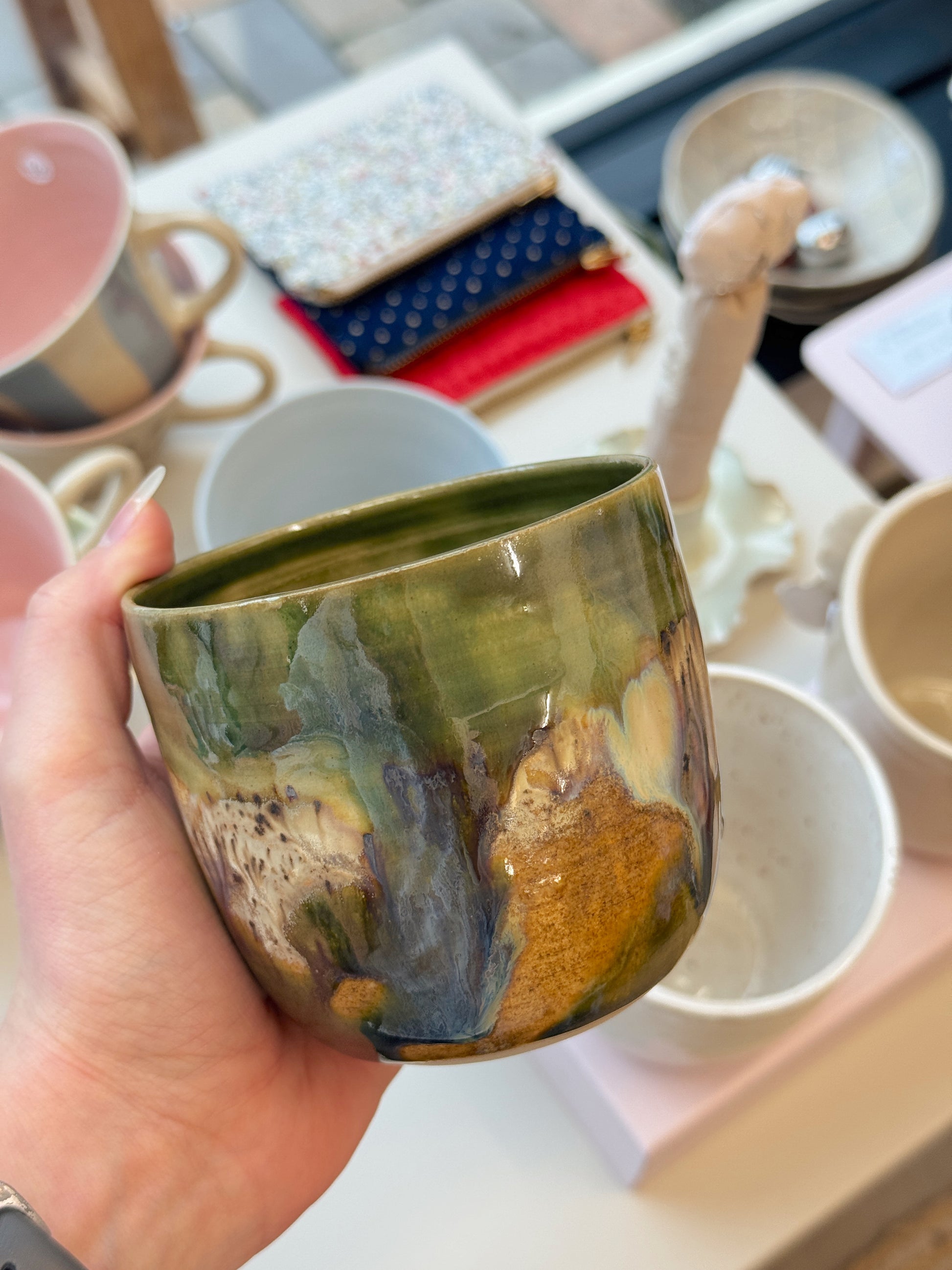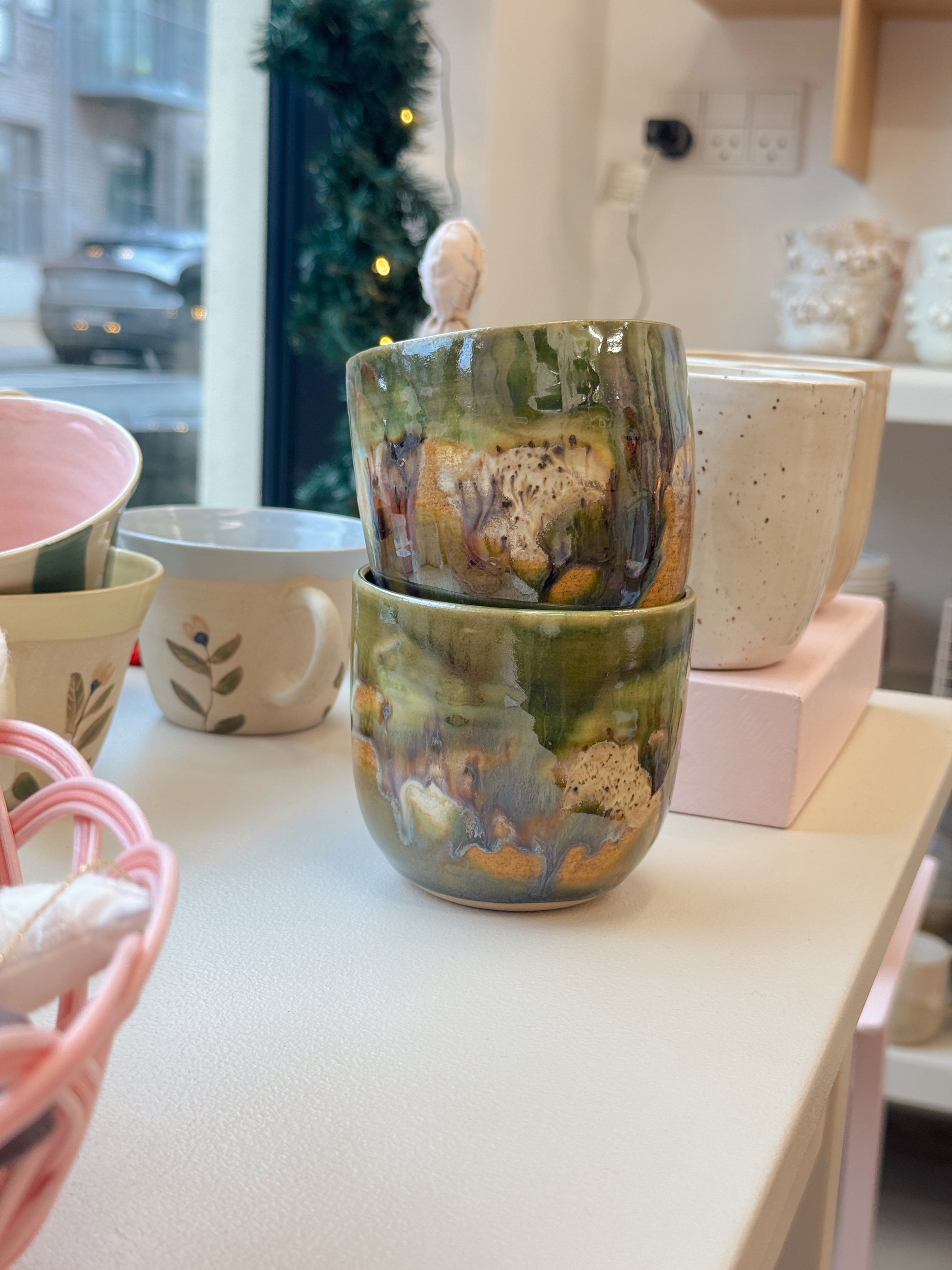 Da hver kop formes og glaseres i hånden, vil der naturligt forekomme variationer i størrelse, form og glasering. Netop disse forskelle giver koppen sin særlige charme og gør hver enkelt helt unik. Billederne er derfor vejledende.