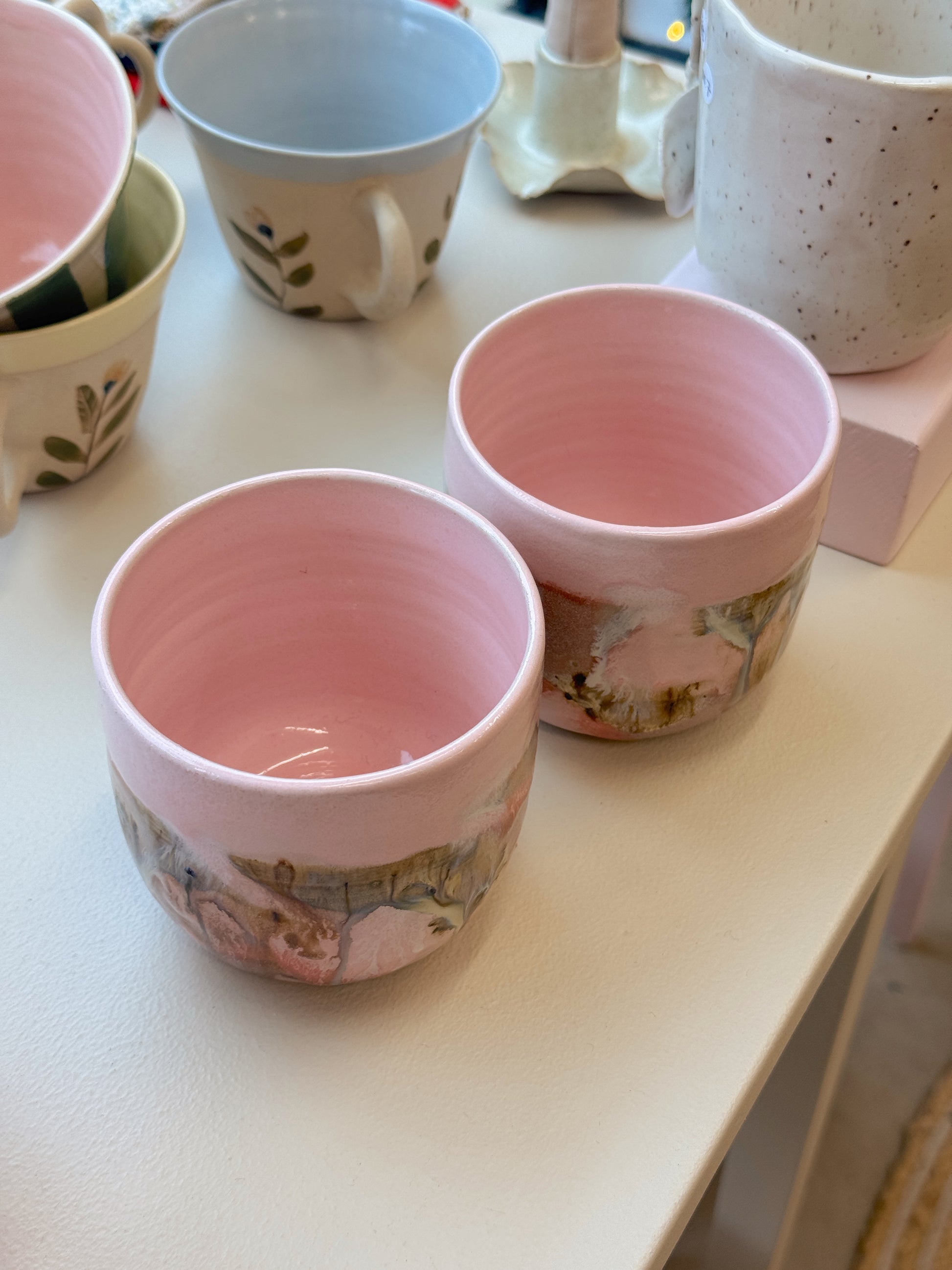 Da hver kop formes og glaseres i hånden, vil der naturligt forekomme variationer i størrelse, form og glasering. Netop disse forskelle giver koppen sin særlige charme og gør hver enkelt helt unik. Billederne er derfor vejledende.