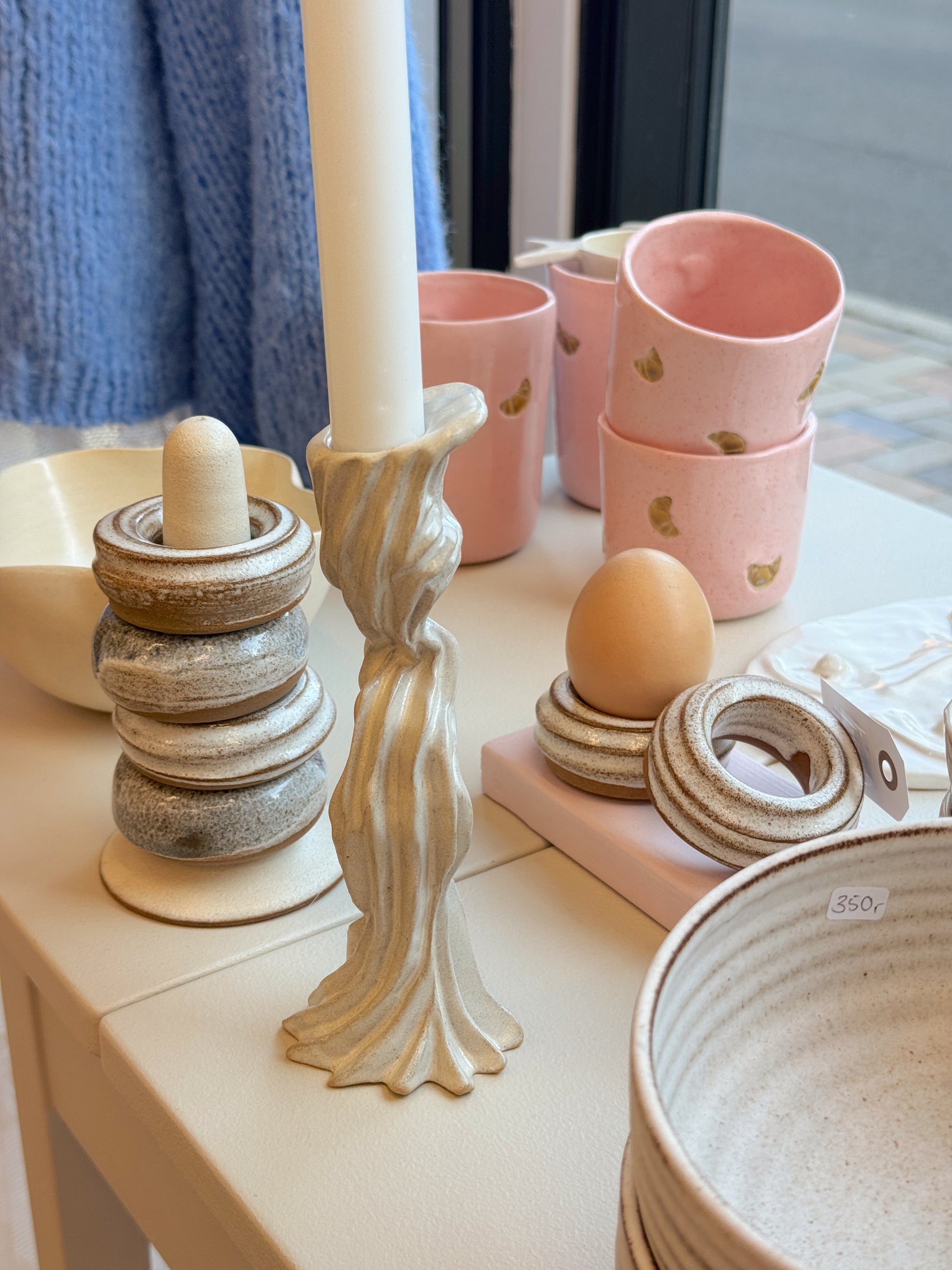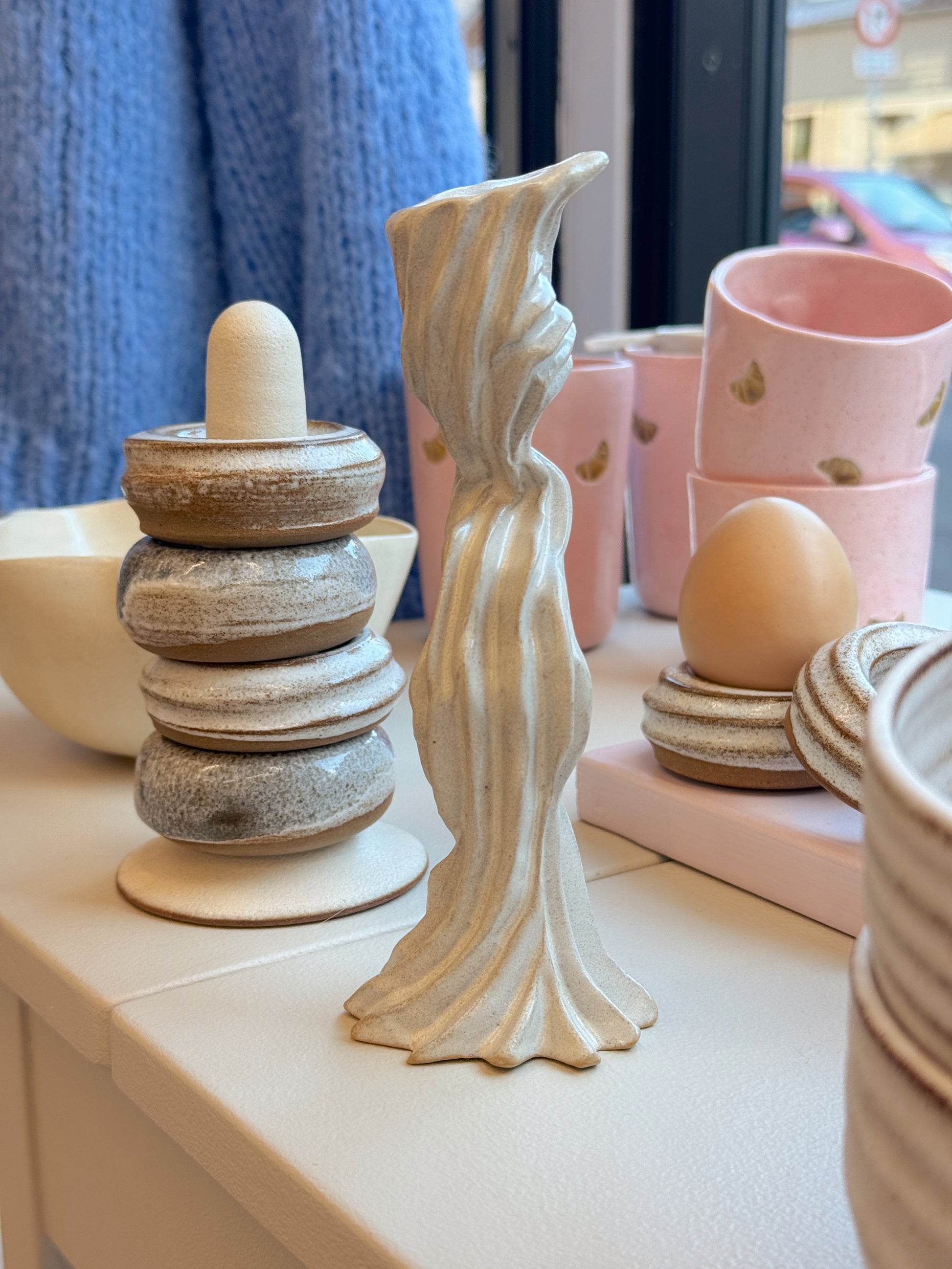 Keramik lysestage håndformet af Alberte Hall. Alberte Hall håndformer alle hende produkter, hvorfor hver stage, kop eller kande bliver sin egen og helt unik.