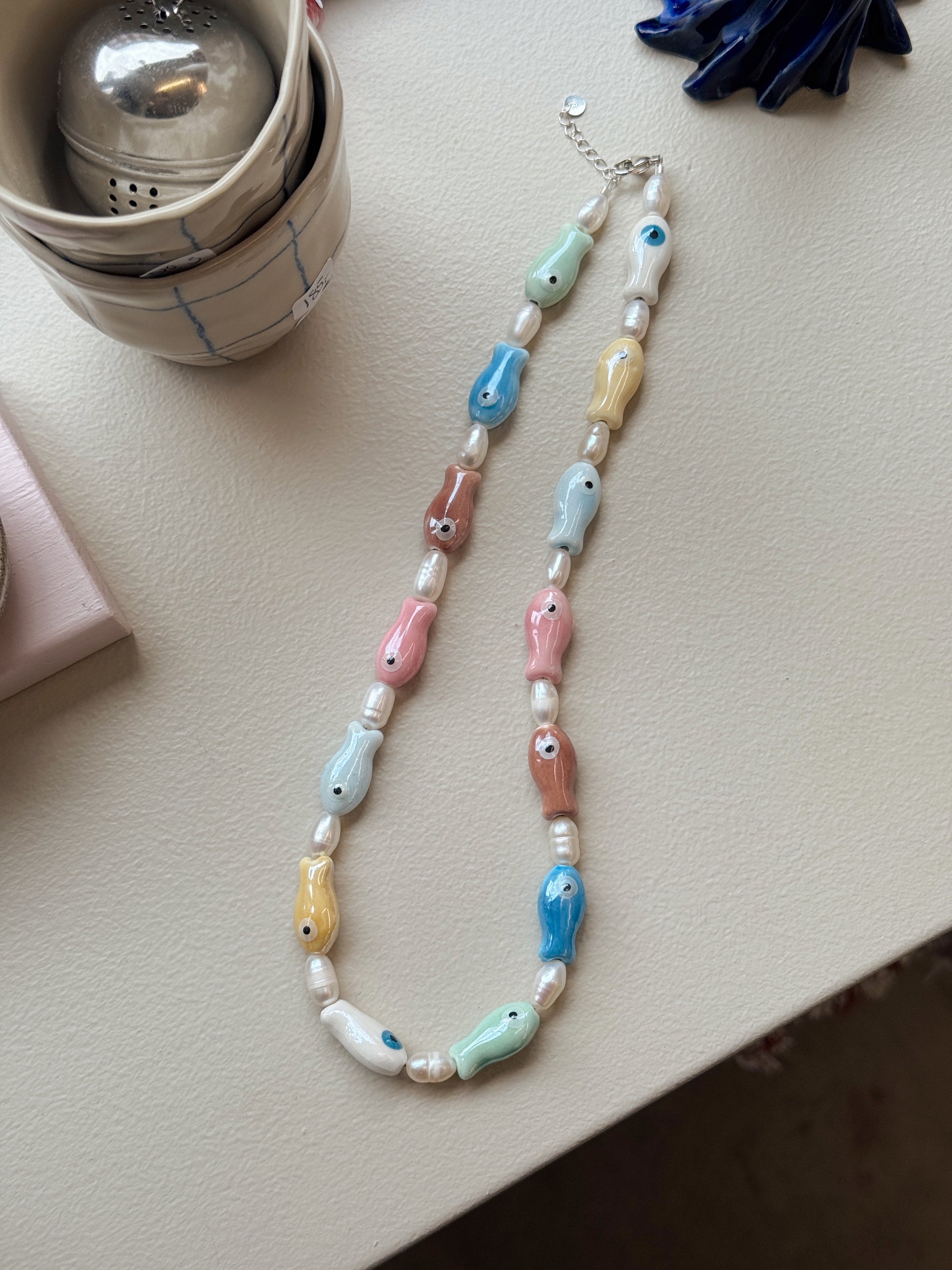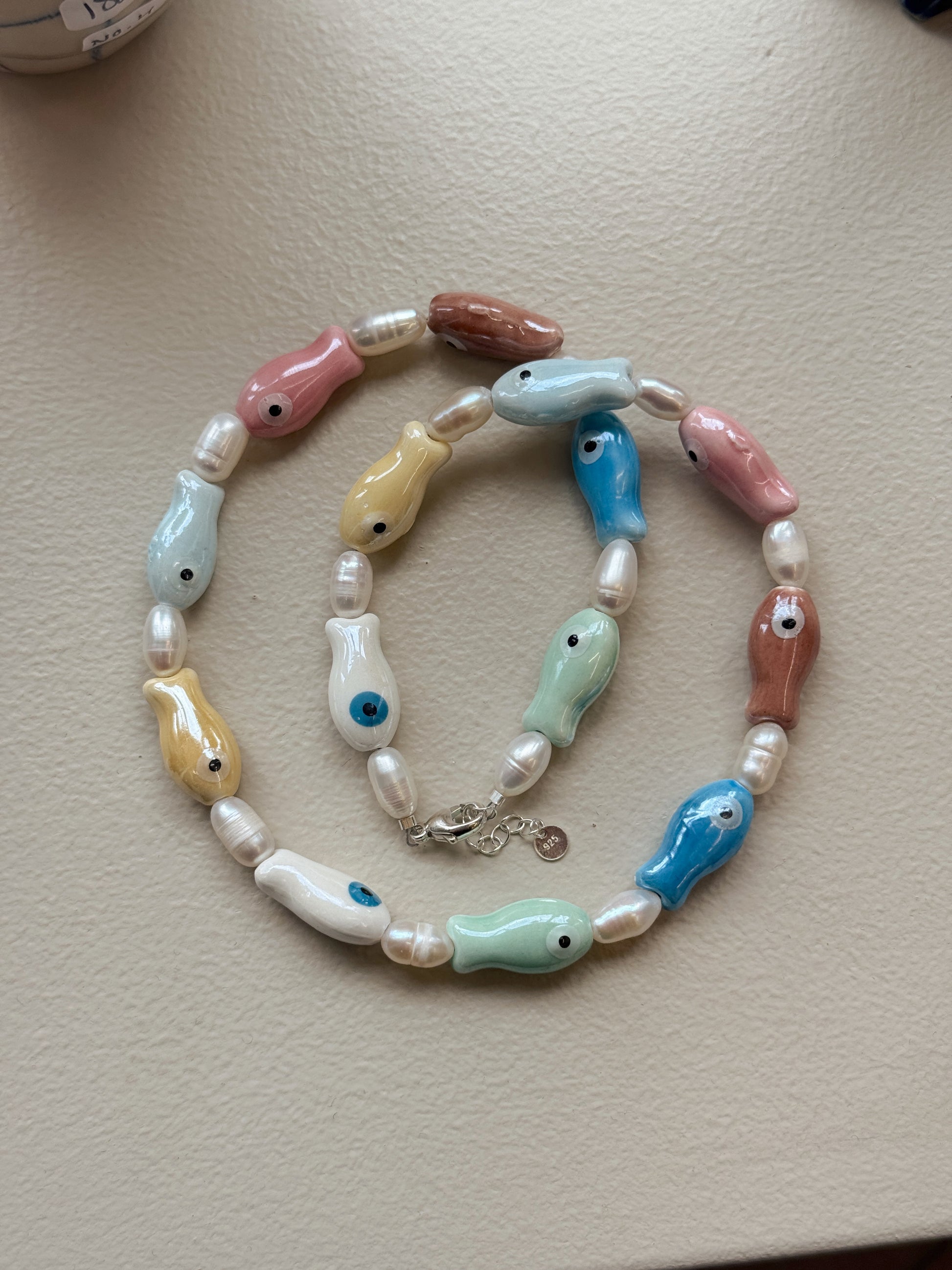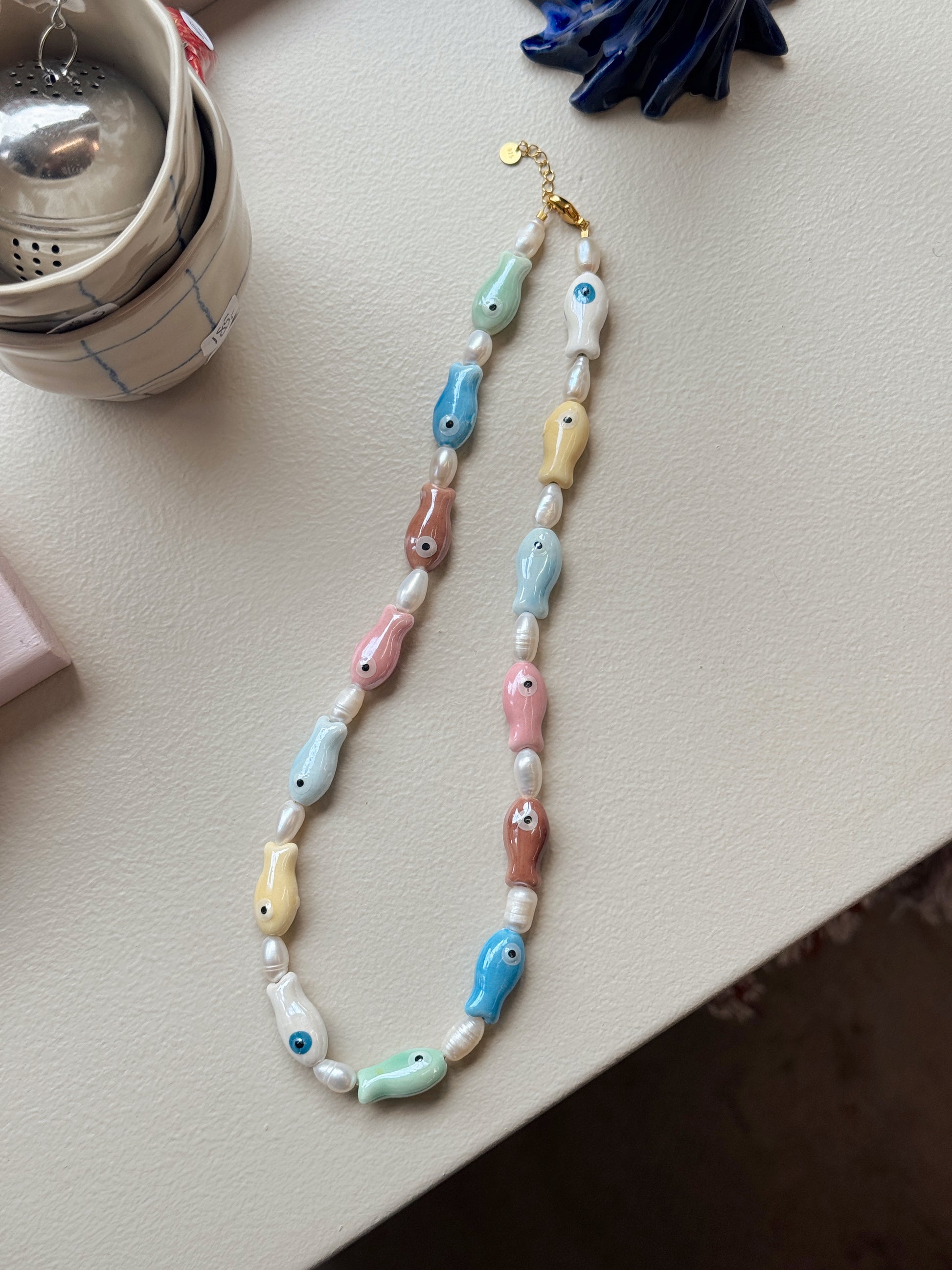 Er du vild med fisk og farver, så er denne sag måske noget for dig. Halskæden er sjov, finurlig og anderledes og kan pifte ethvert outfit op. Halskæden er perfekt til dig der ønsker et mere legende udtryk og ikke er bange for at skille dig ud.