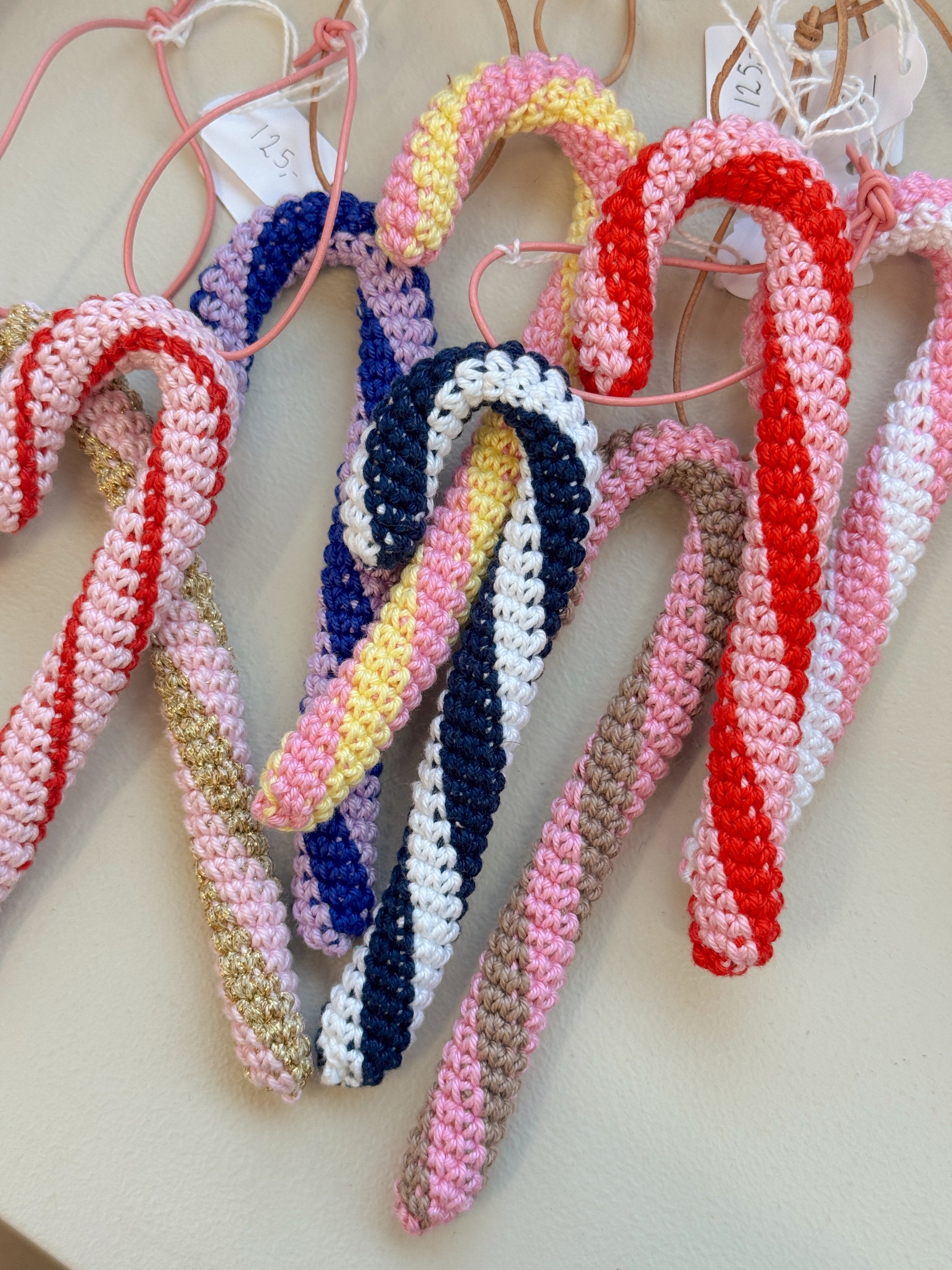 Skab julestemning med disse charmerende hæklede slikstokke, smukt designet og håndlavet af den danske hæklekunstner Dina Lea. Hver slikstok er omhyggeligt hæklet i kvalitetsgarn, der giver et levende farvespil og en holdbar form, som kan bruges år efter år.