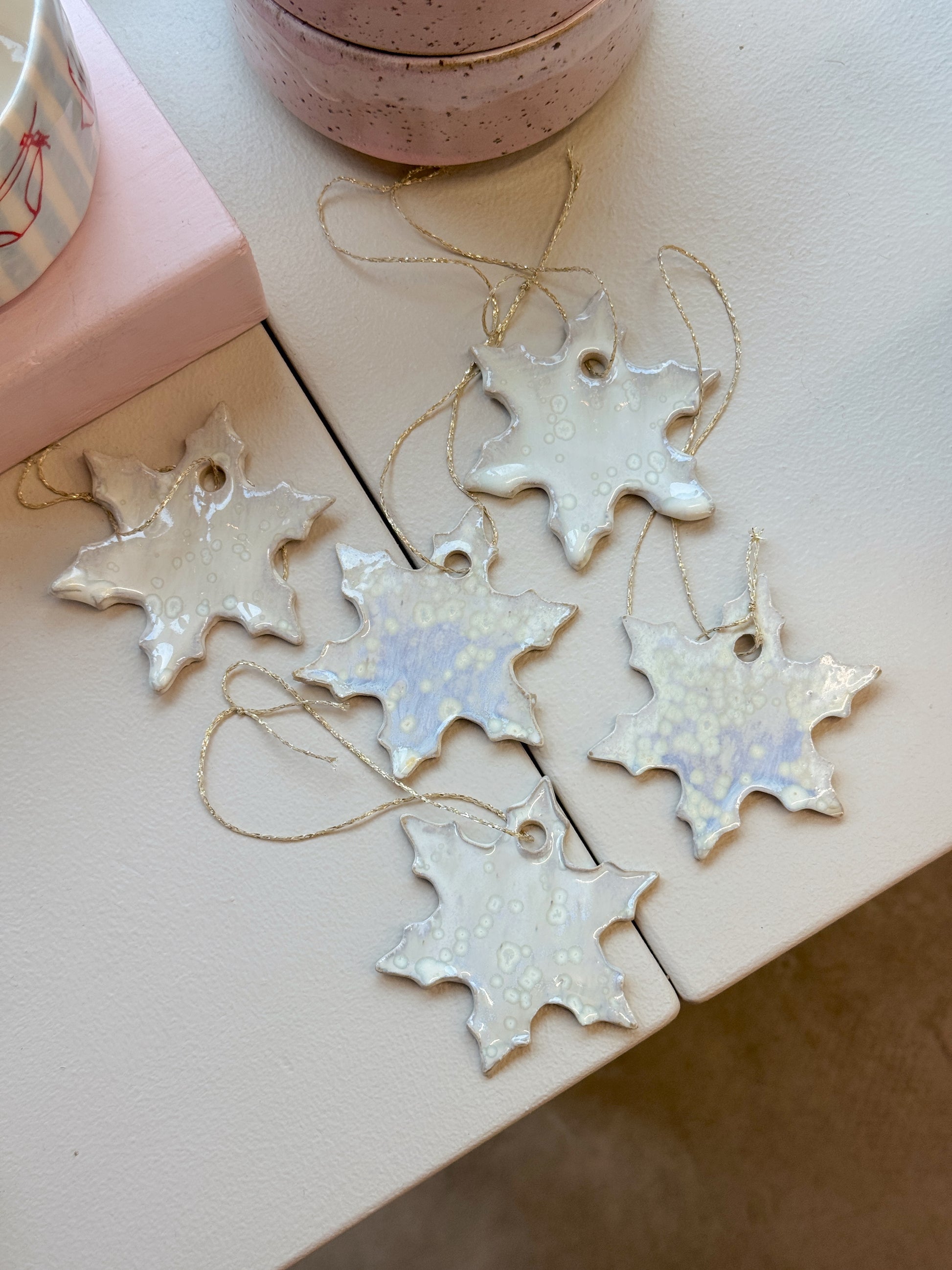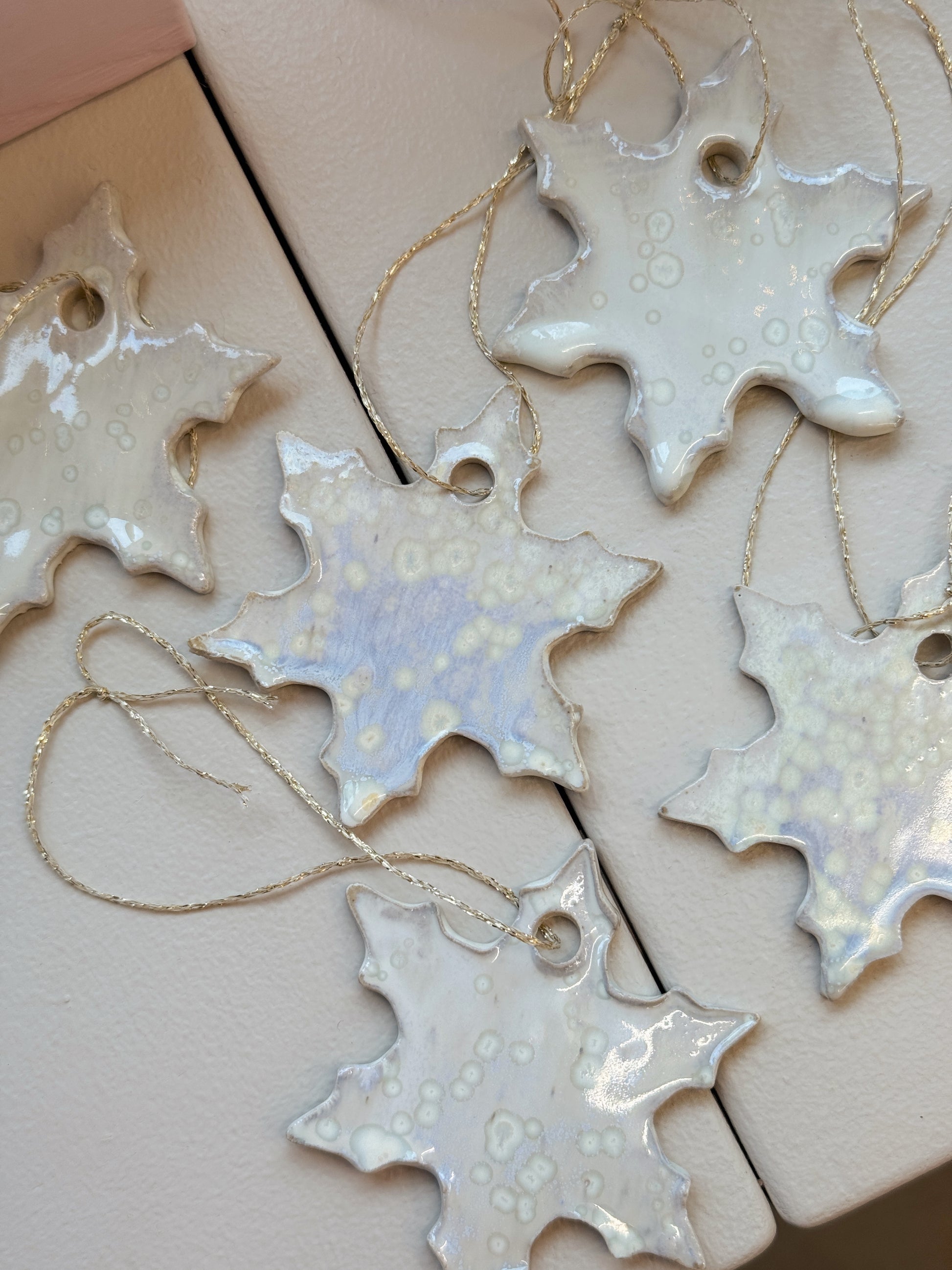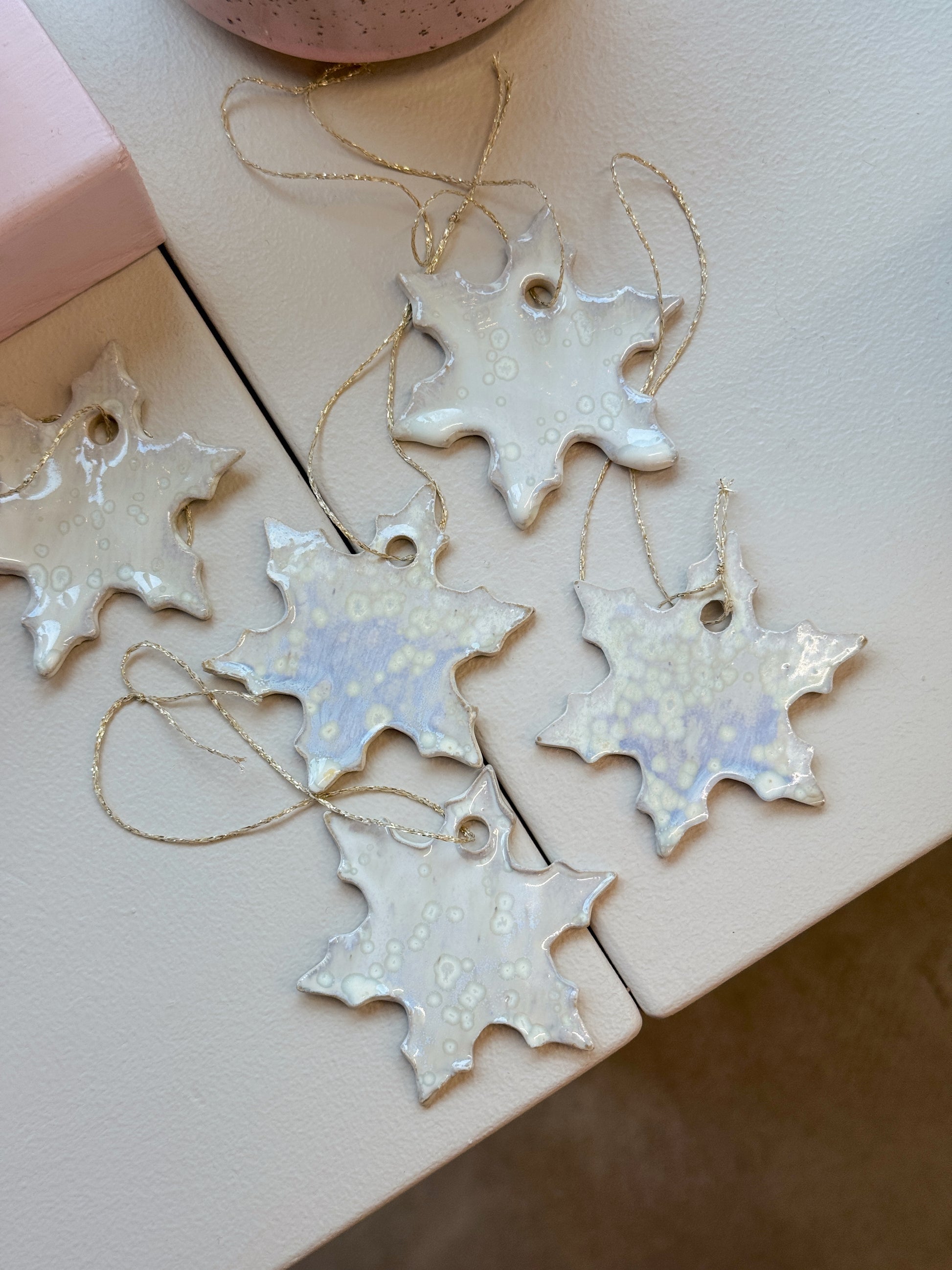Giv dit juletræ et strejf af håndlavet magi med dette smukke keramik-snefnug, formet og glaseret i hånden af Victoria Juul. Hvert snefnug er unikt – ingen er helt ens – hvilket giver din juleudsmykning et personligt og autentisk udtryk.