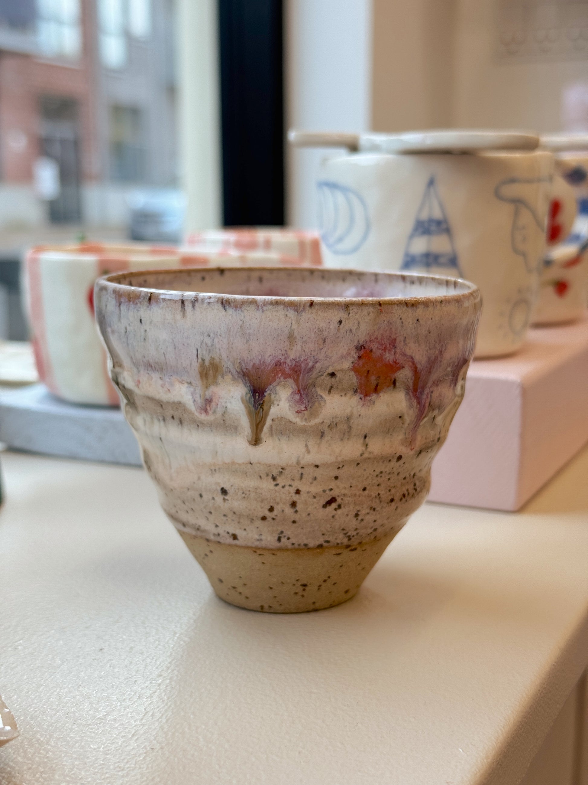 Swirlkrus med smuk løbegalsur. Kruset er drejet i lavaler, som giver nisterne i udtrykket.